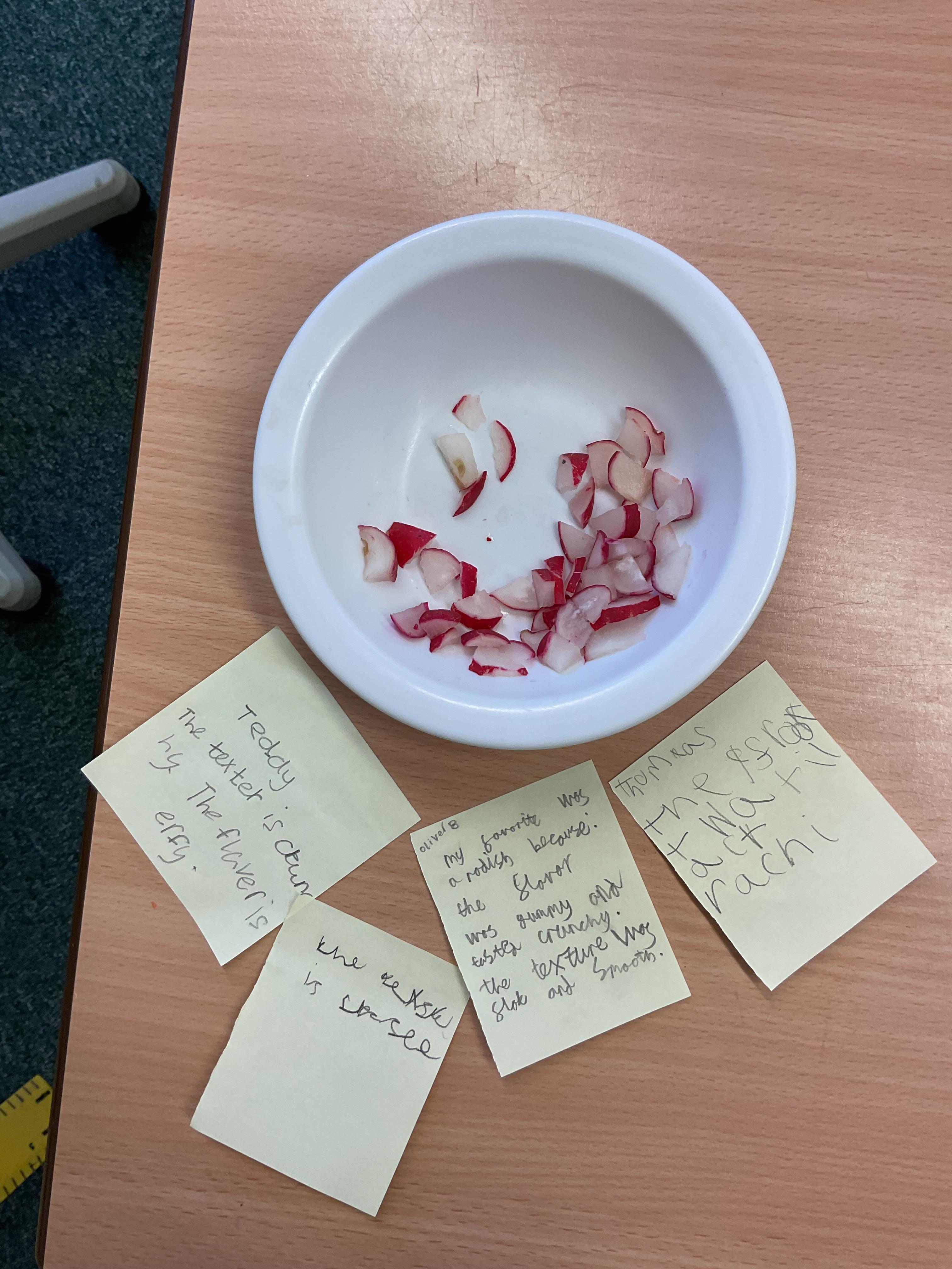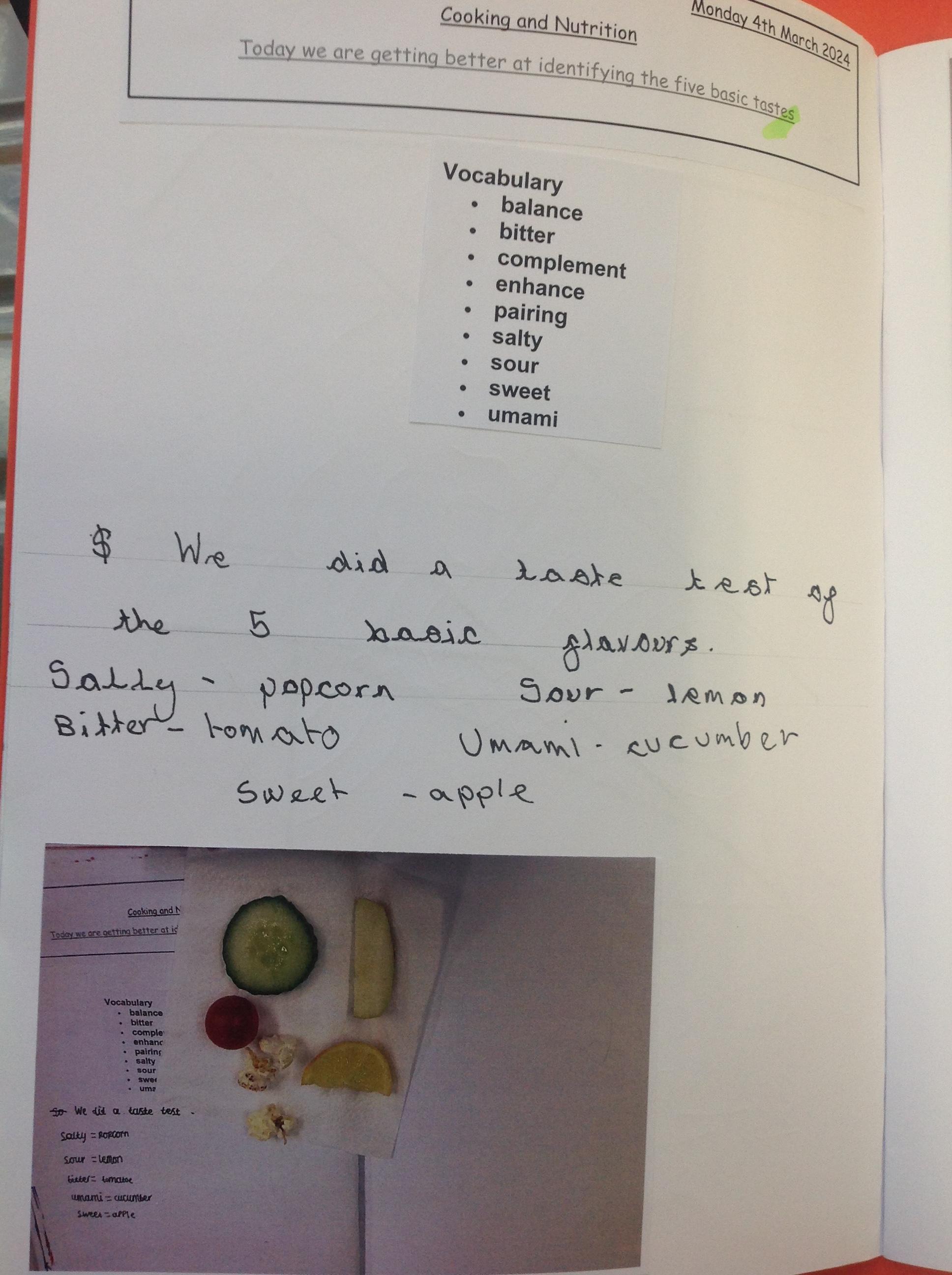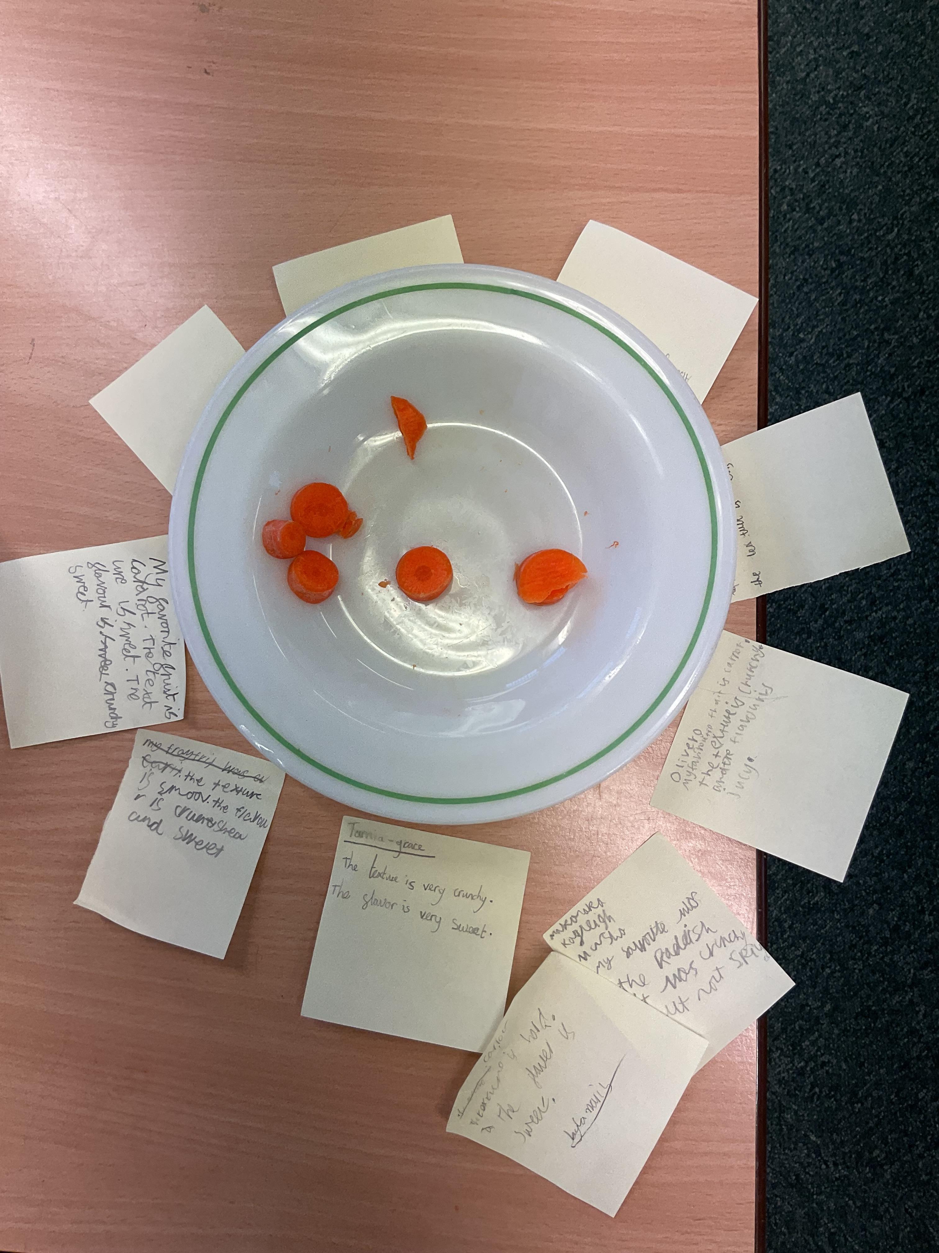 In this lesson, the children have been tasting their seasonal ingredients to evaluate them using a flavour wheel.