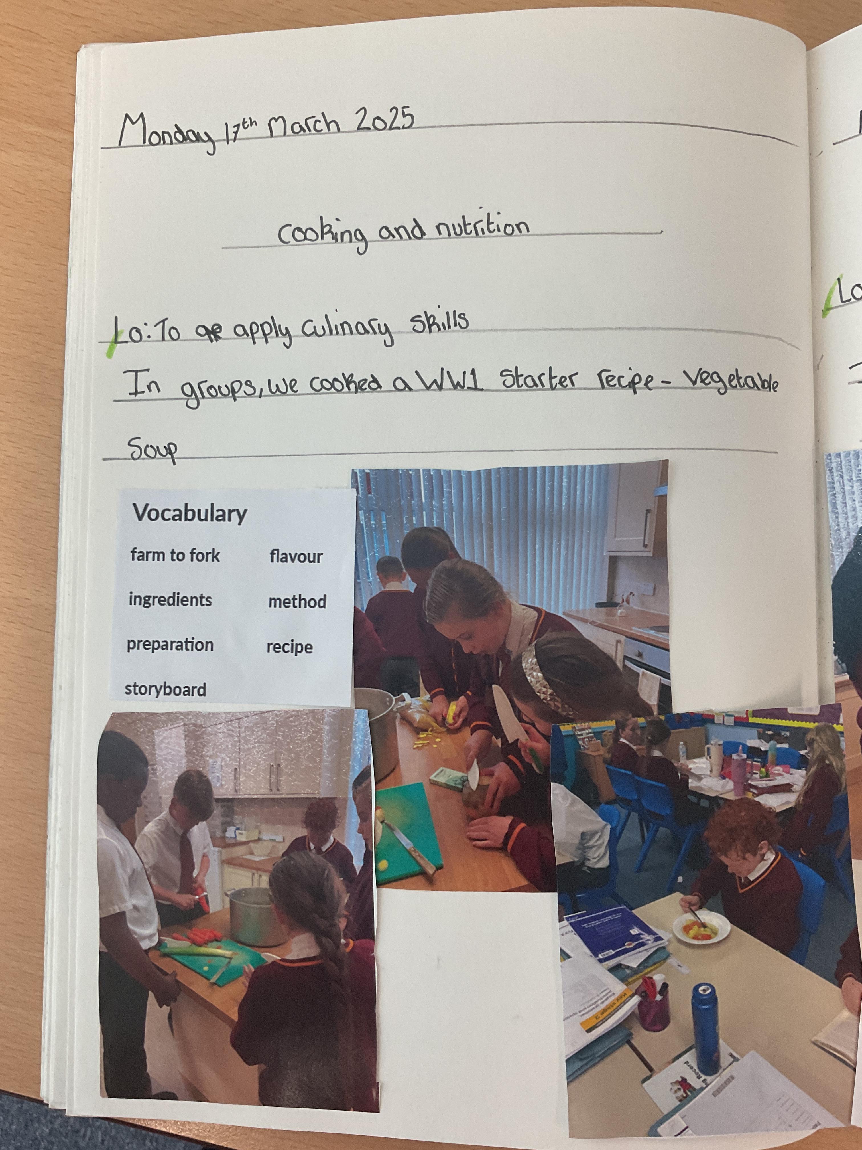 In Design Technology, Year 6 cooked a 3 course meal based on World War 1 recipes...