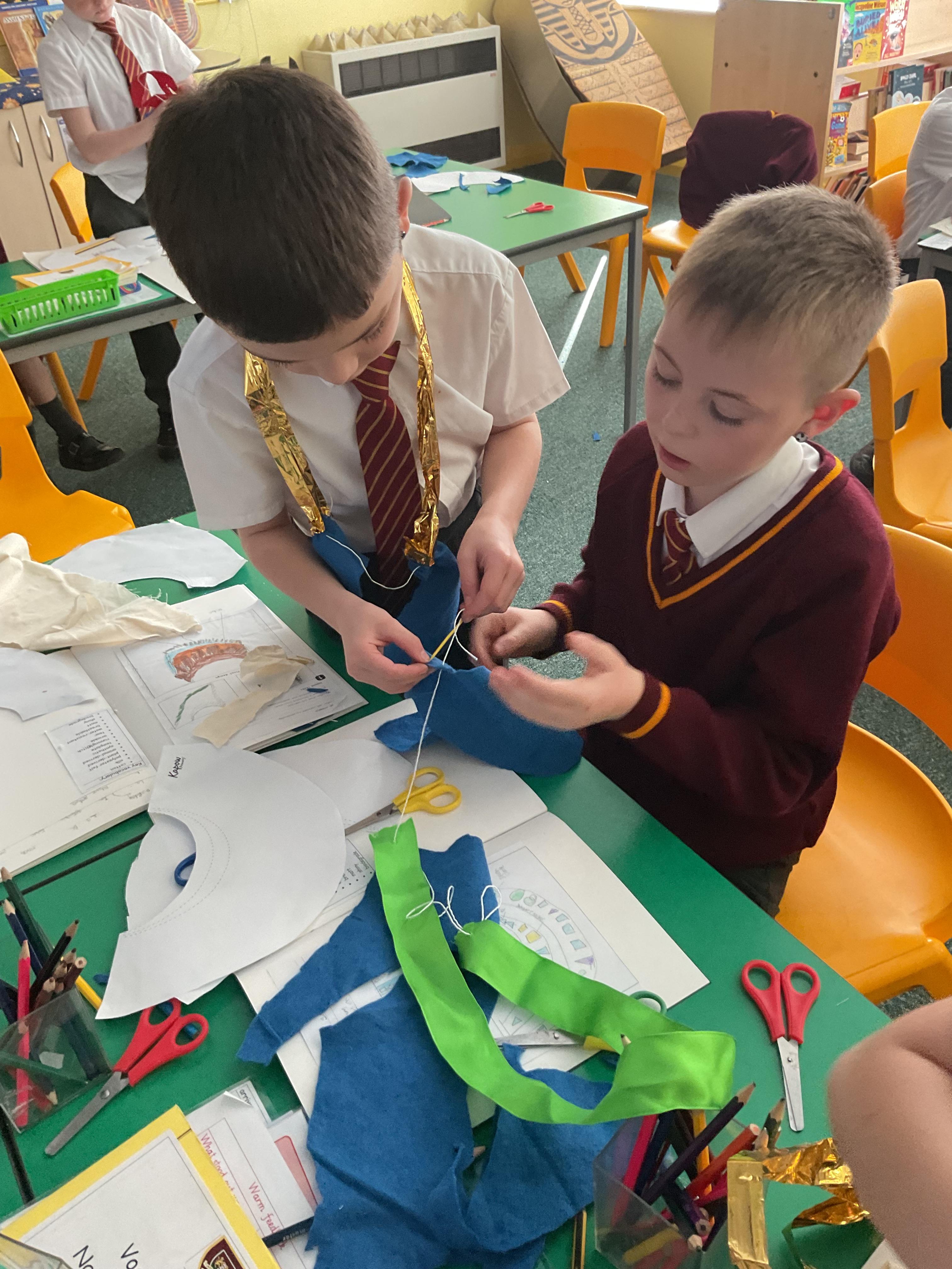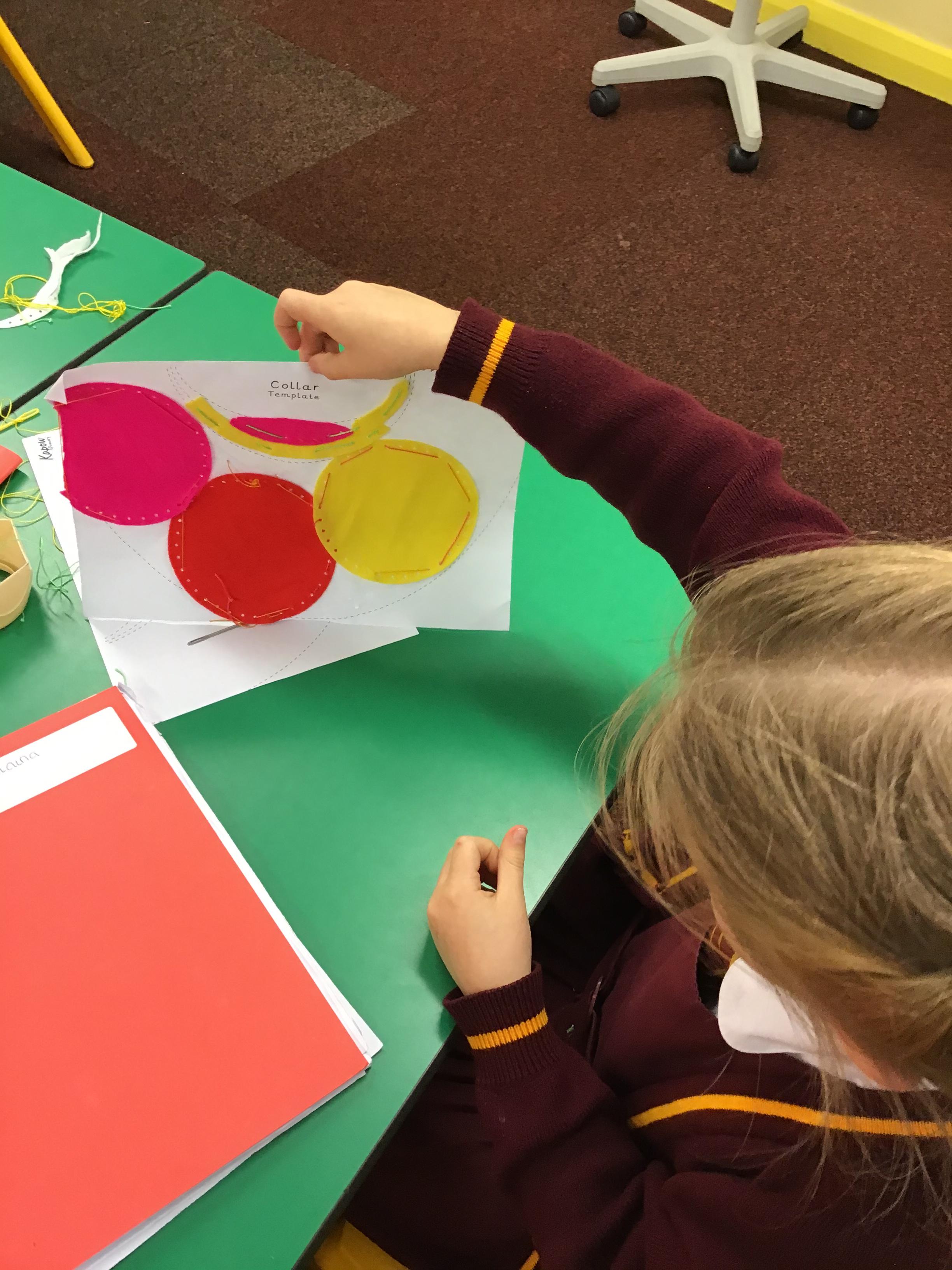 In year 3, the children have been getting better at applying their skills of cross stitch and appliqué to creating their own Egyptian Collar, using felt and a paper template.
