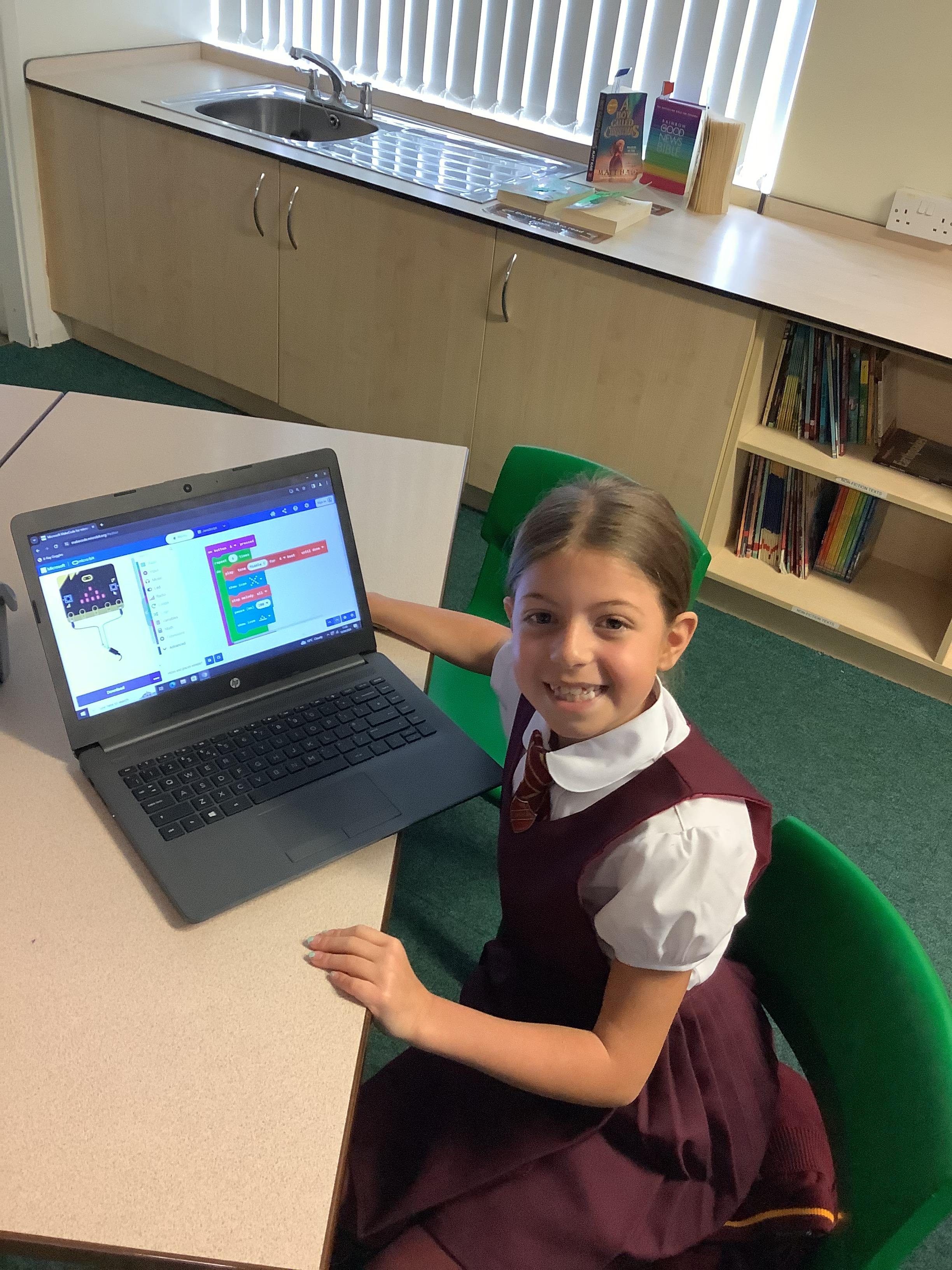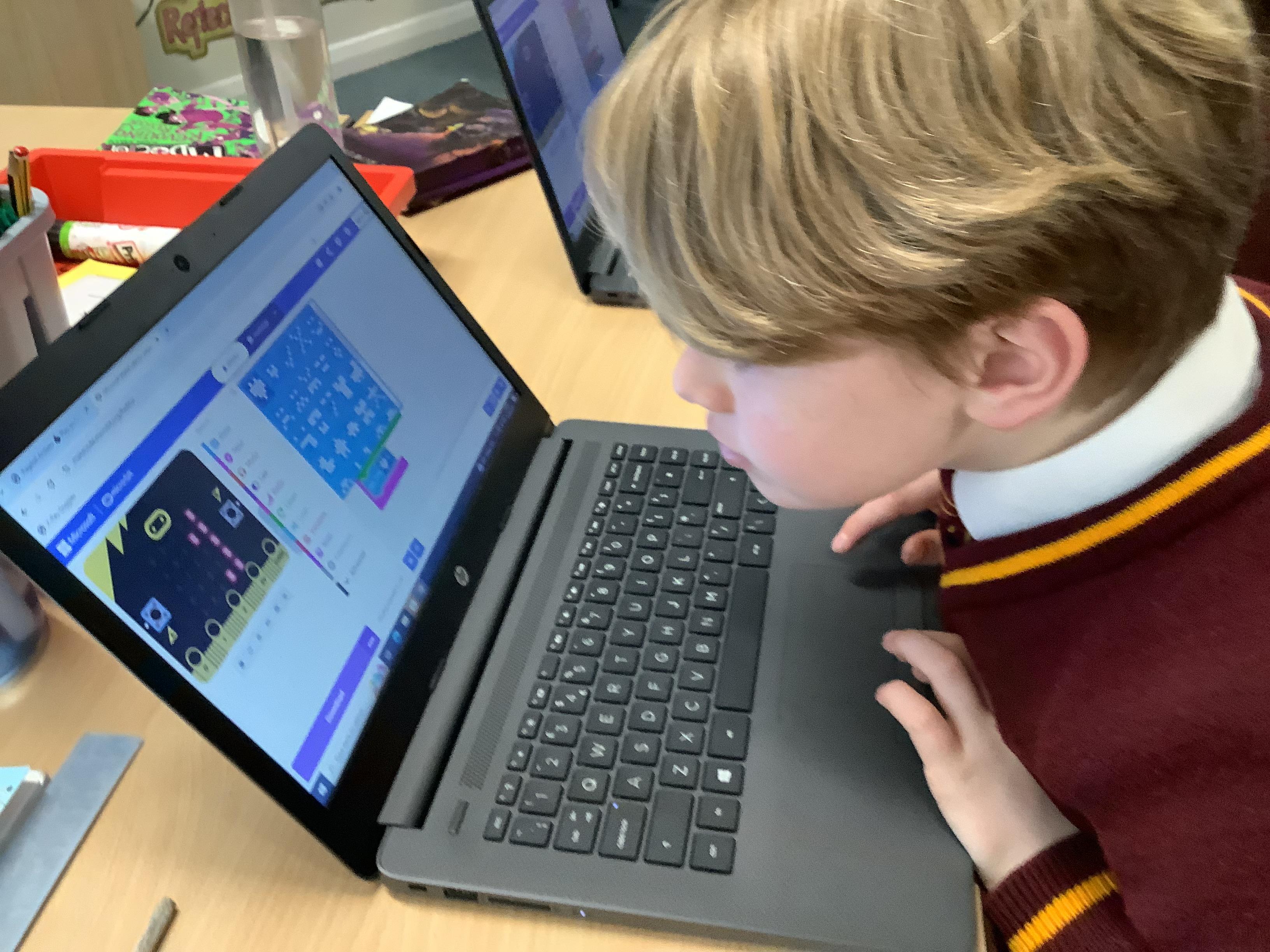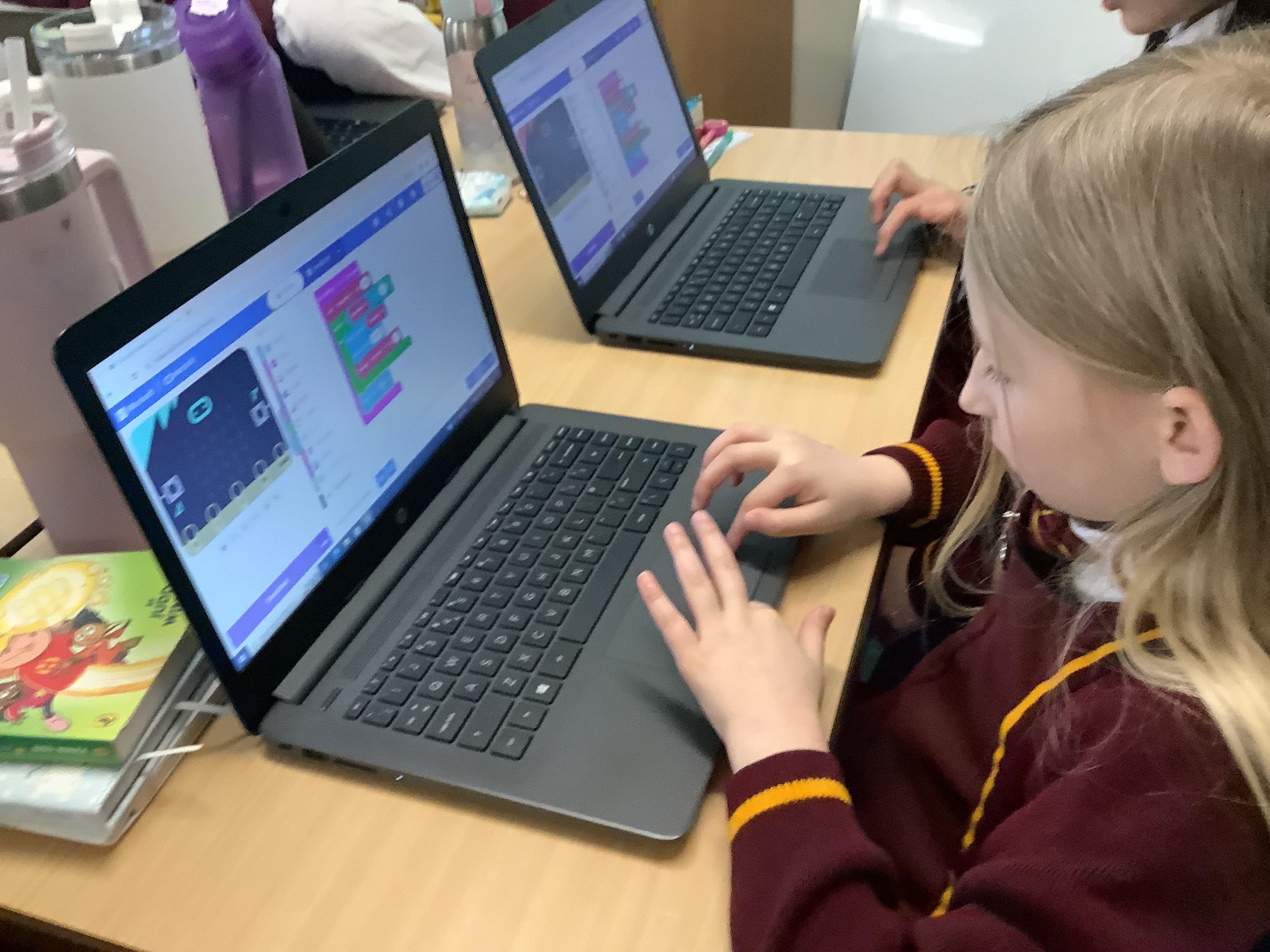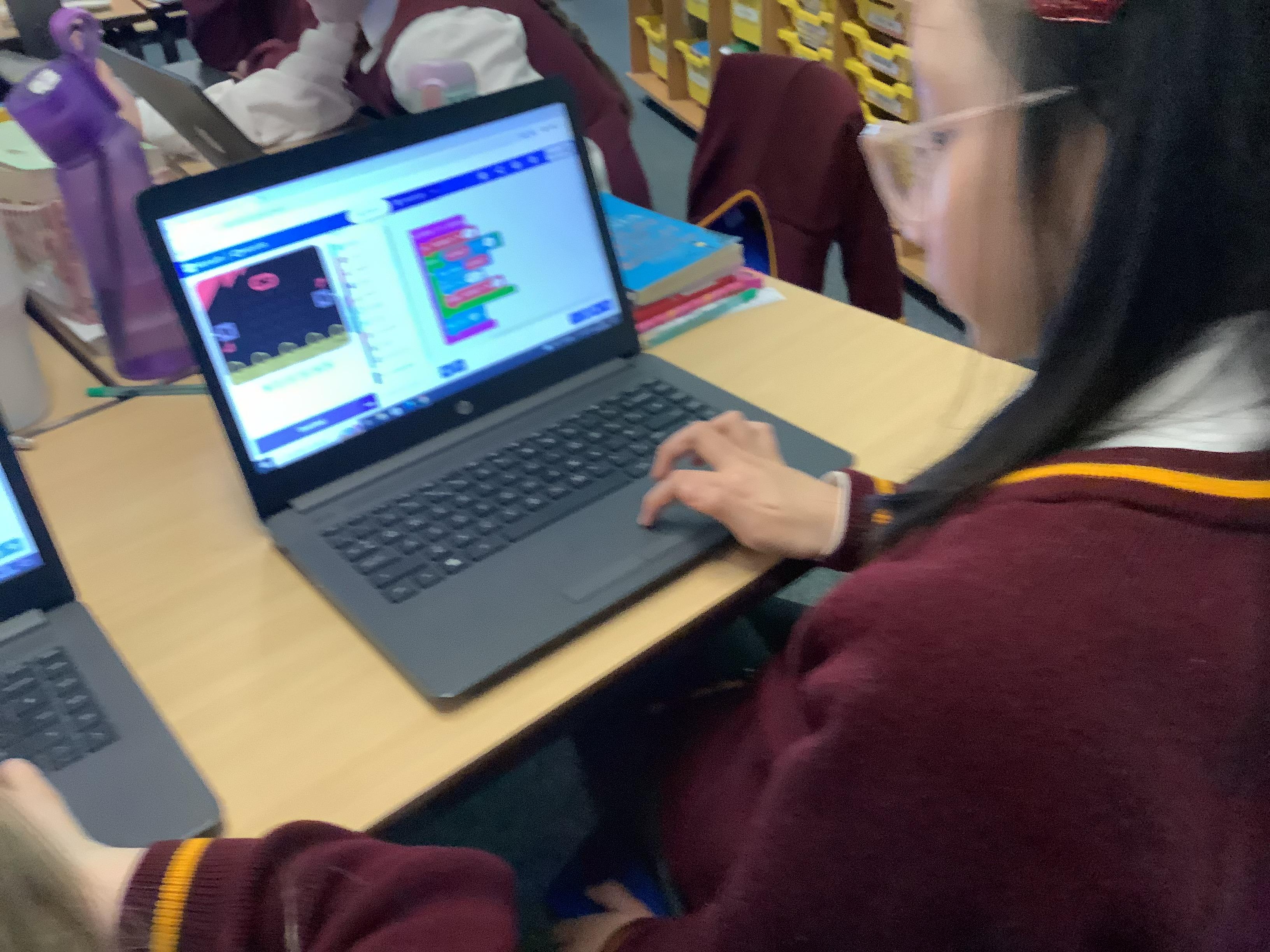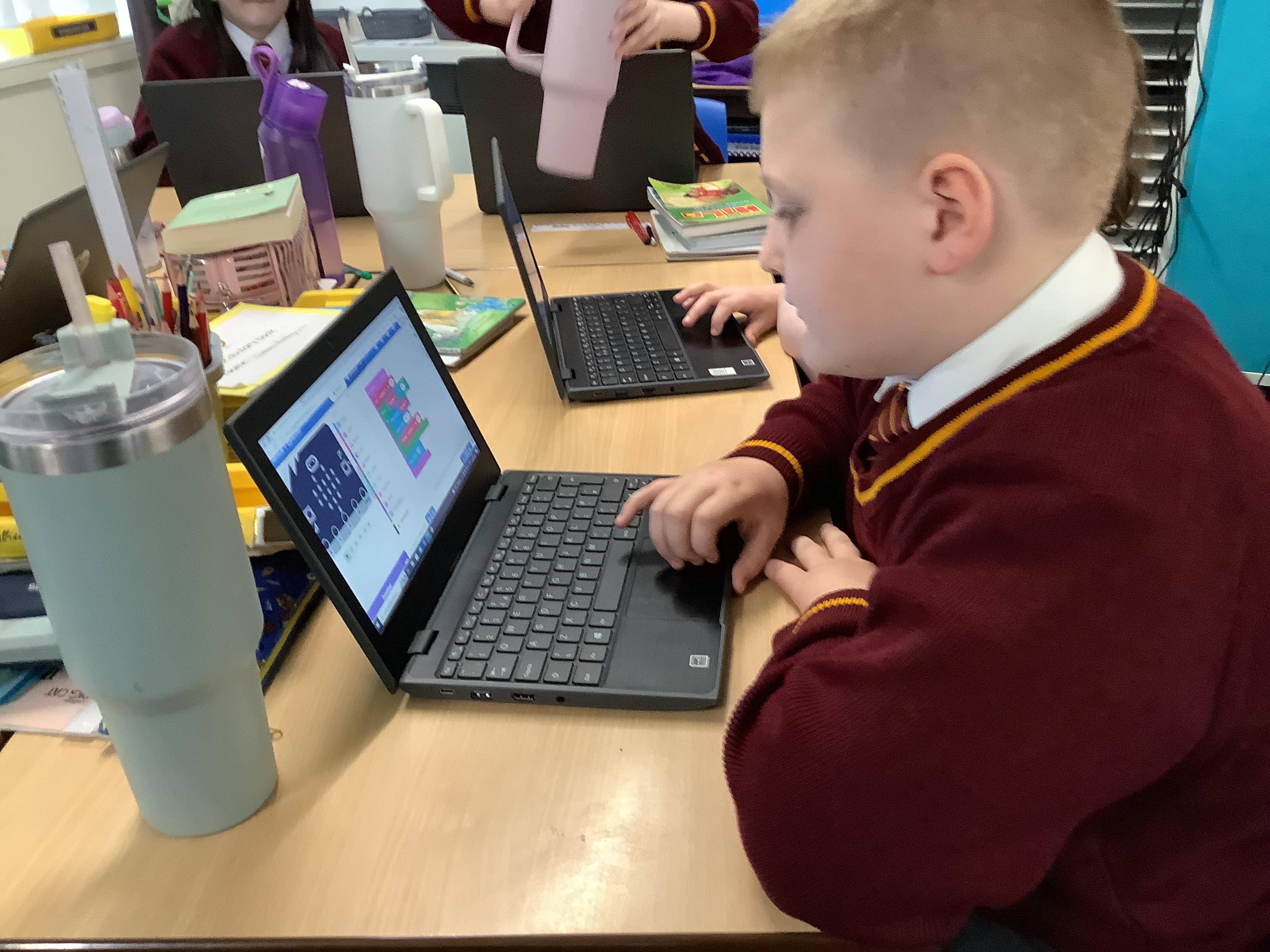 The children in year 5 were learning how to write a program to instruct a micro:bit to monitor movement, including an alert in the event of an earthquake.