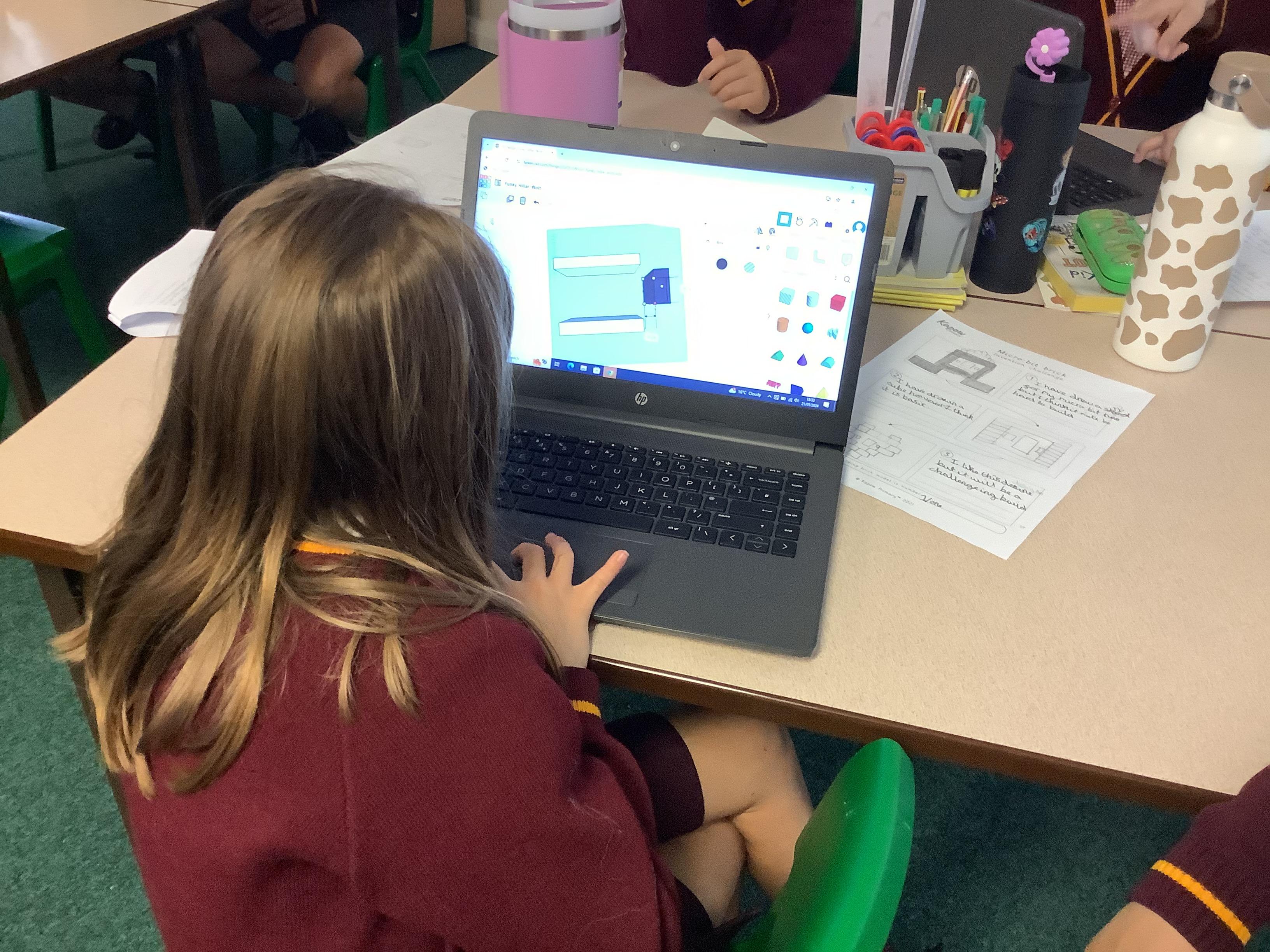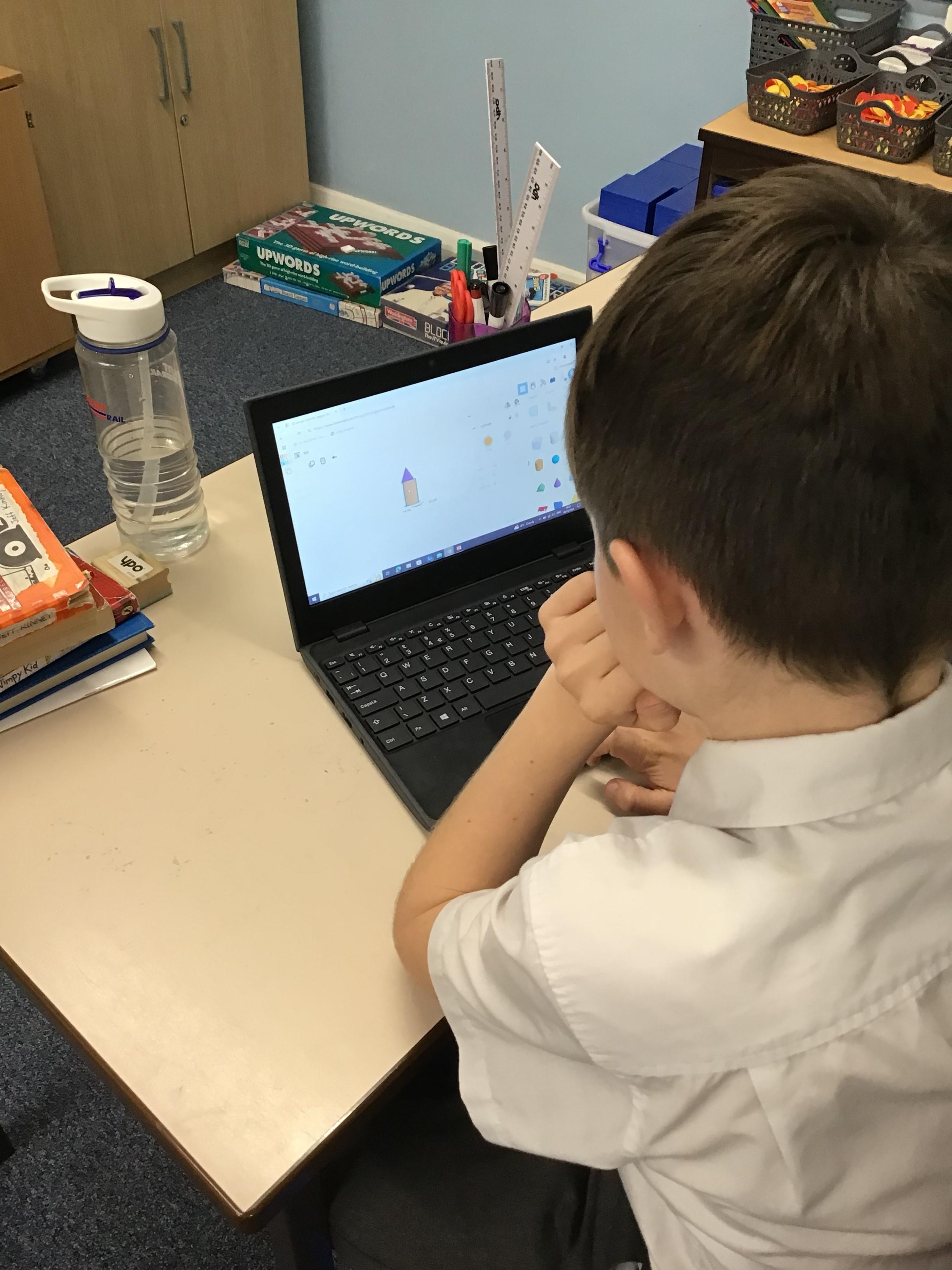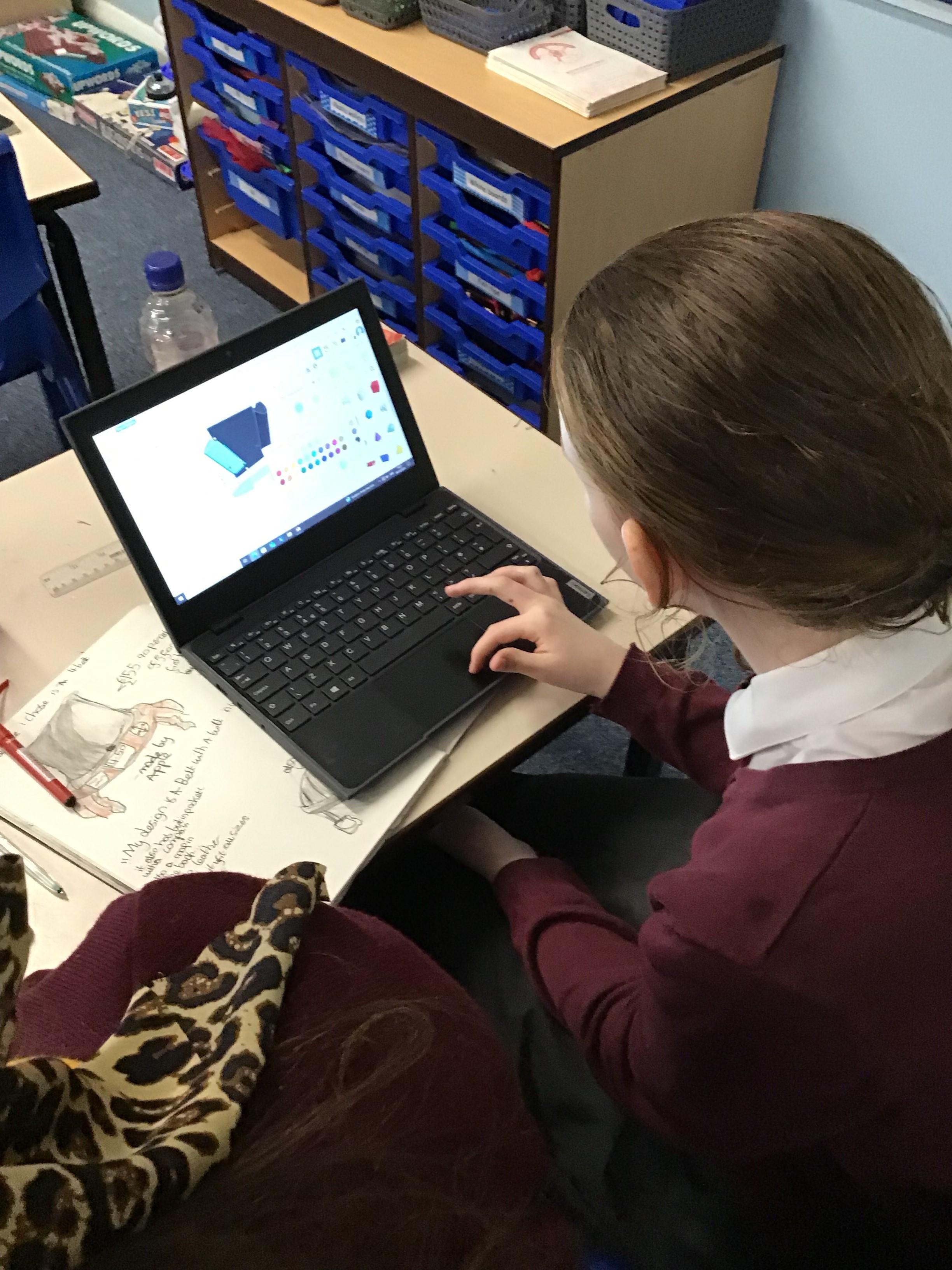The children in year 5 used the laptops to learn about and practise 3D CAD skills to build the final design of their monitoring device and its case. They were able to place and manoeuvre 3D objects on the Tinkercad interface by changing the properties of and combining one or more 3D objects on a plane.