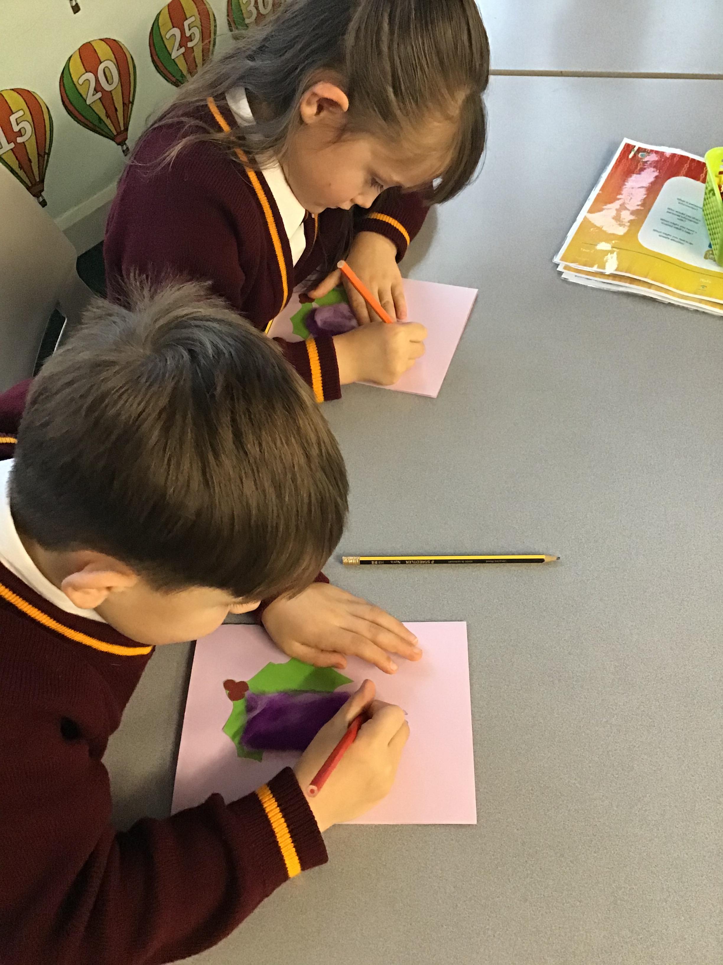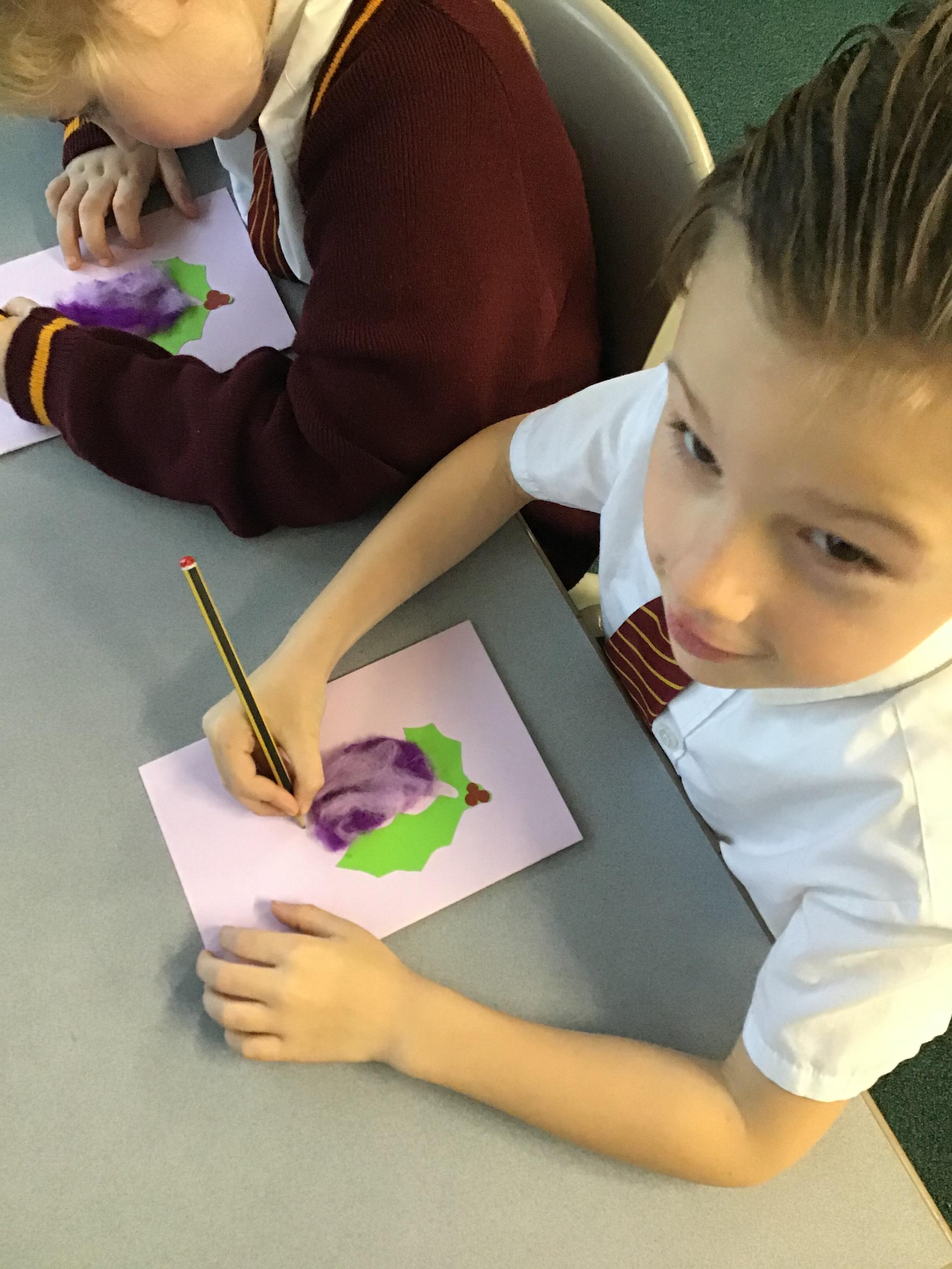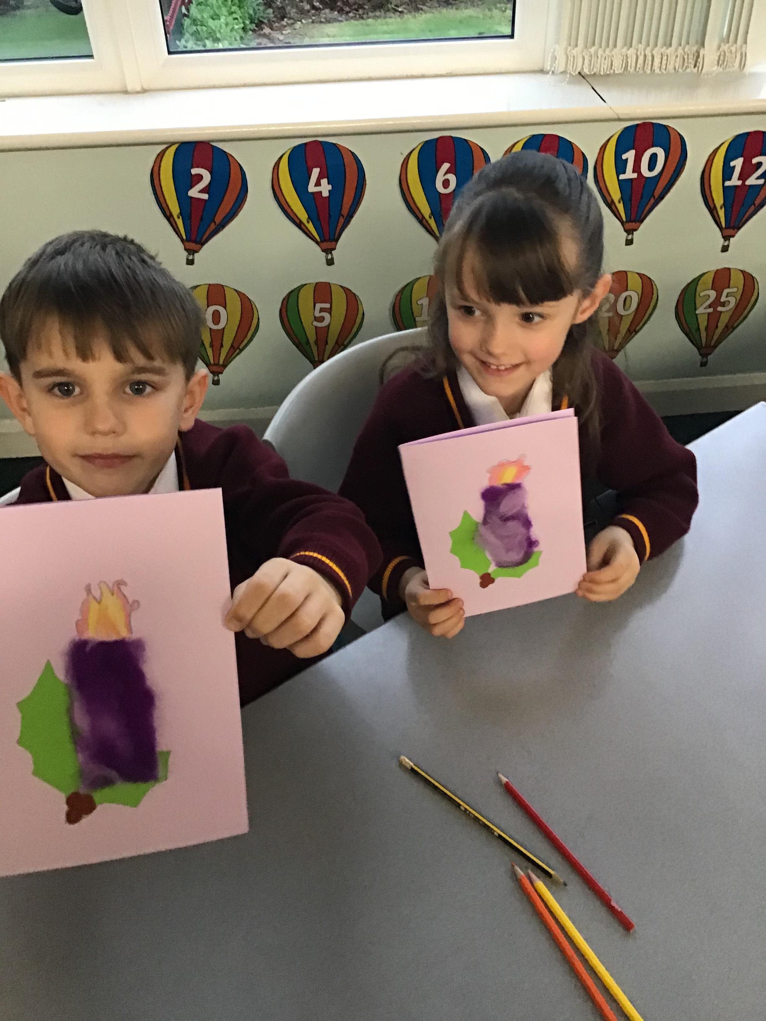 In Year 2, children have made felt candles and designed Christmas cards.