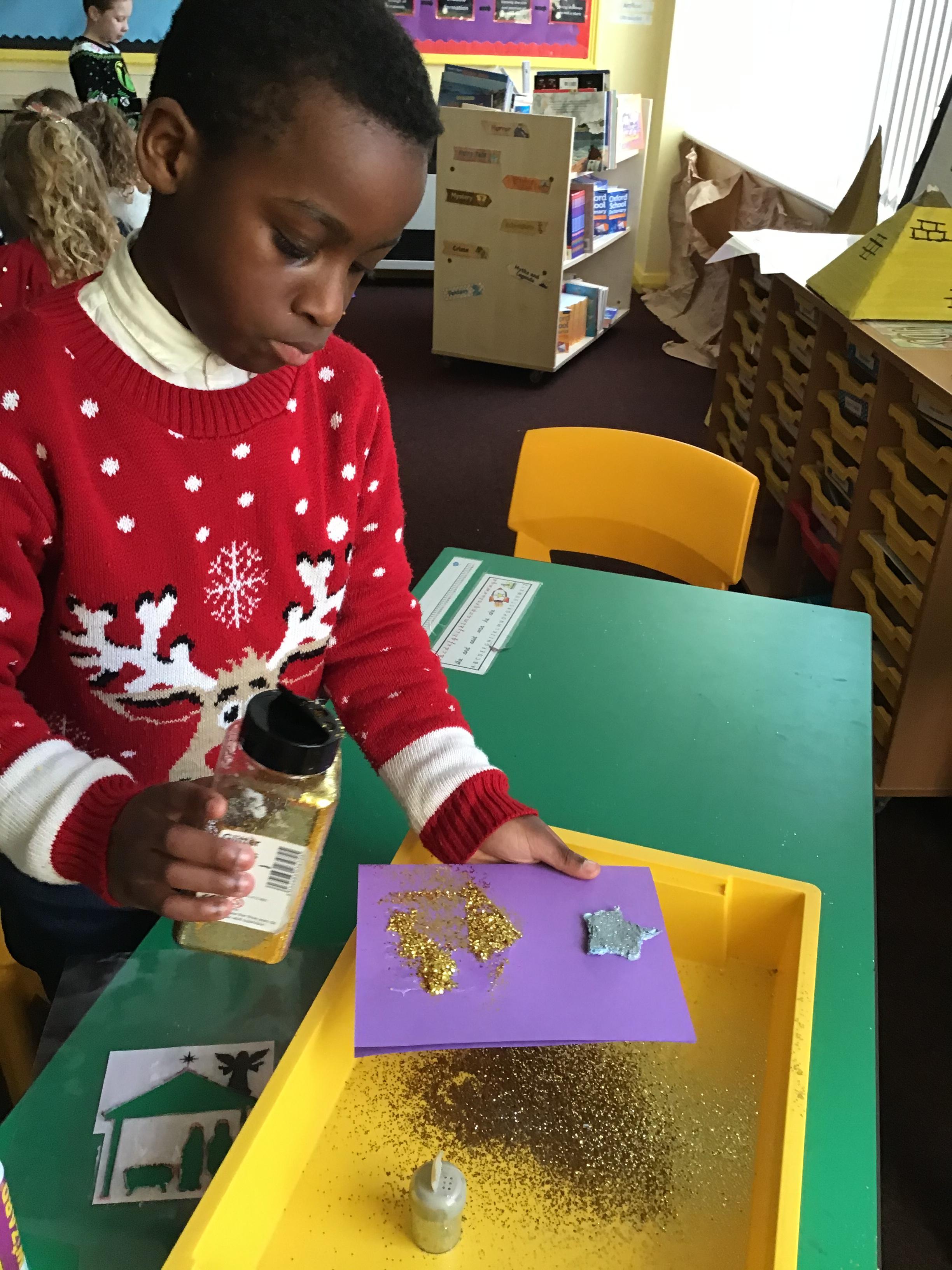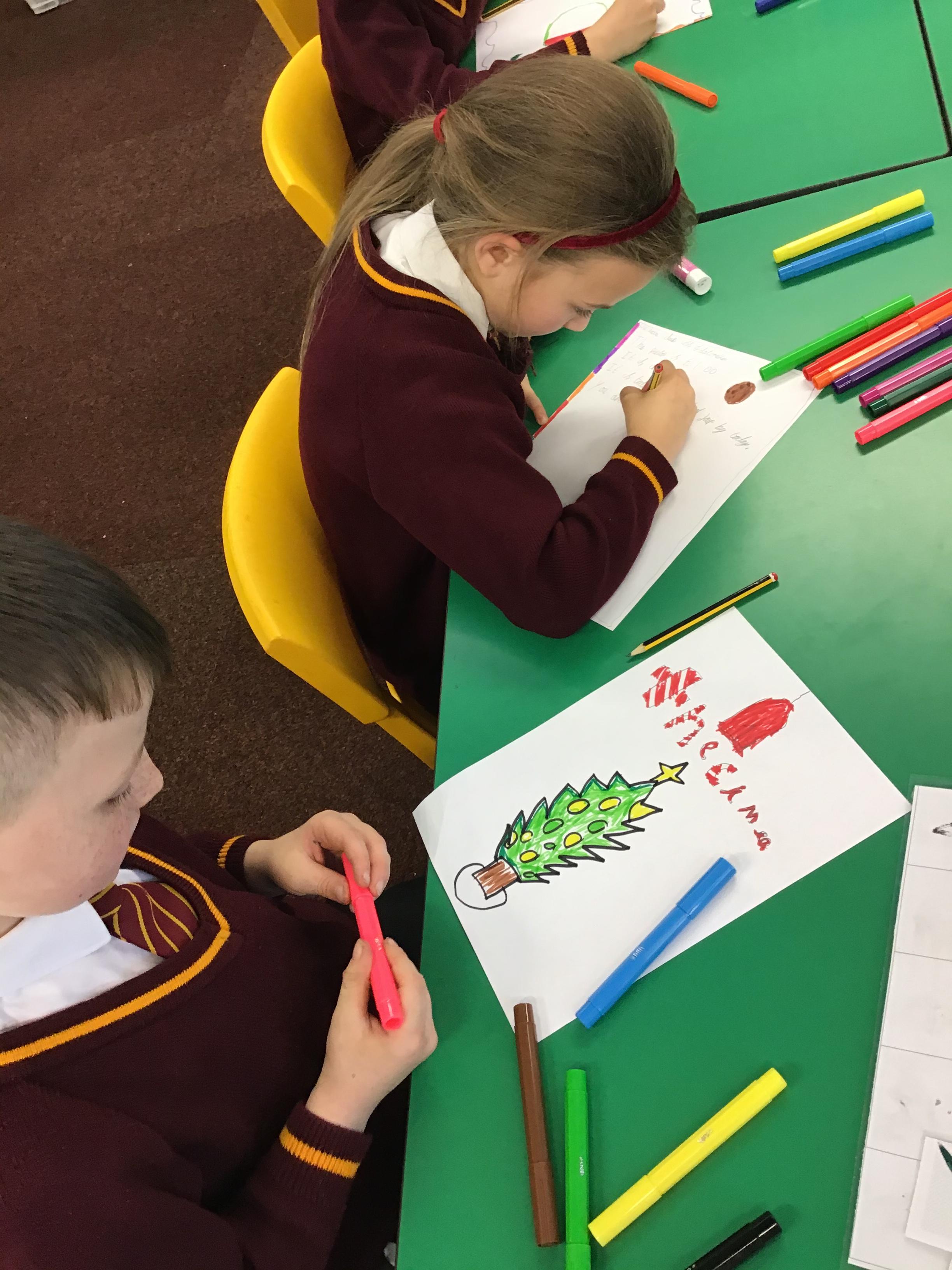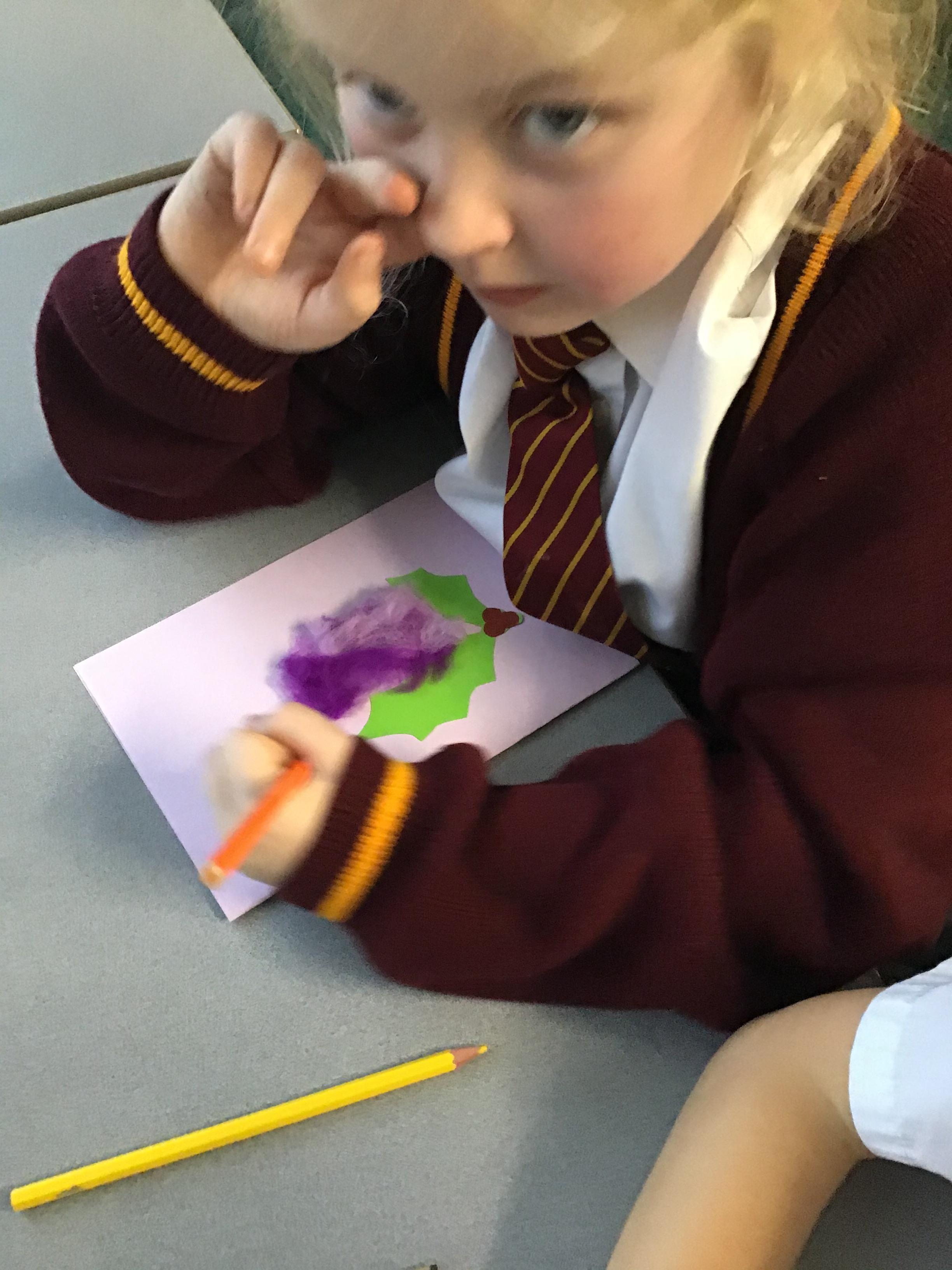 In Year 2, children have made felt candles and designed Christmas cards.