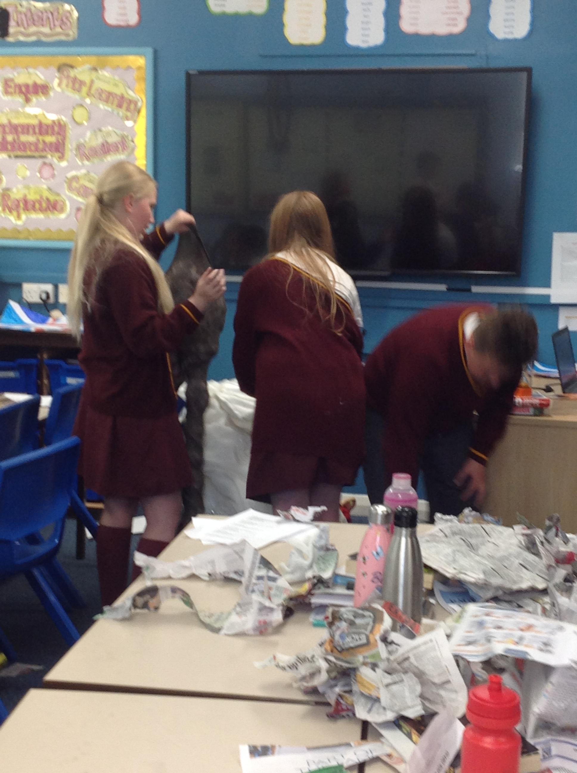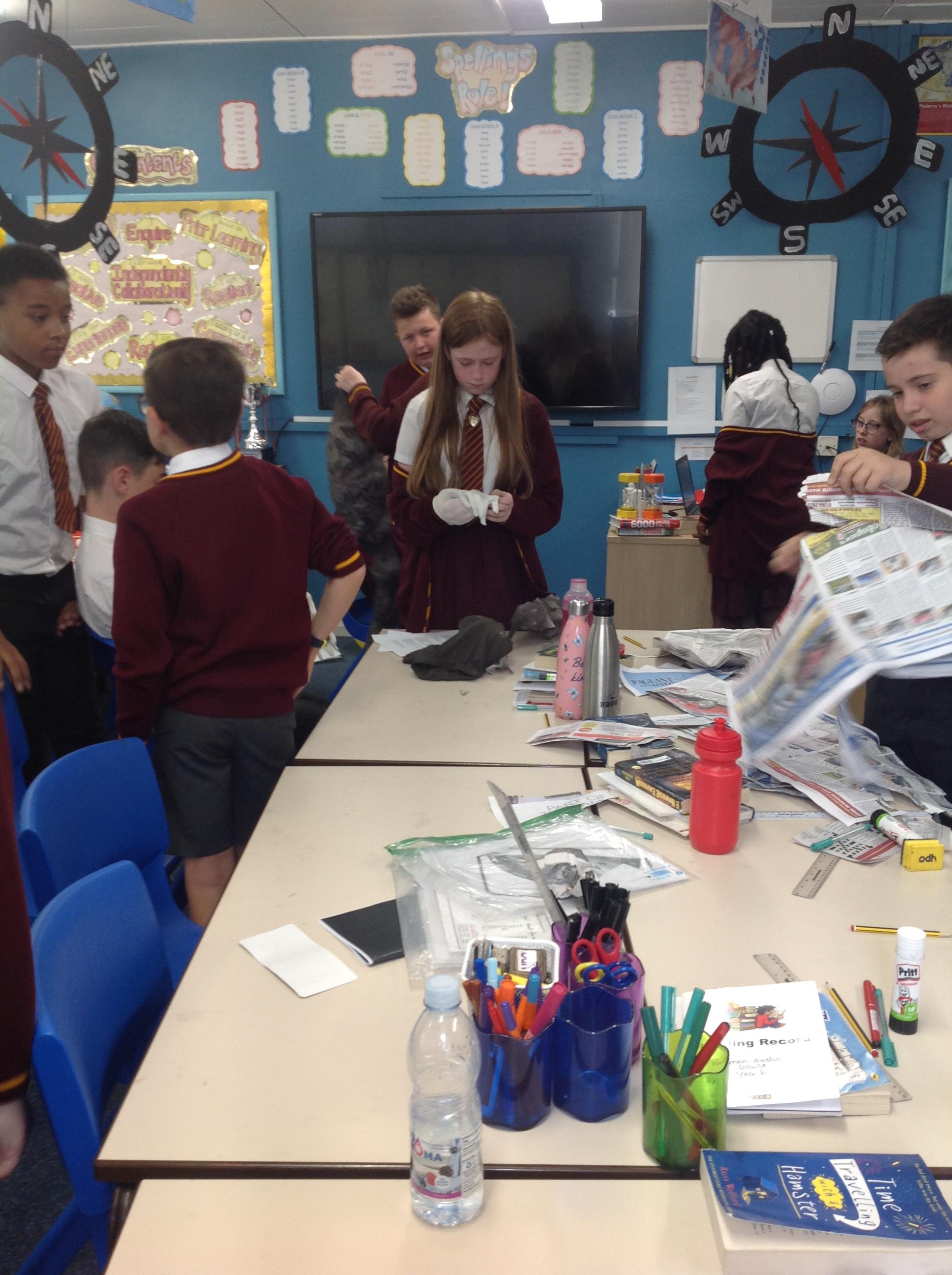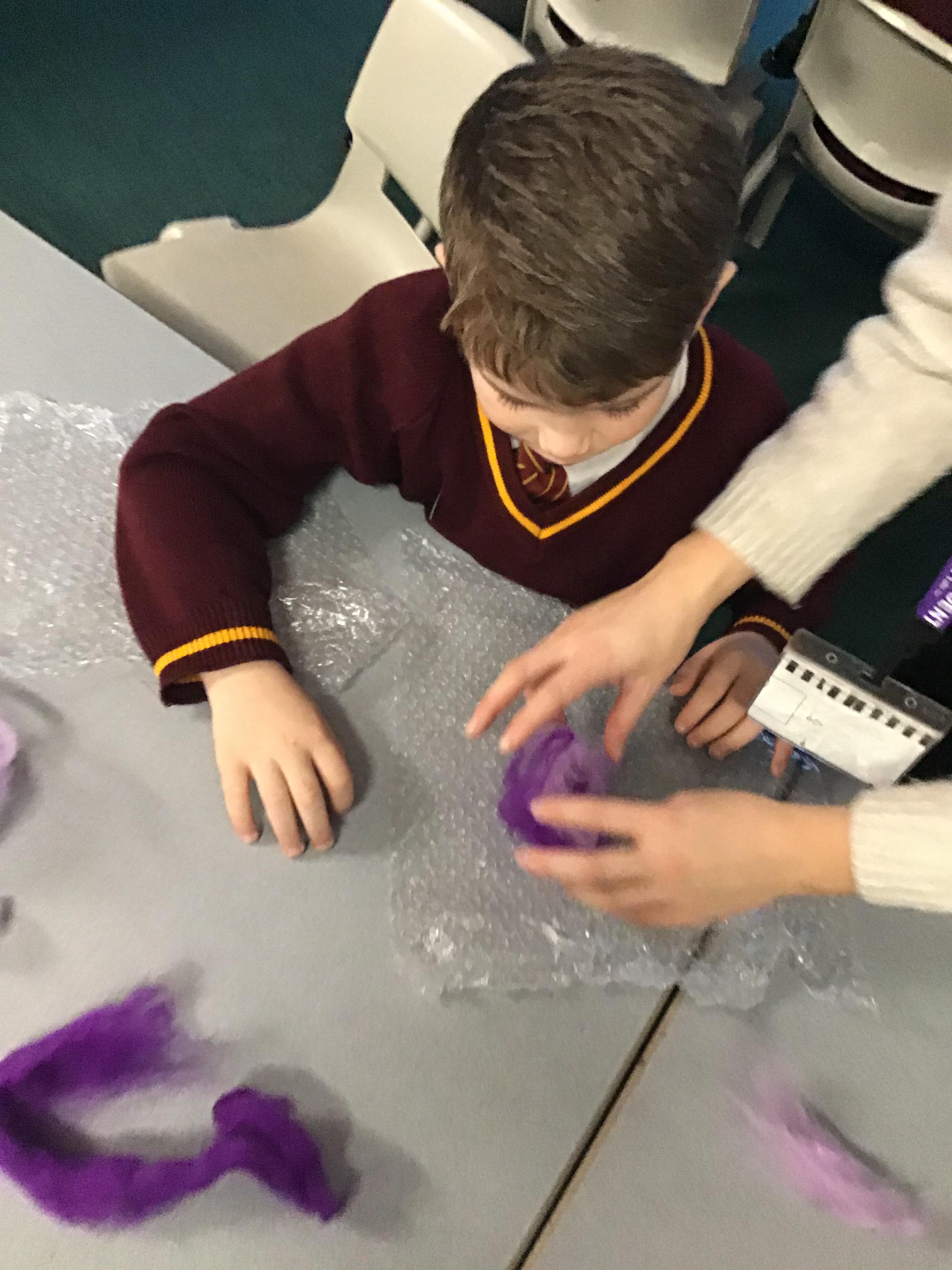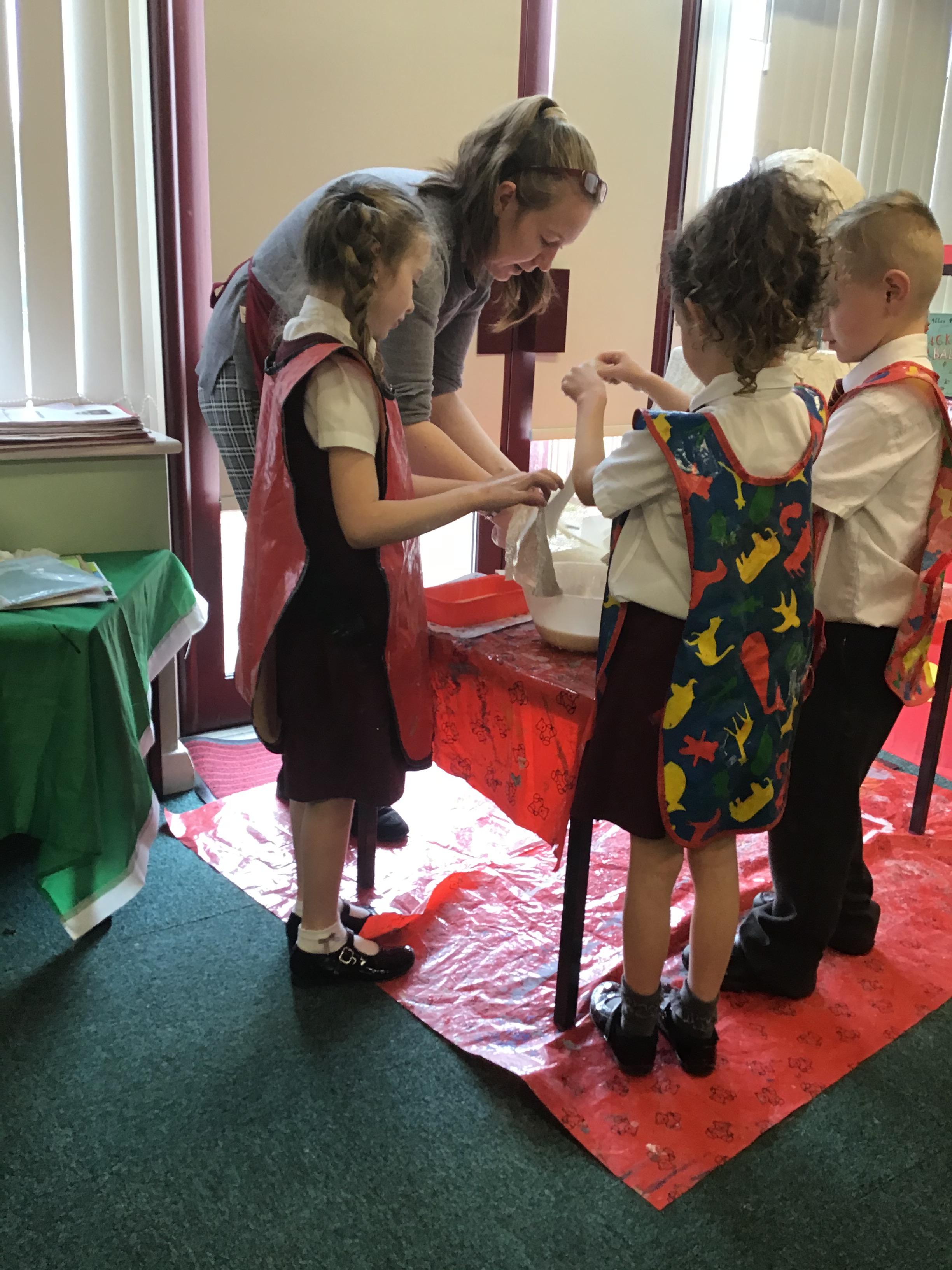 Reception children have been experimenting (and getting messy) with modroc. They shaped and moulded newspaper in the shape of a crown and cut and wet modroc before applying it. Next job, painting and applying jewels!
