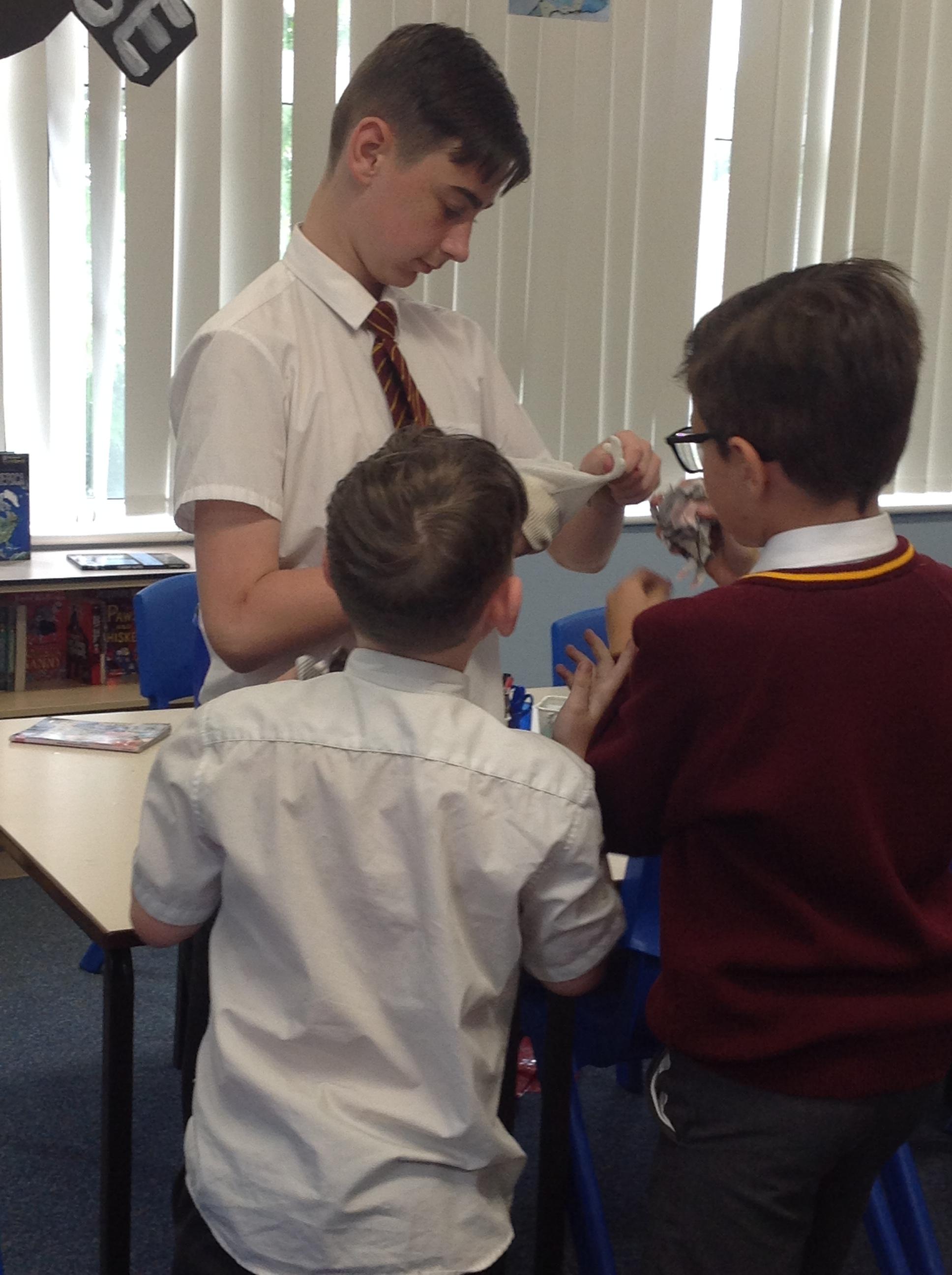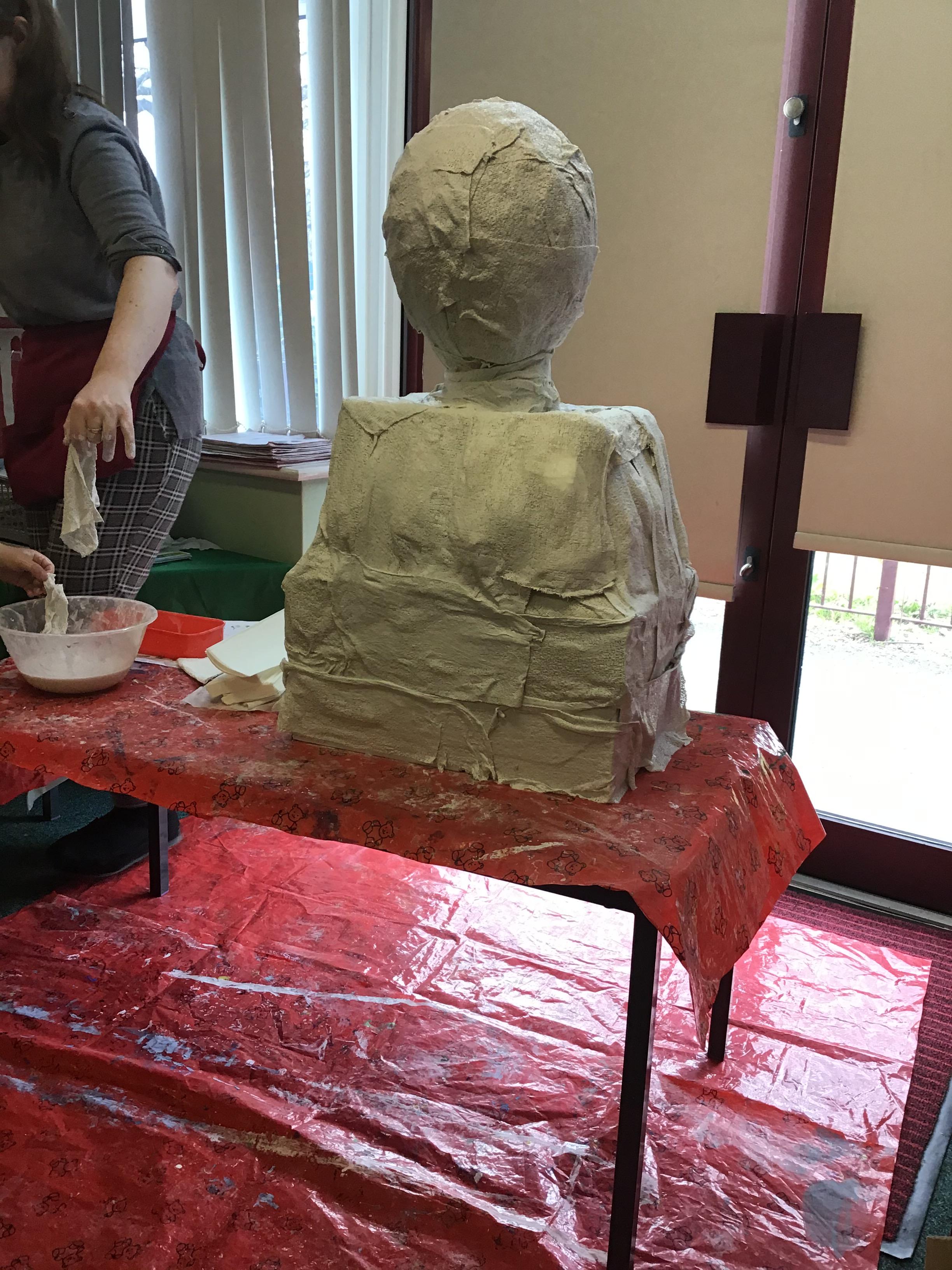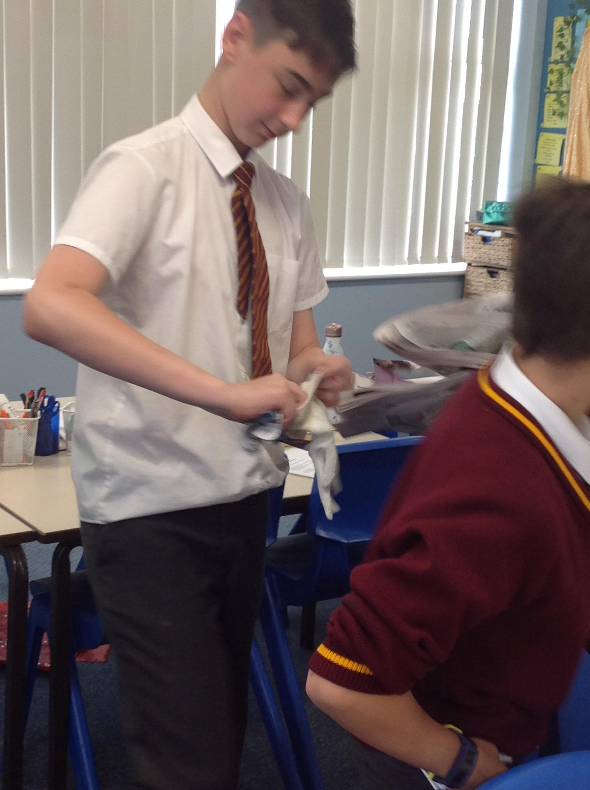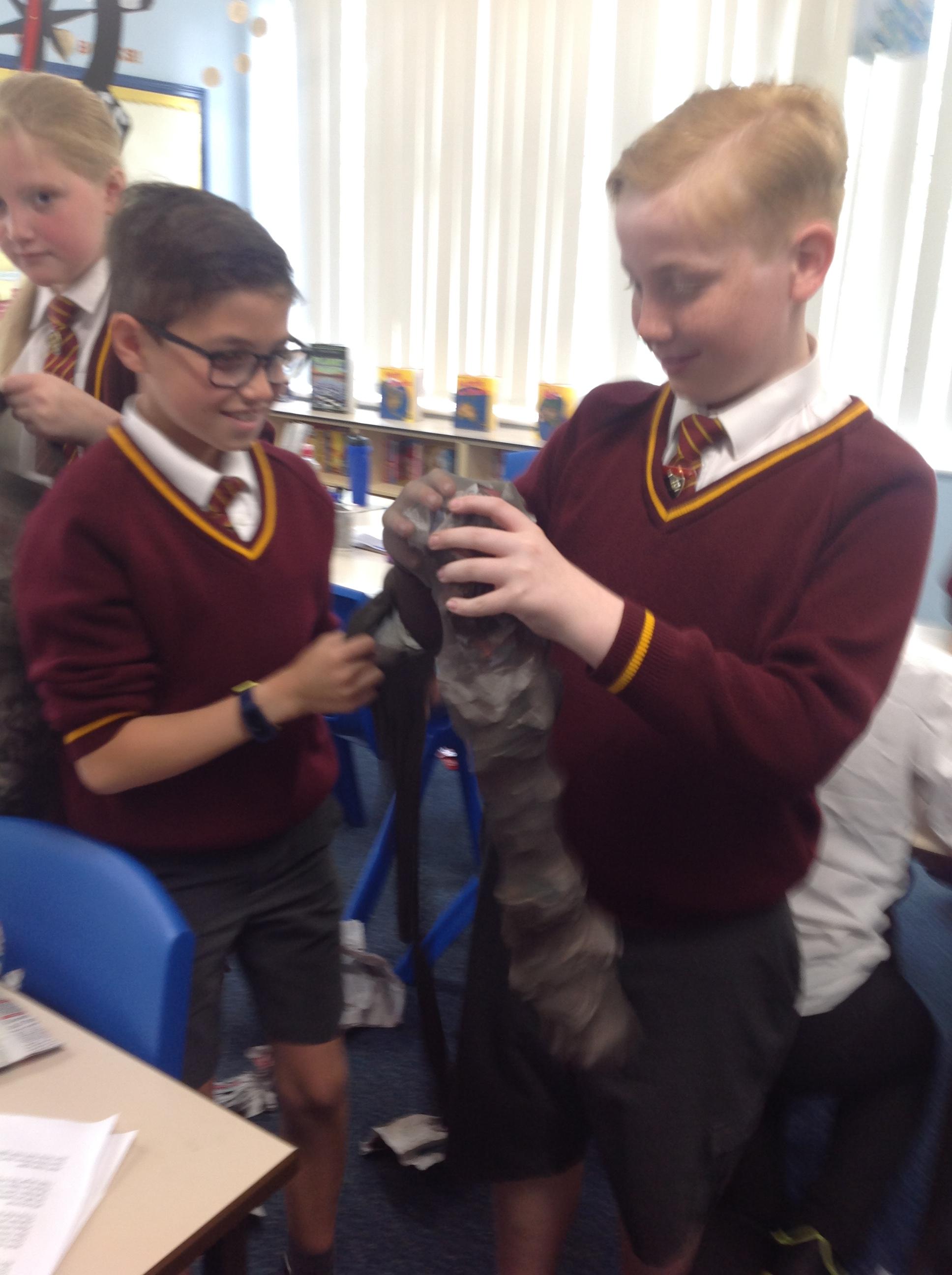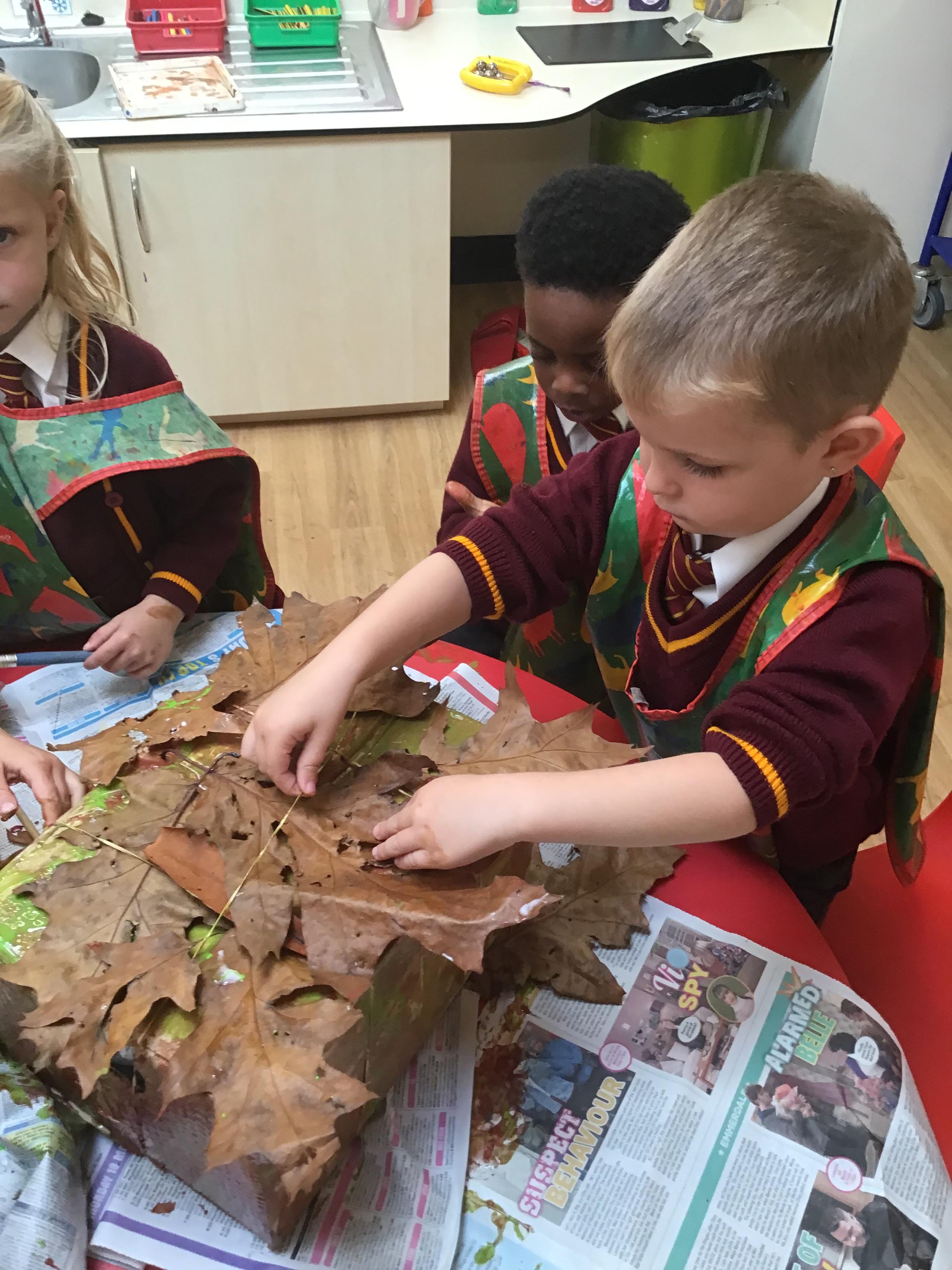 Reception children have been experimenting (and getting messy) with modroc. They shaped and moulded newspaper in the shape of a crown and cut and wet modroc before applying it. Next job, painting and applying jewels!