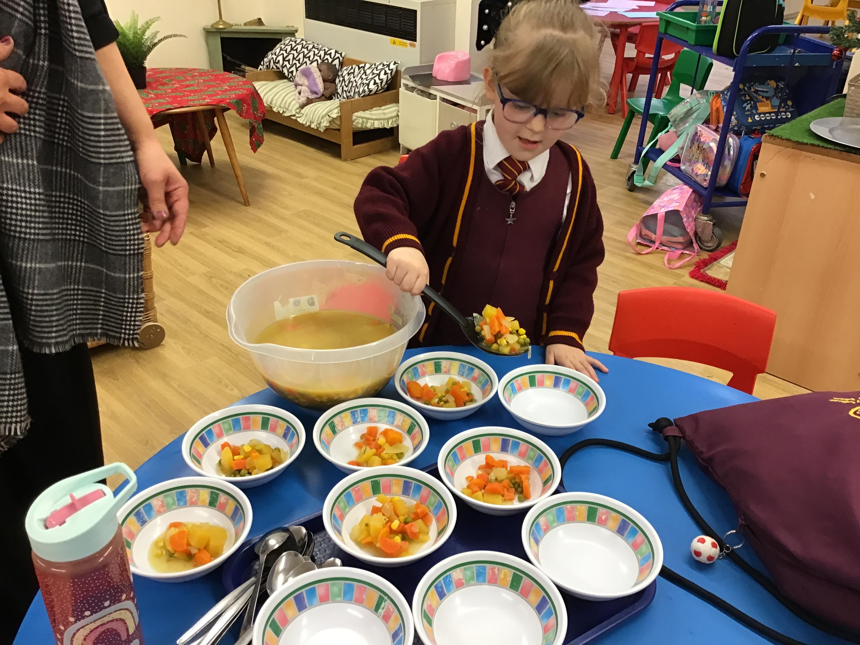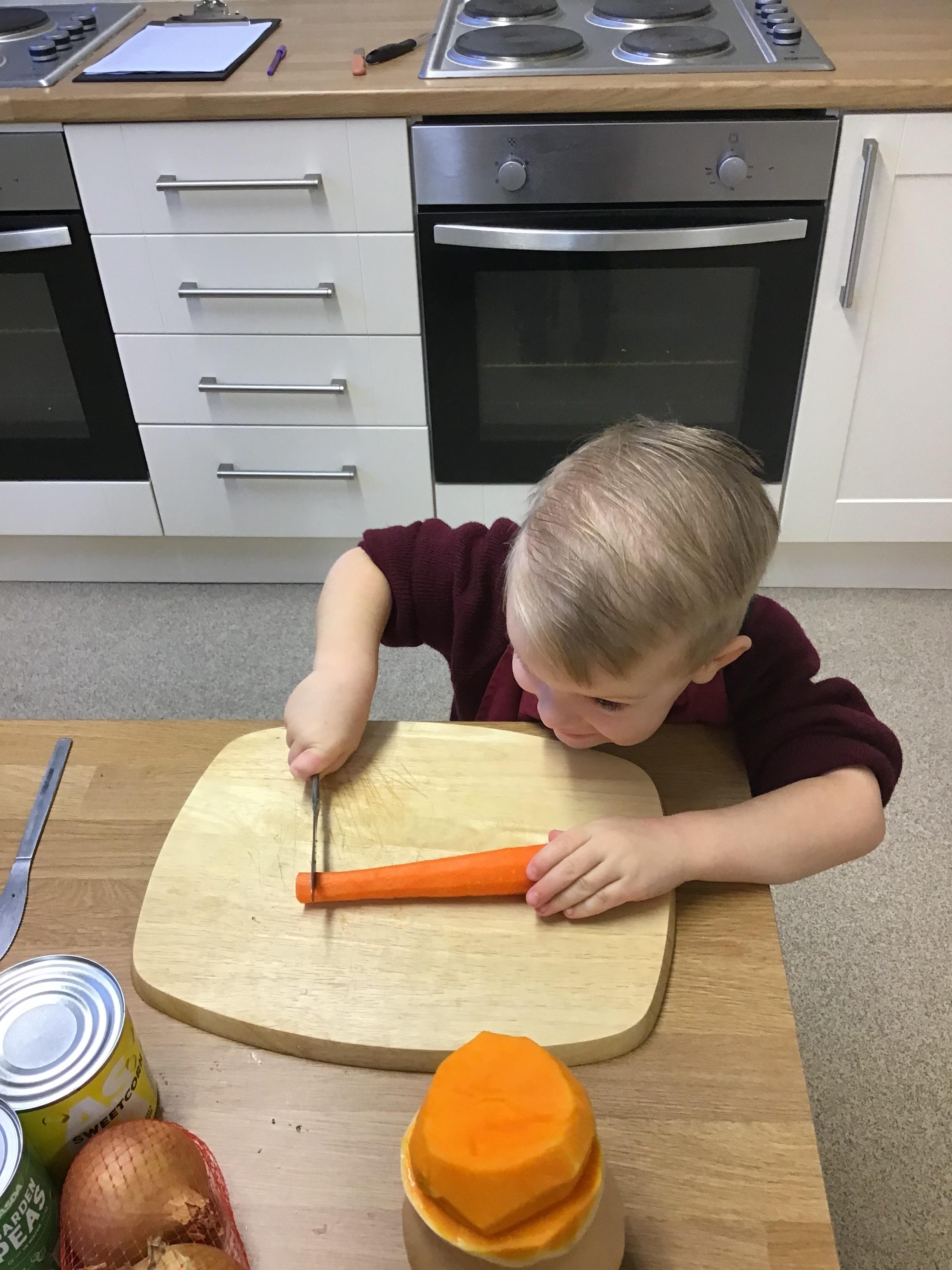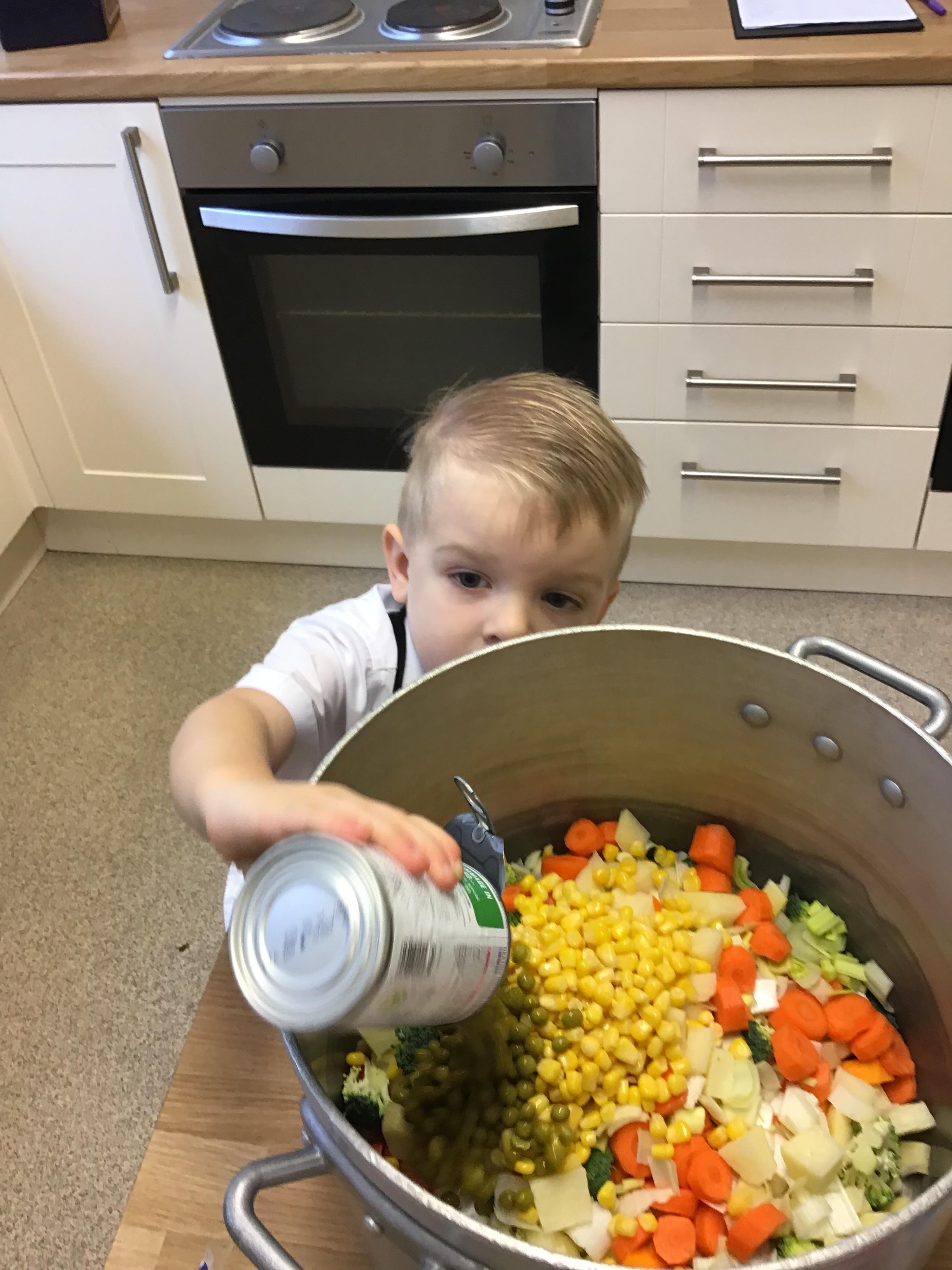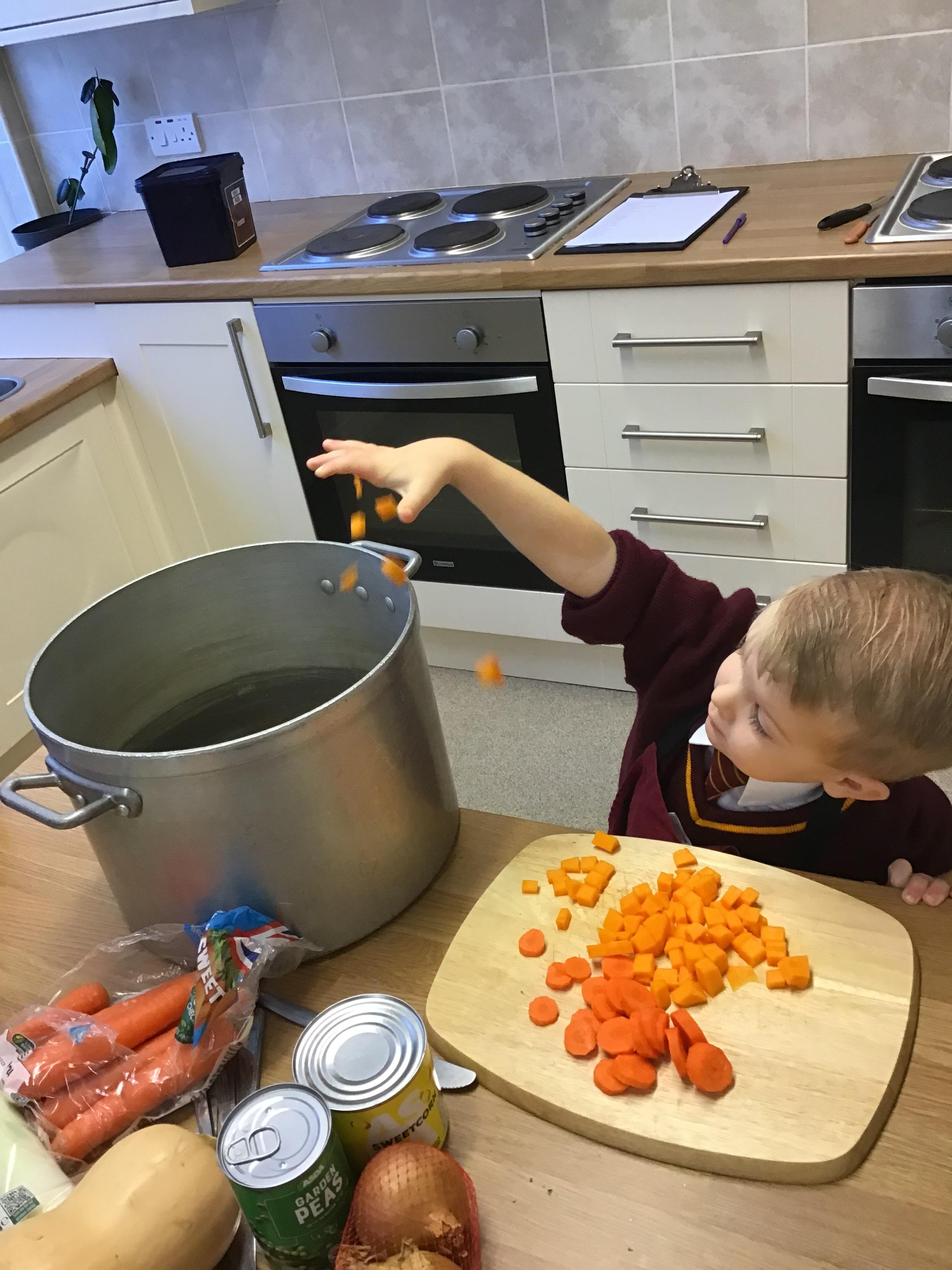 Nursery - Making Pumpkin Soup.