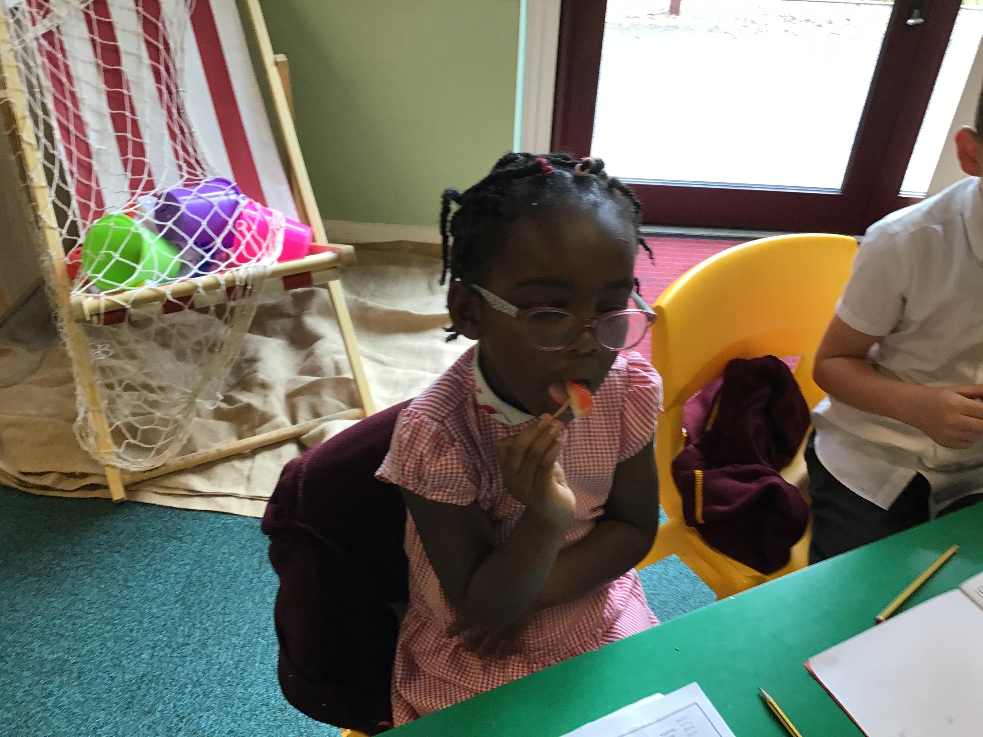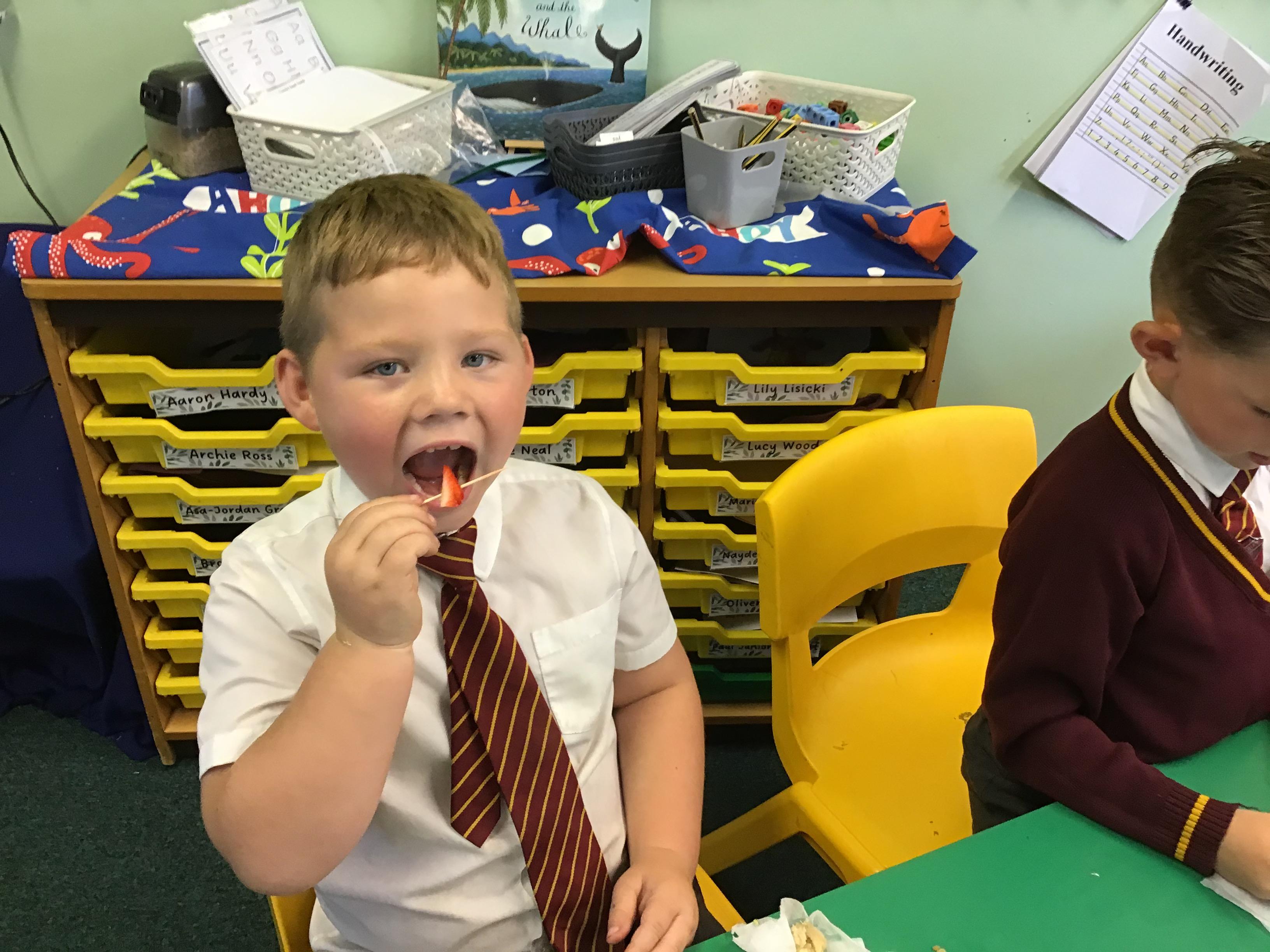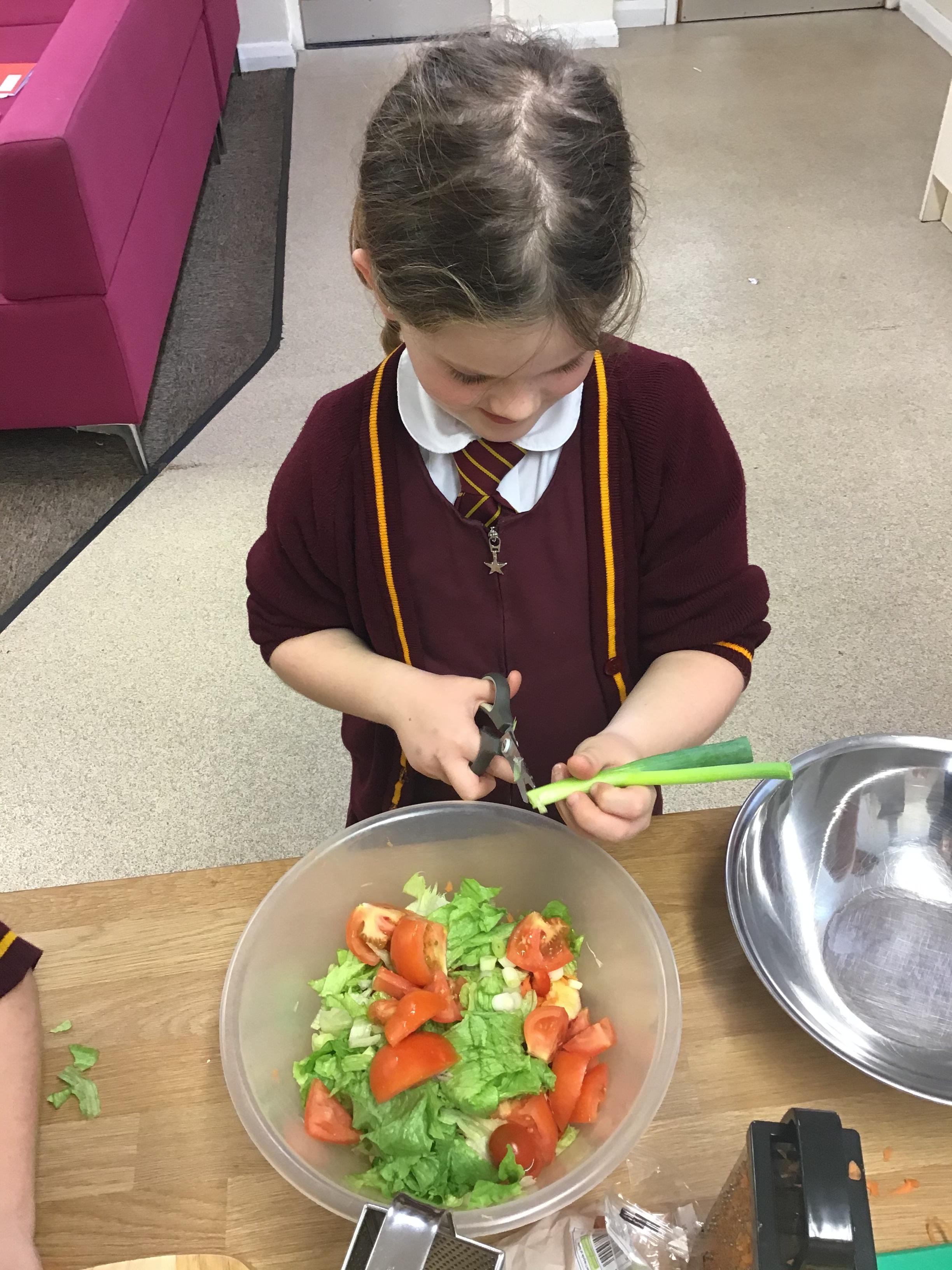 After revisiting the health and safety rules, children in Reception prepared the ingredients to create their rainbow salad. They tasted and evaluate their rainbow salad.