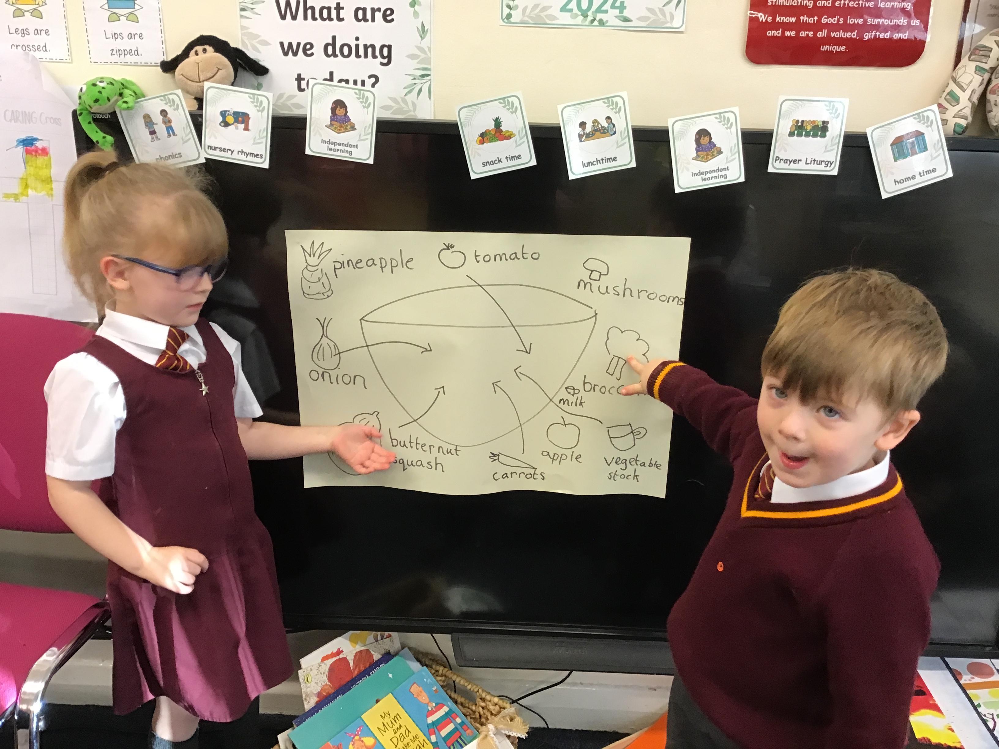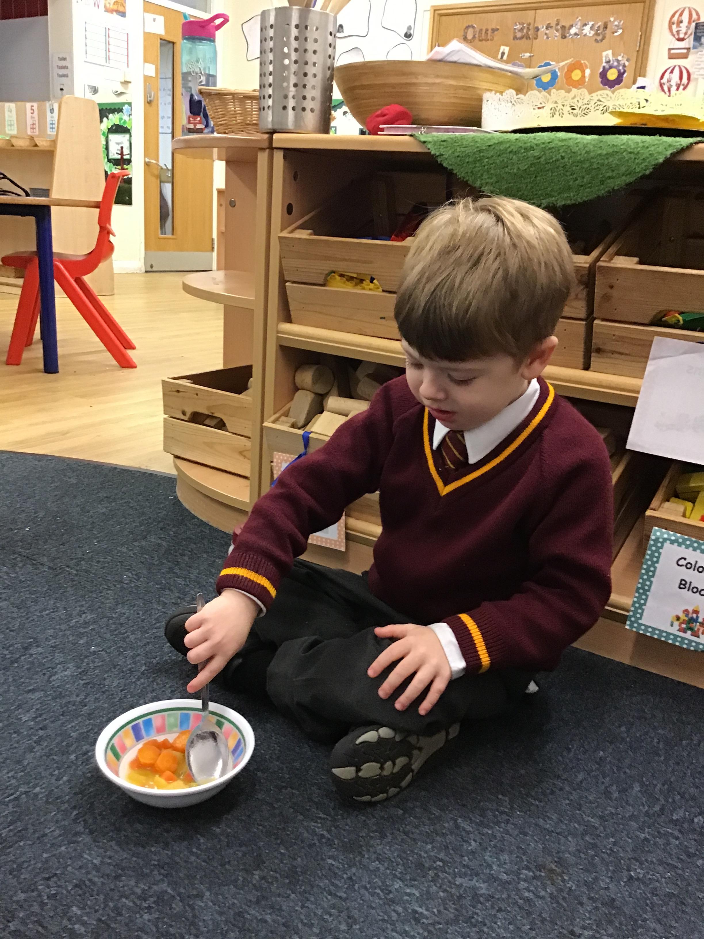 We have had fun learning about fruits and vegetables and making our own soup recipe.