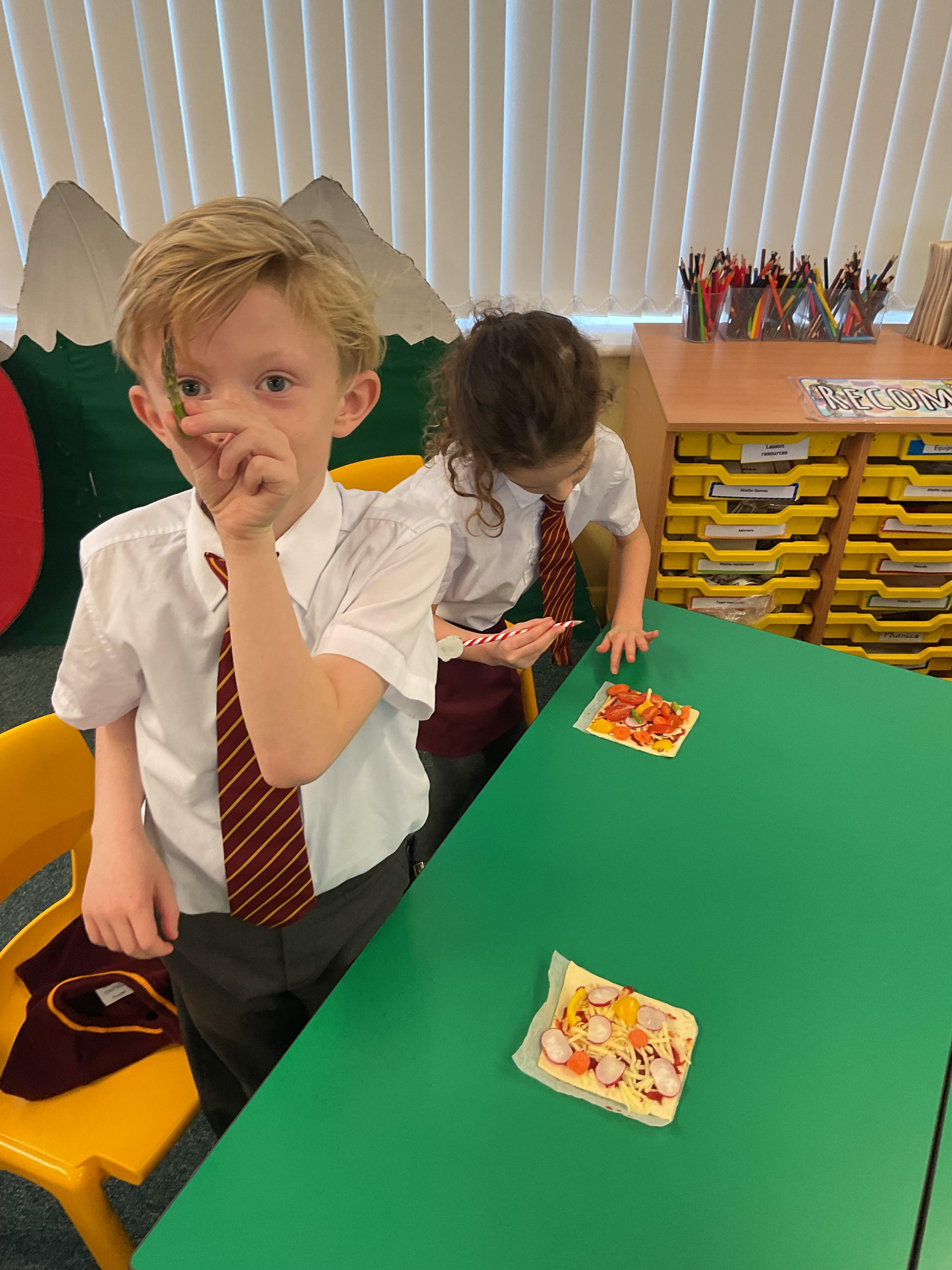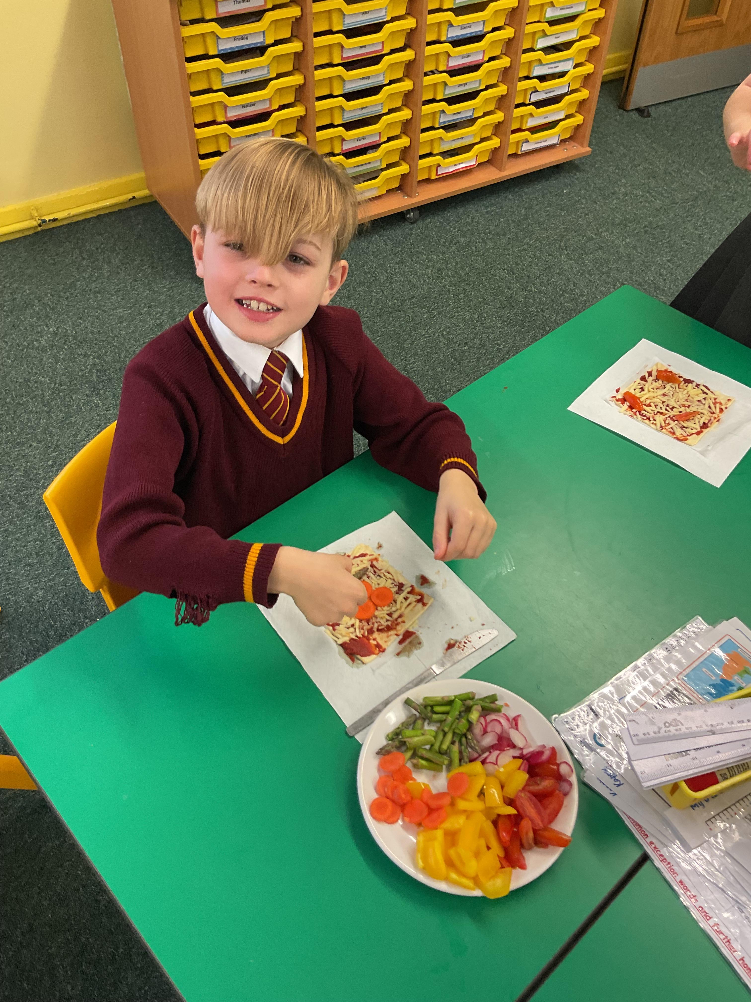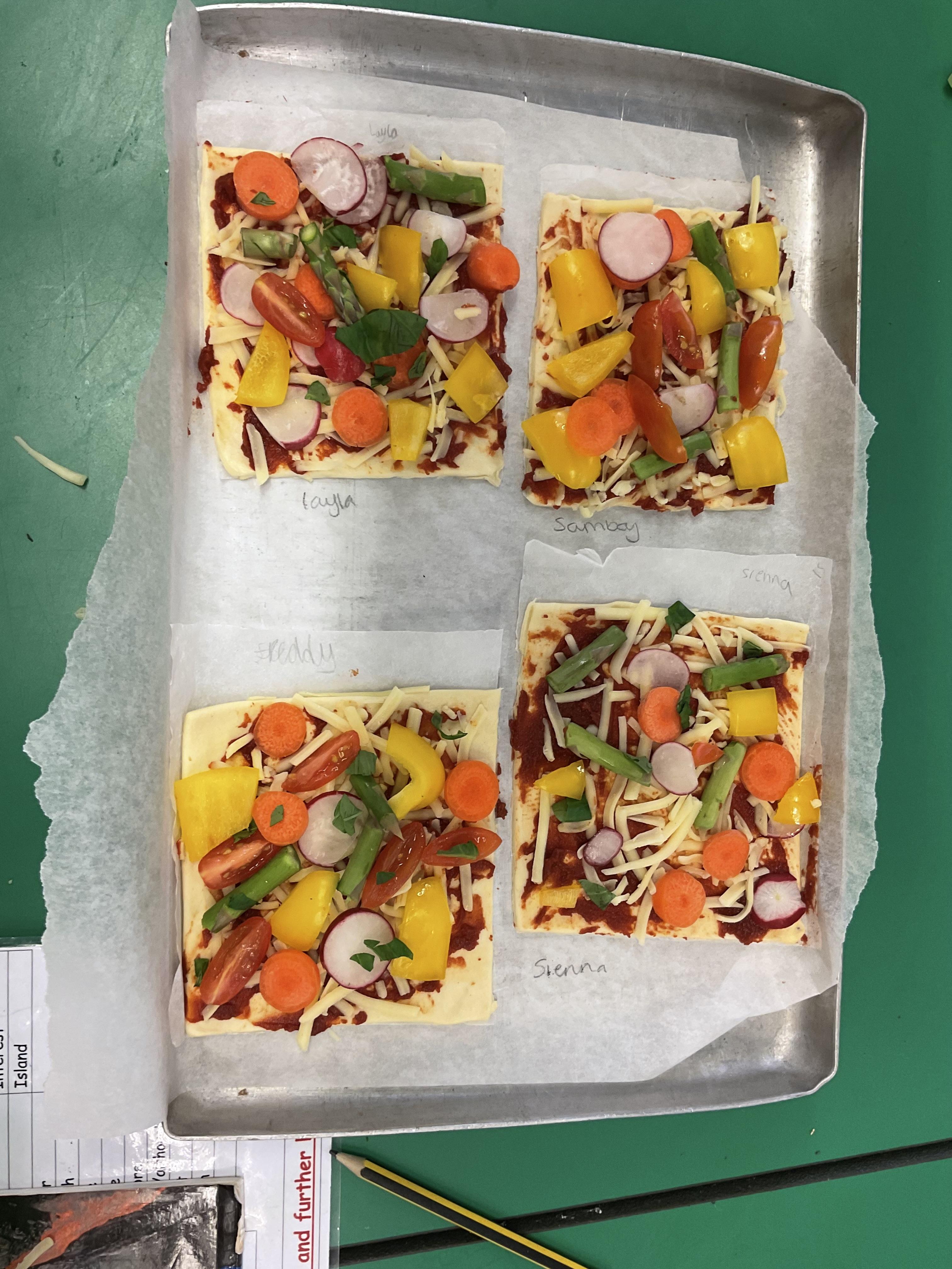 In DT Y3 have enjoyed making vegetable tarts. Before the children assembled and created their tarts, they enjoyed designing them. The children have used their chopping skills practiced previously, to create small tarts. We used a range of seasonal vegetables, for the taste and puff pastry for the base.