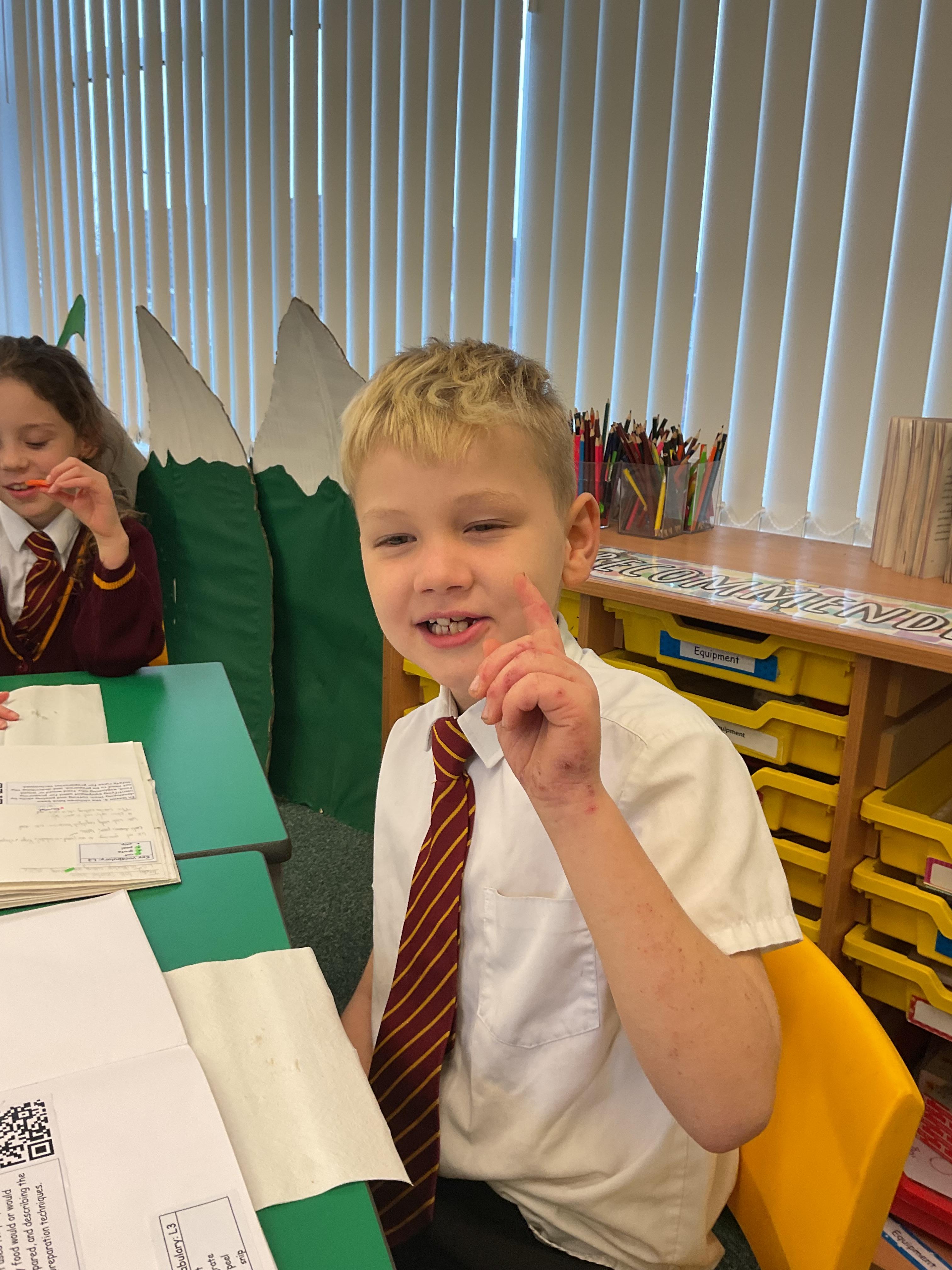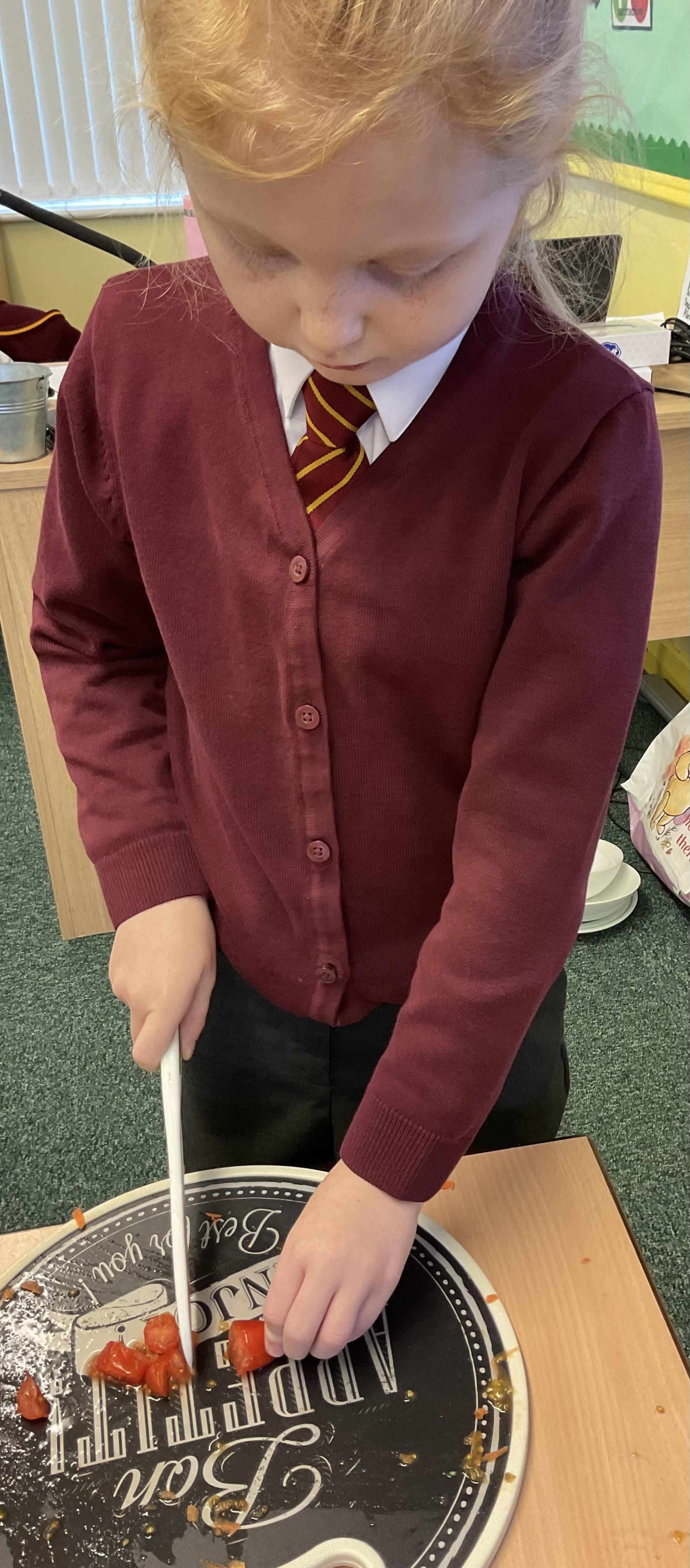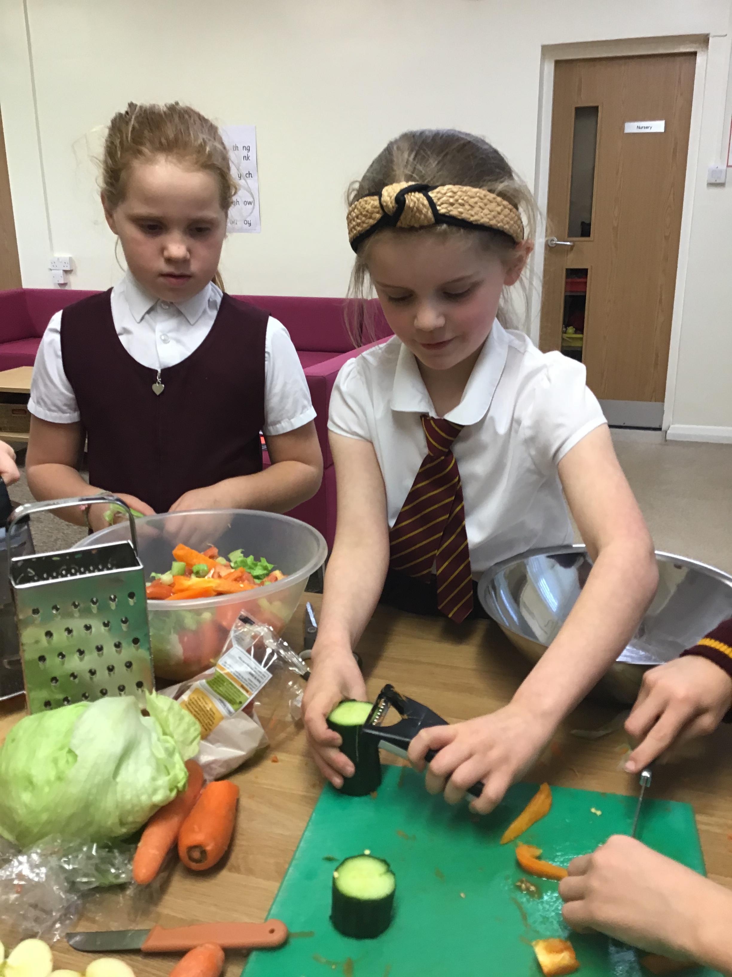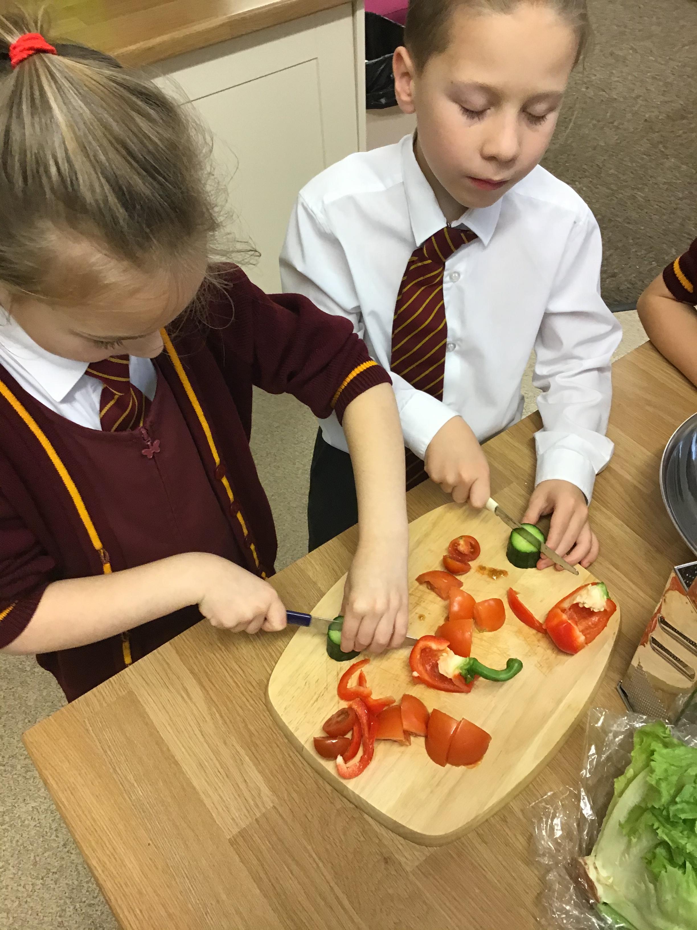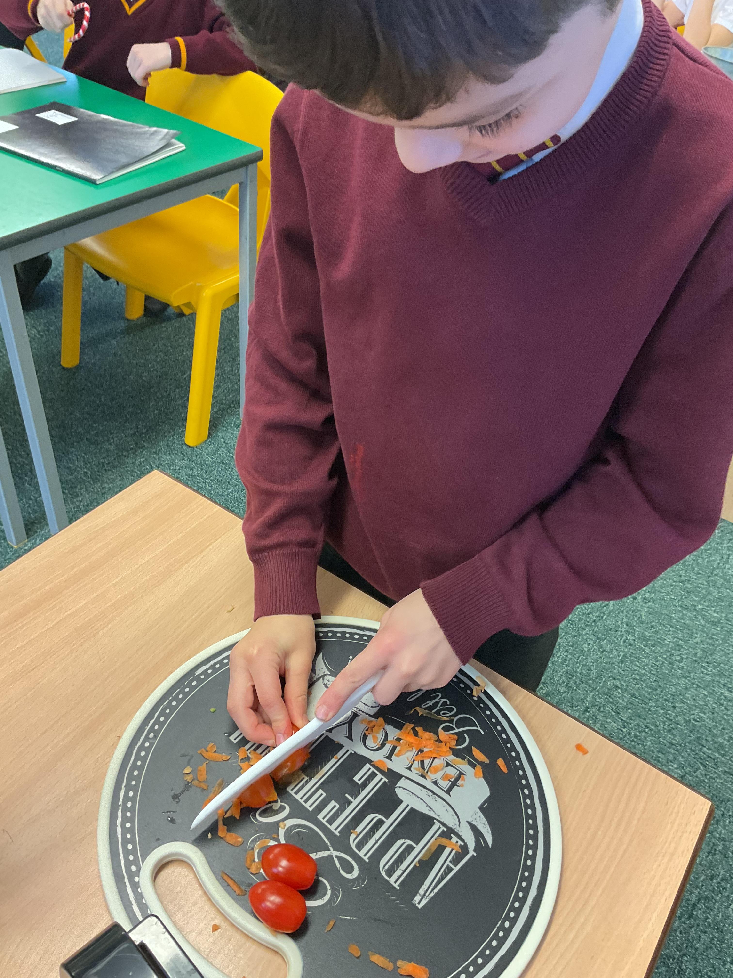 In Y3, we have been practicing our cutting and peeling skills, in preparation for making our vegetable tart. The children were careful and cautious when handling kitchen utensils and equipment. The children enjoyed using their bridge and claw grip to slice different varieties of vegetables. The children also practiced using different variations of peelers and graters, on some vegetables.