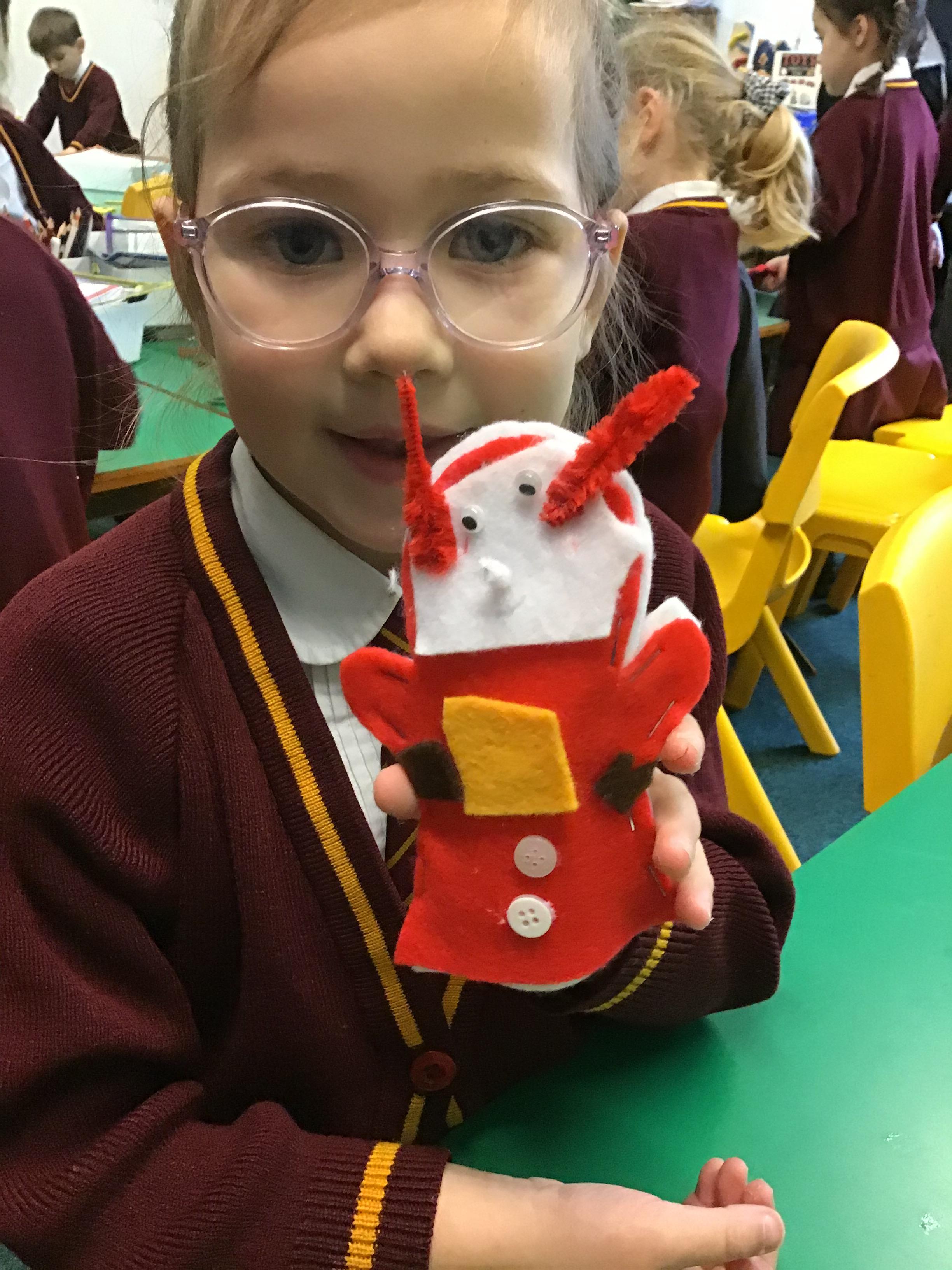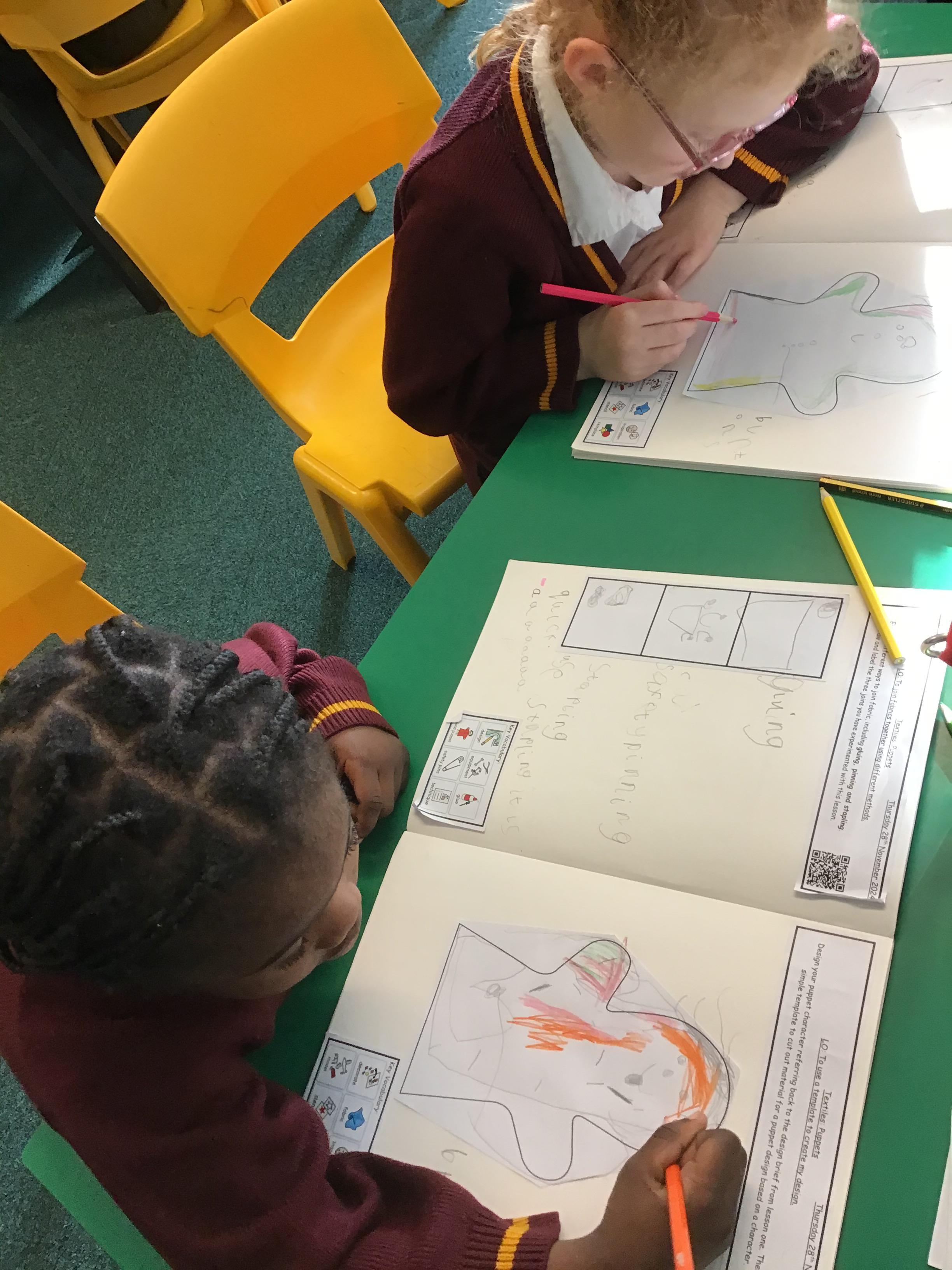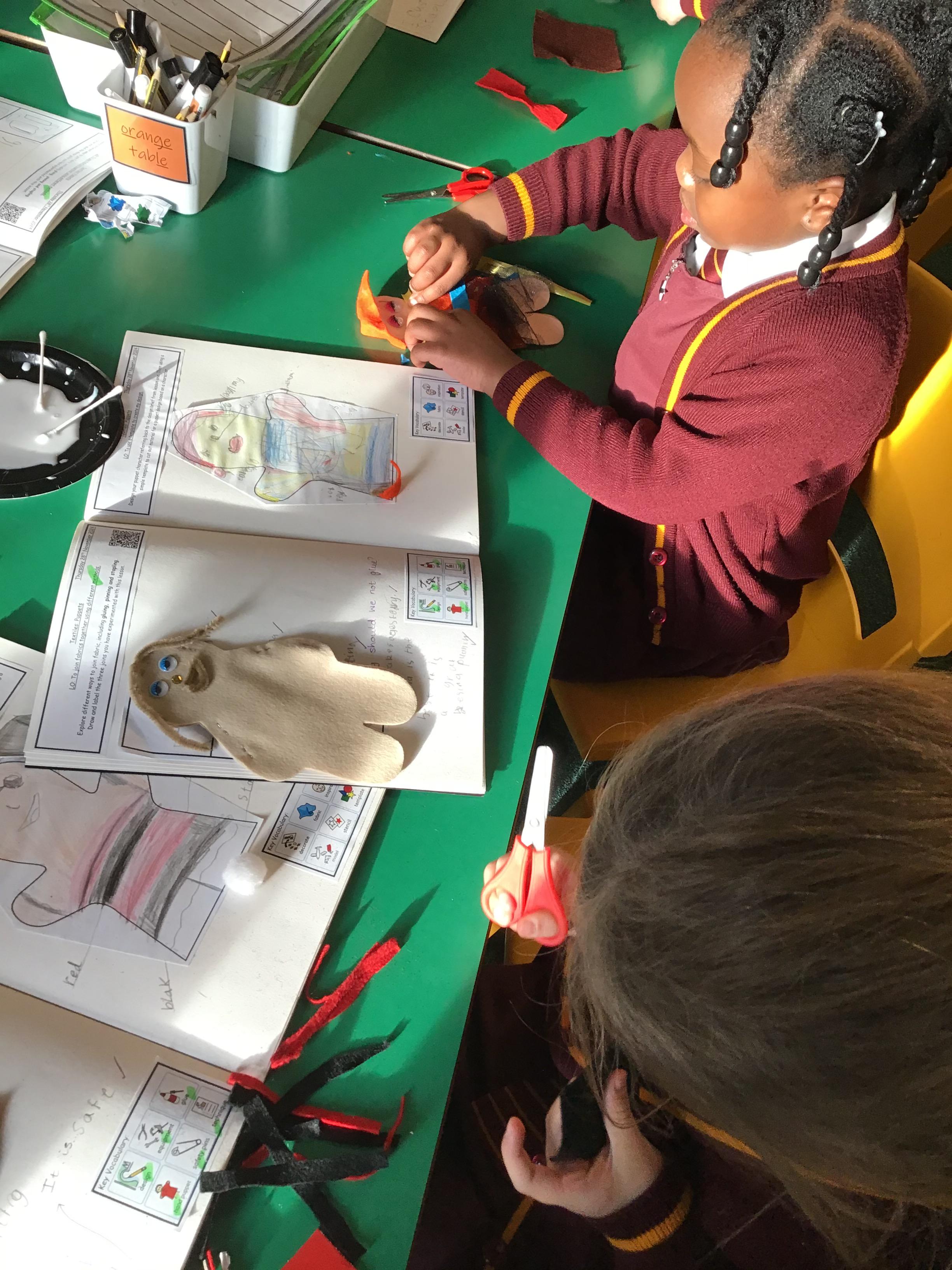 The children explored joining and decoration skills to create puppets.
