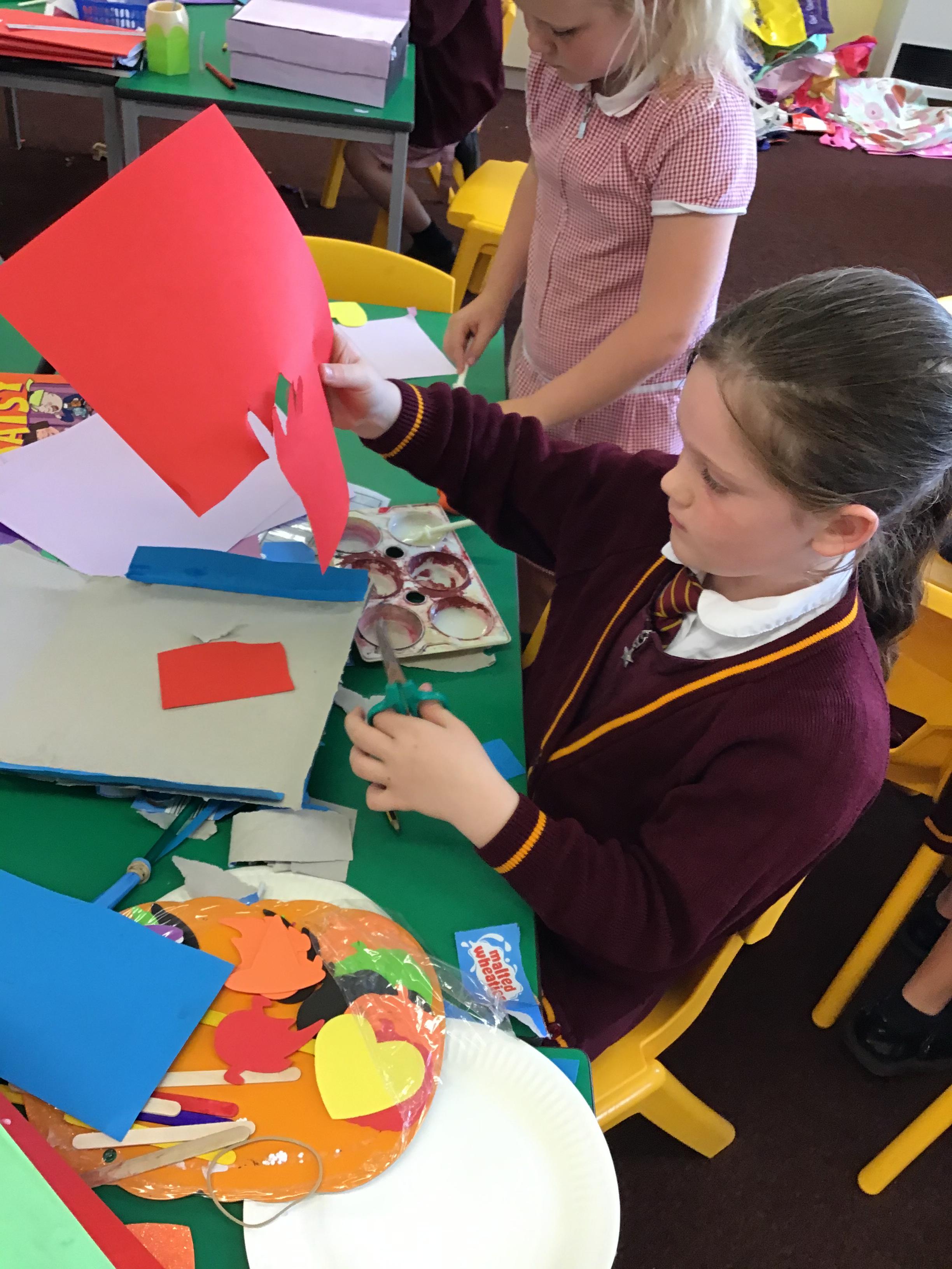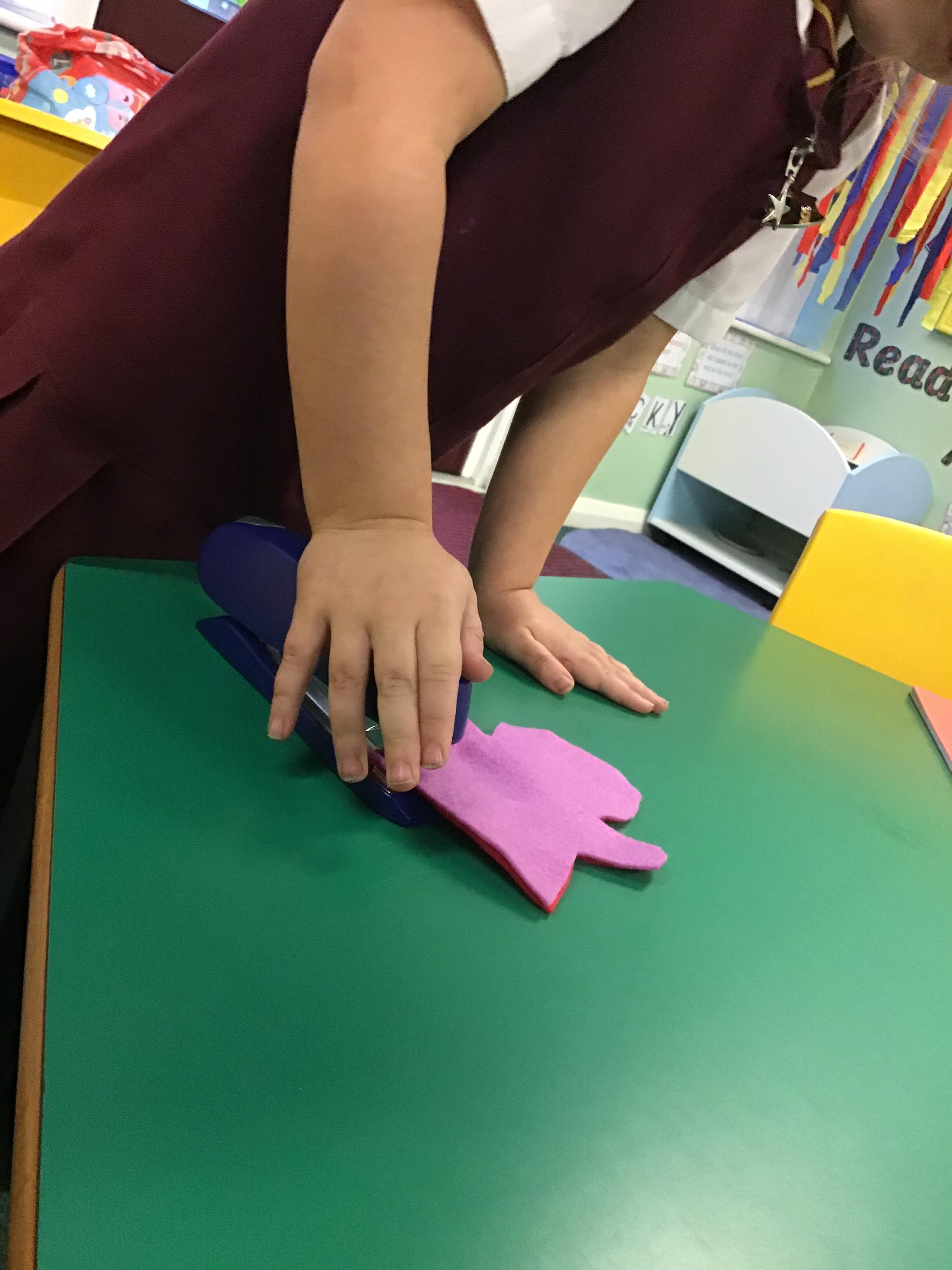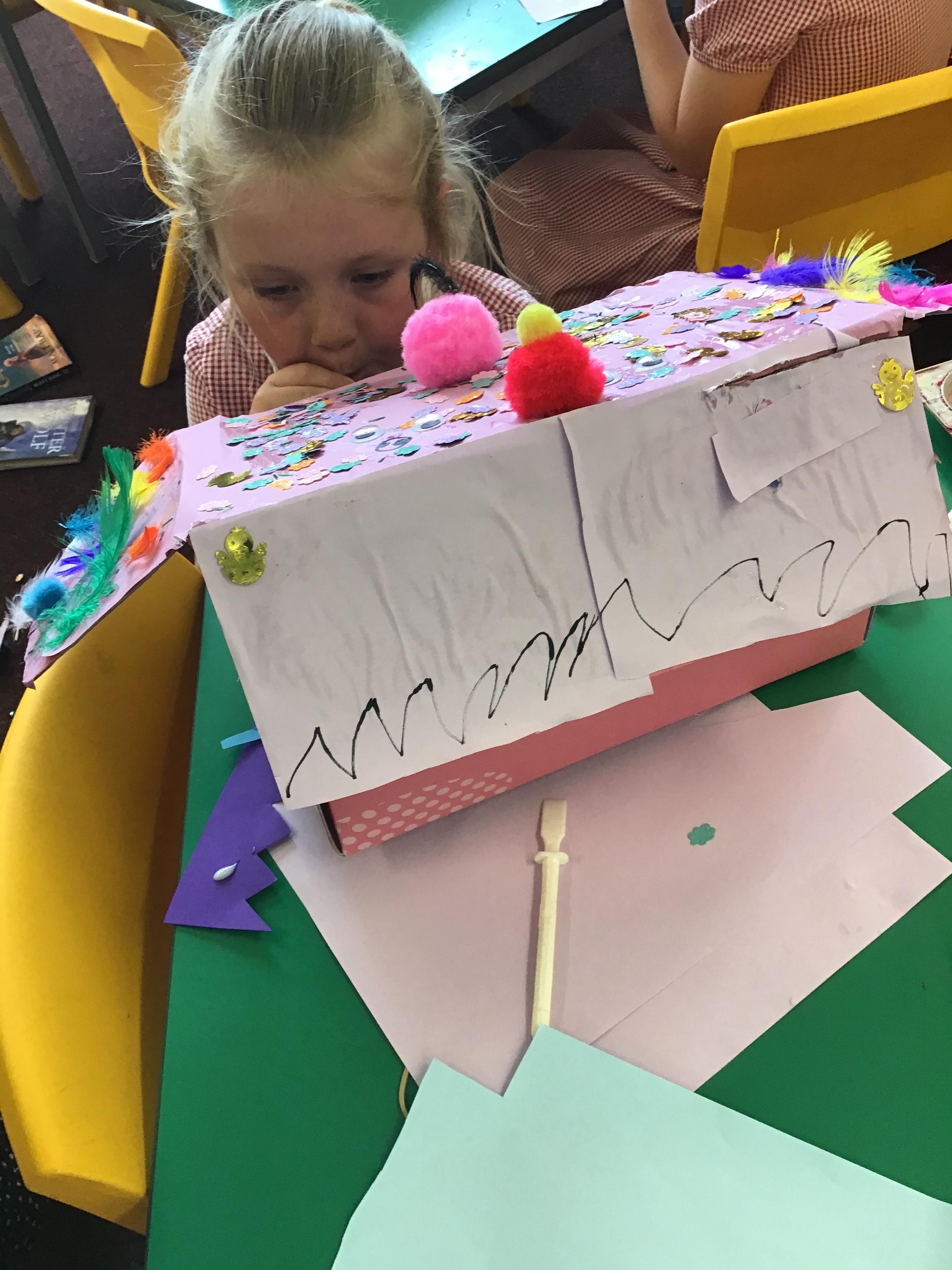 The children explored joining and decoration skills to create puppets.