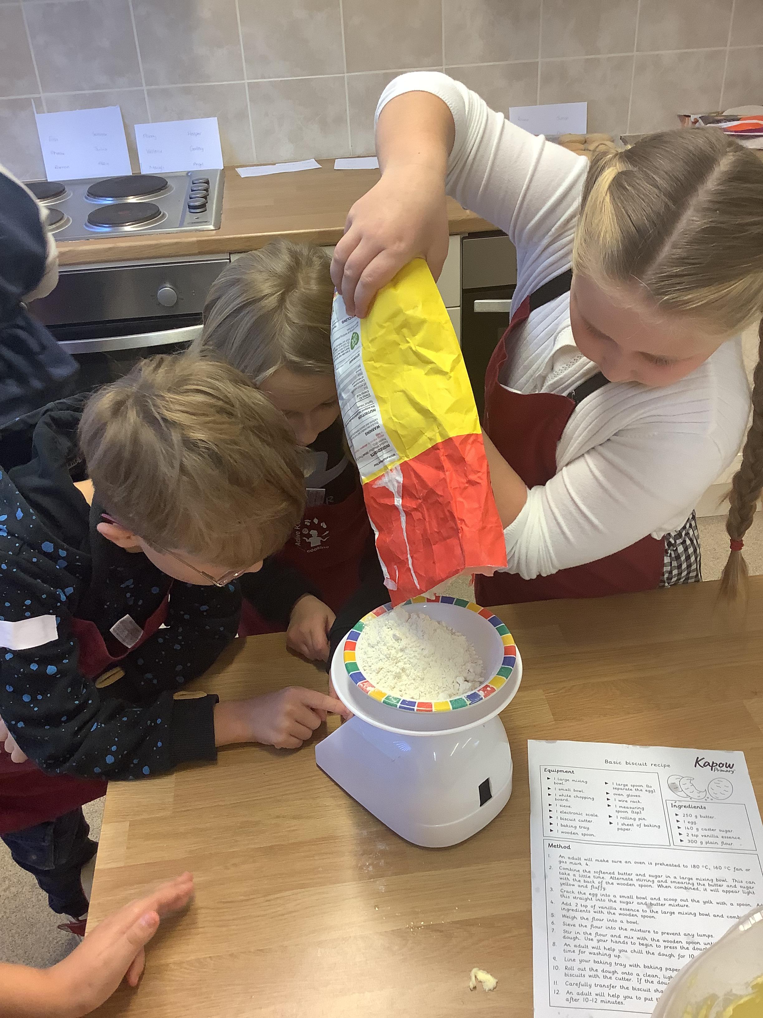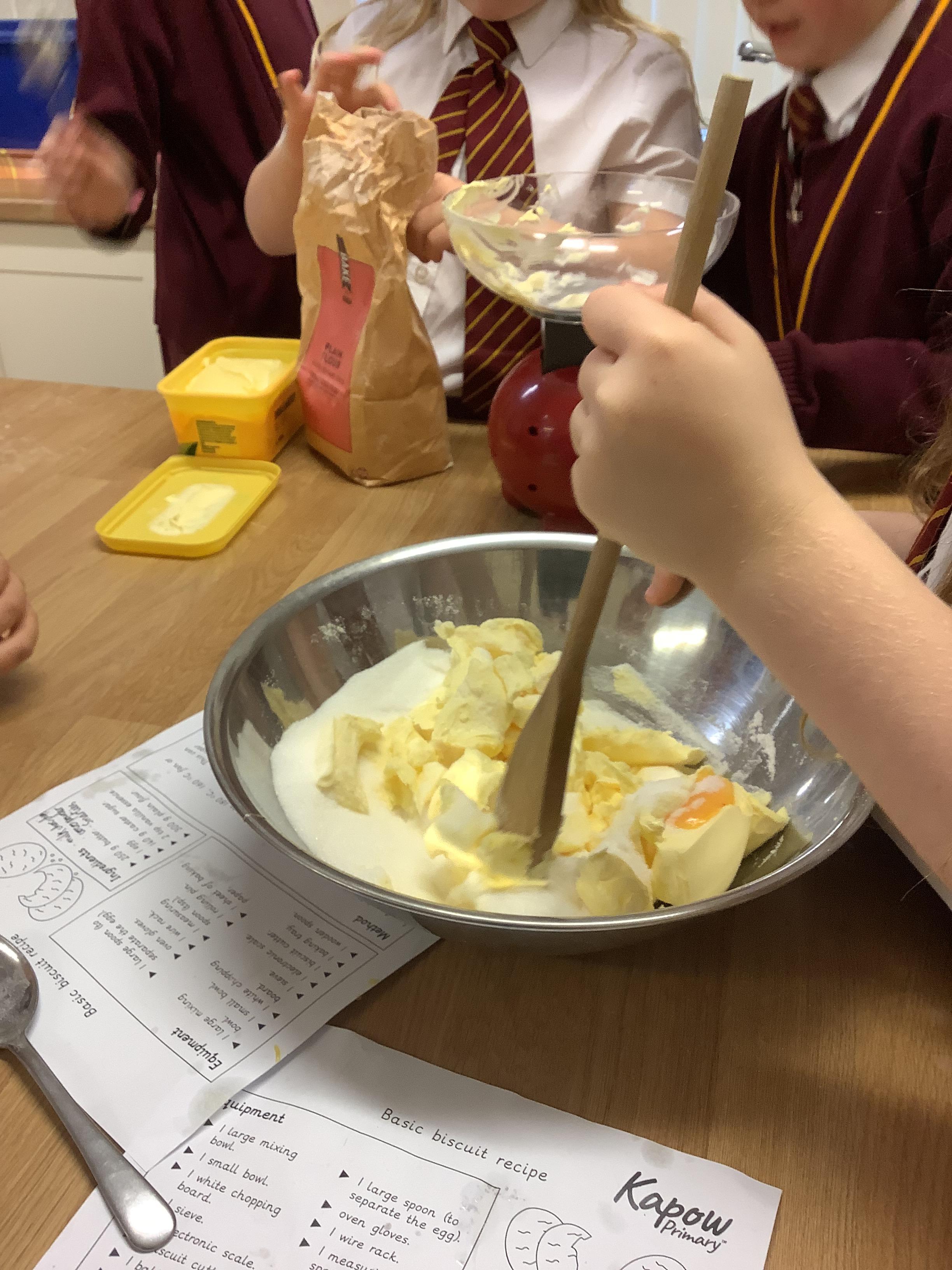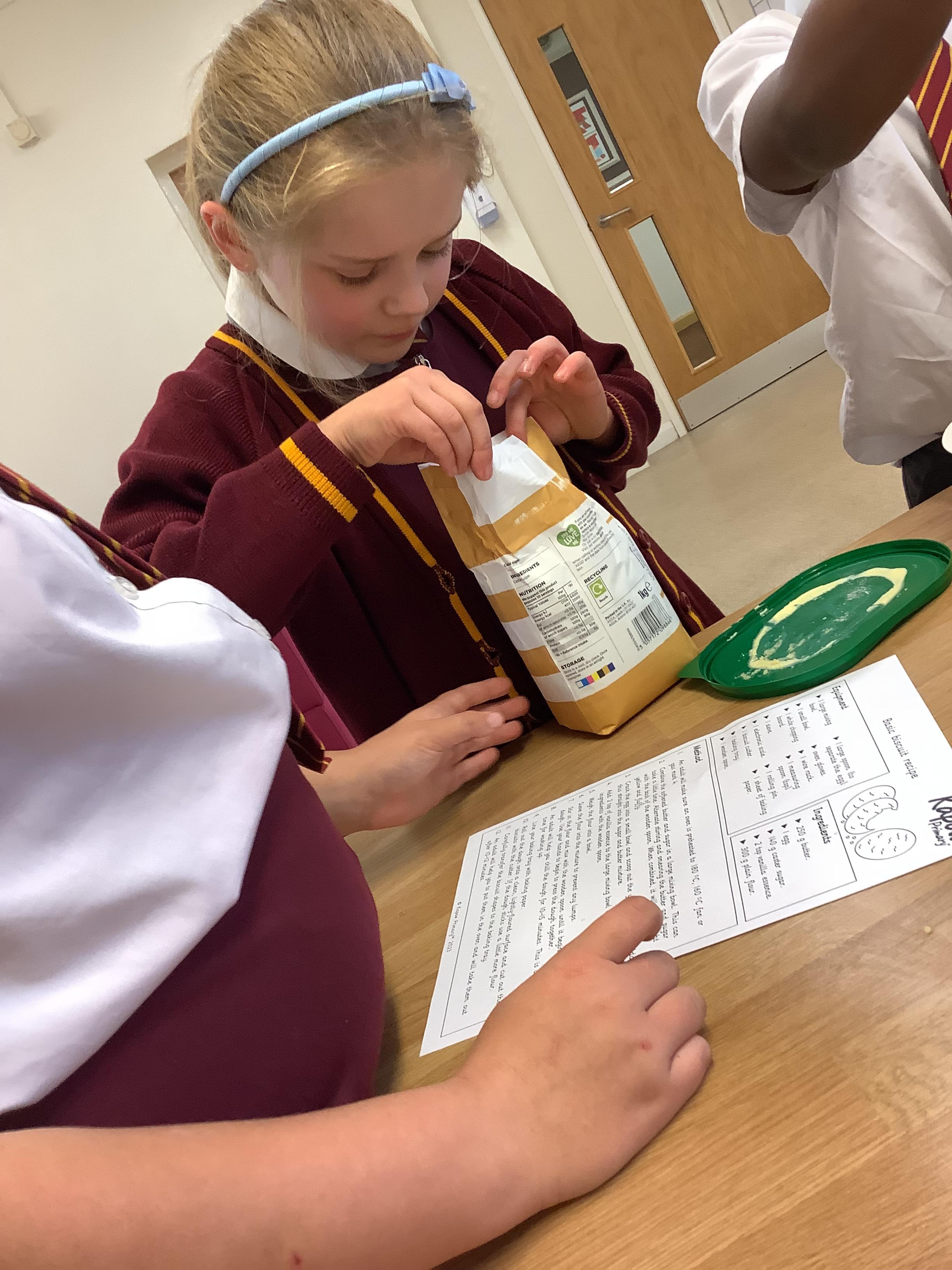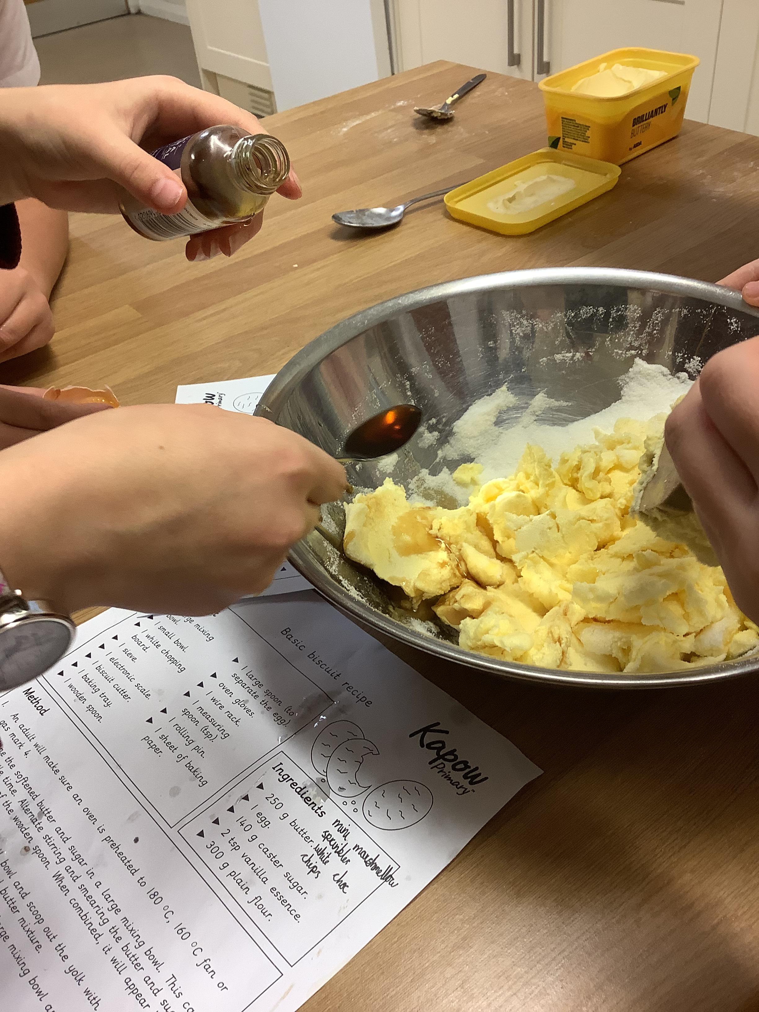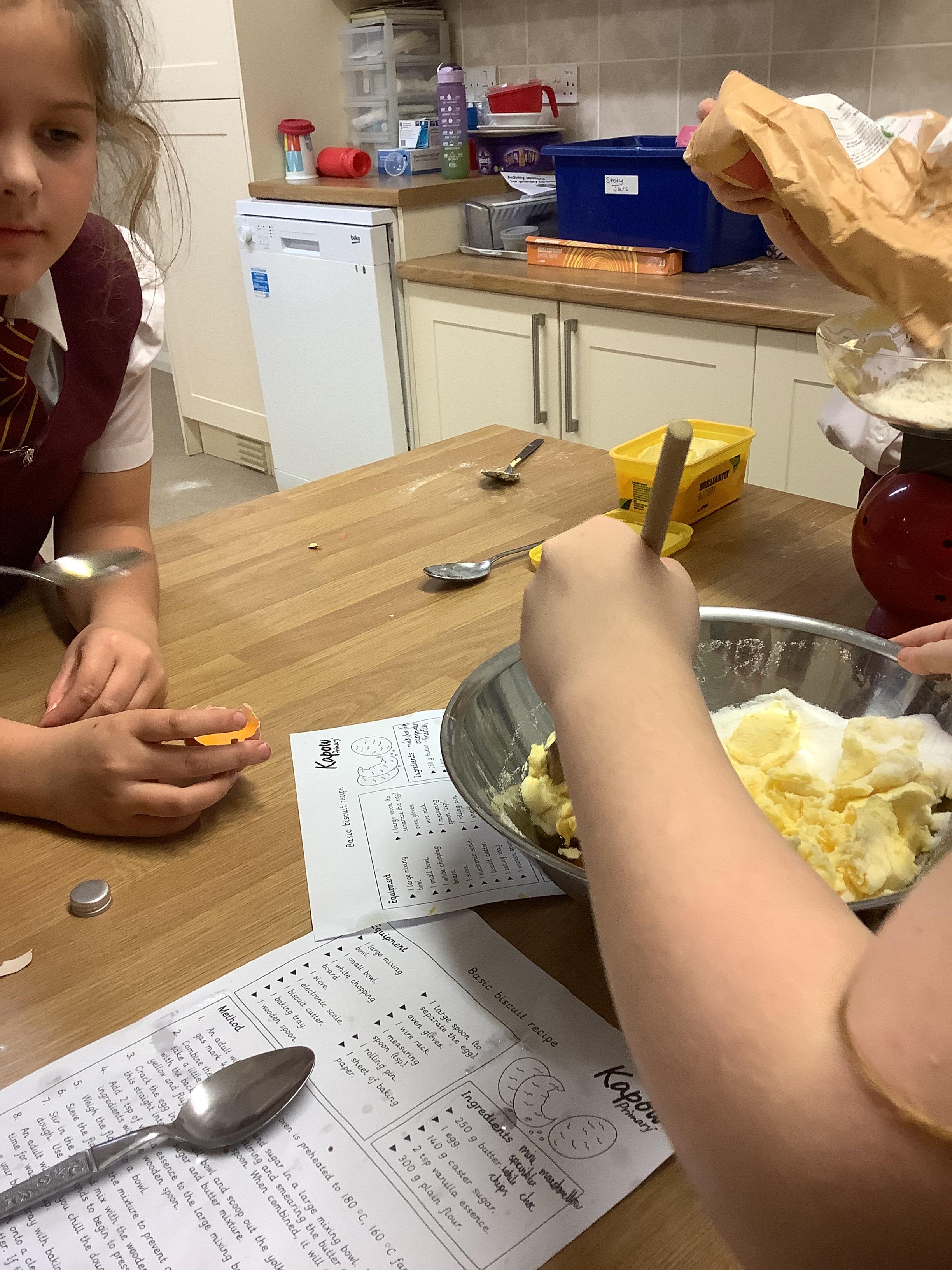 In DT, Year 4 have prepared and baked cookies. The children weighed out their ingredients and combined them to create cookies. Next, they will adapt this simple recipe to create their own cookie recipe.