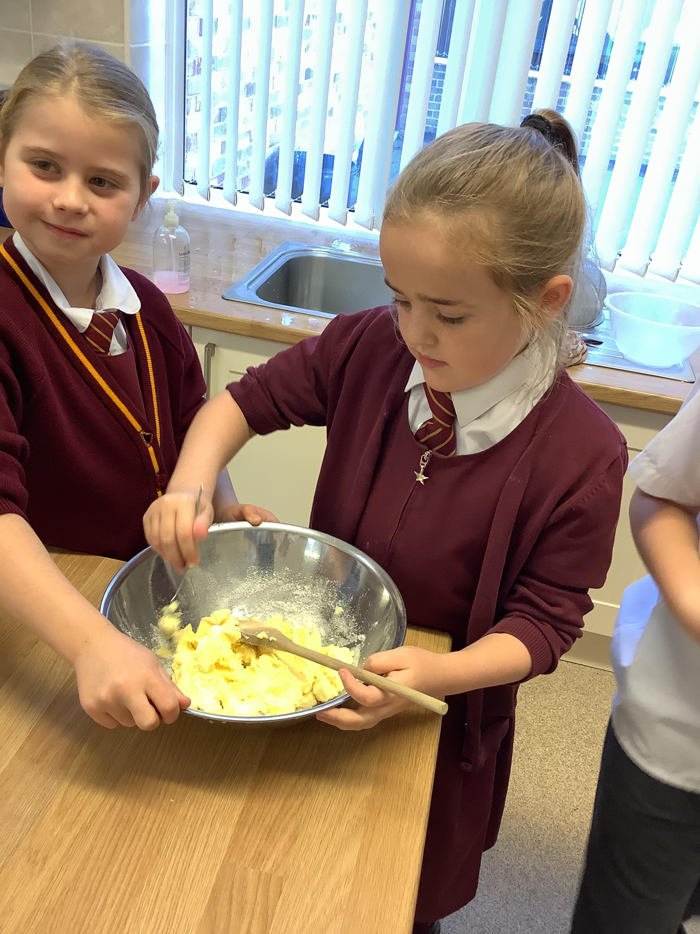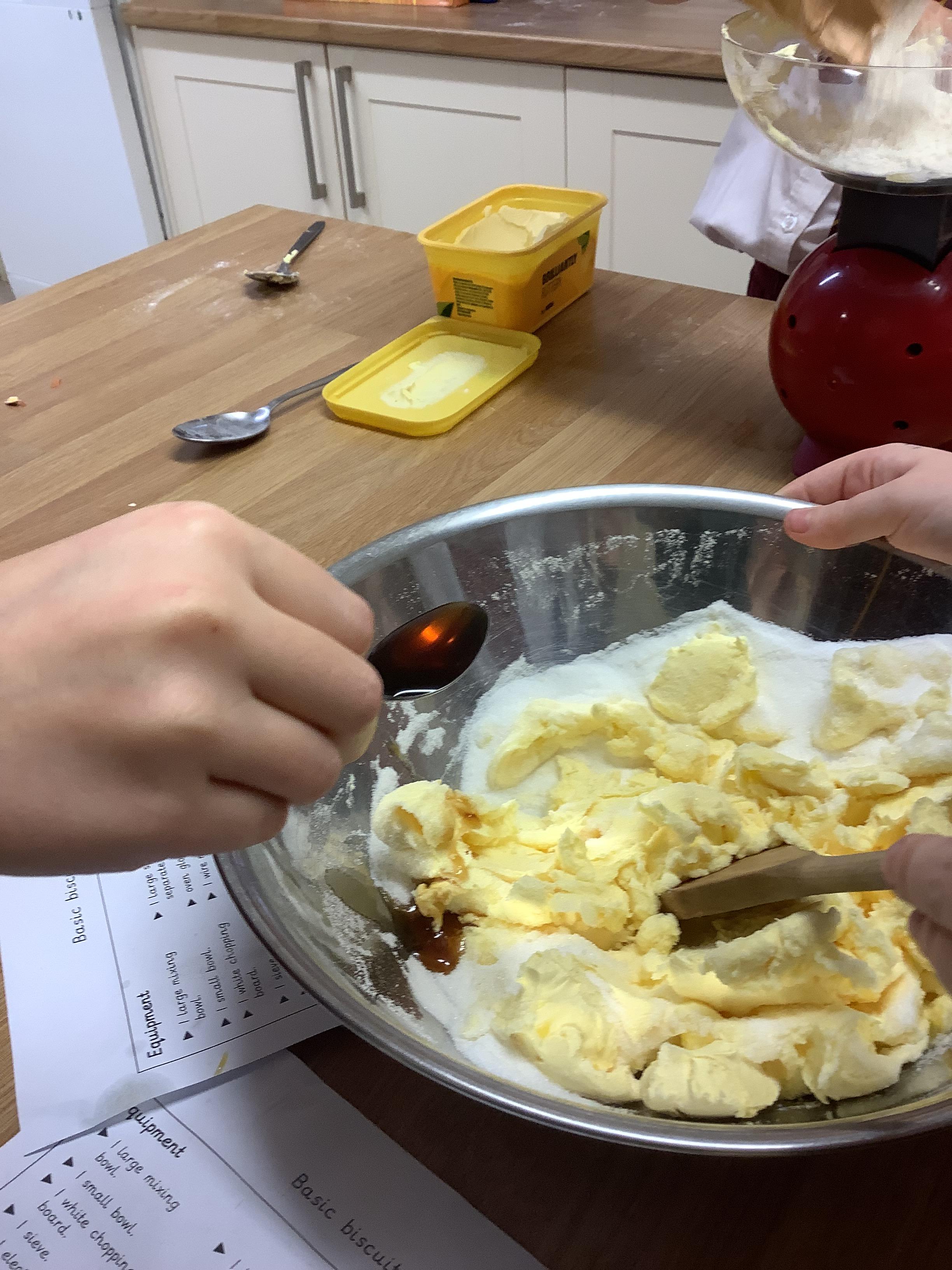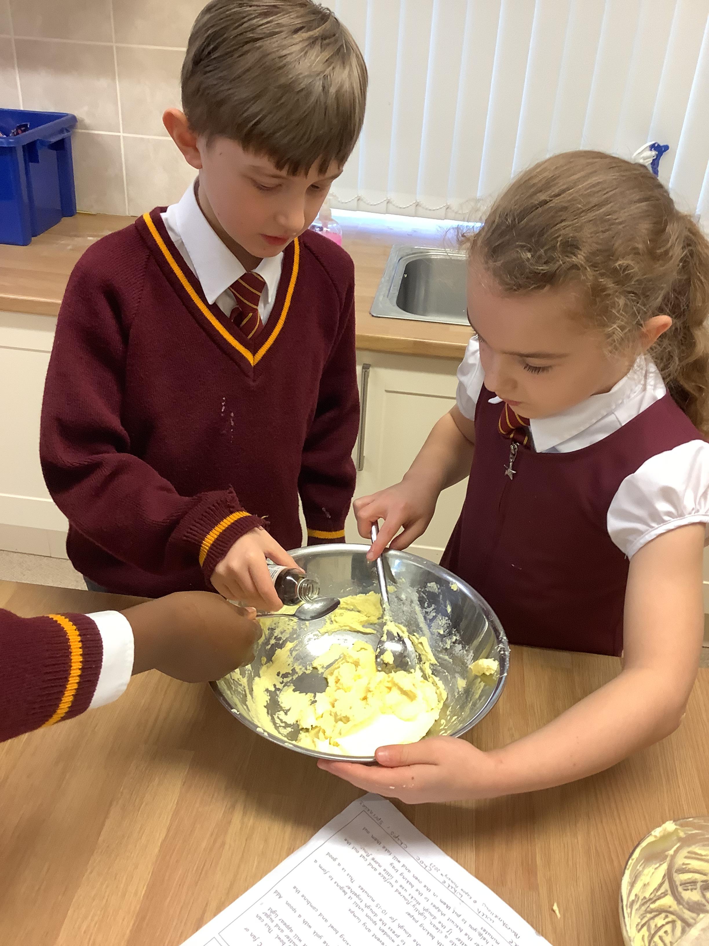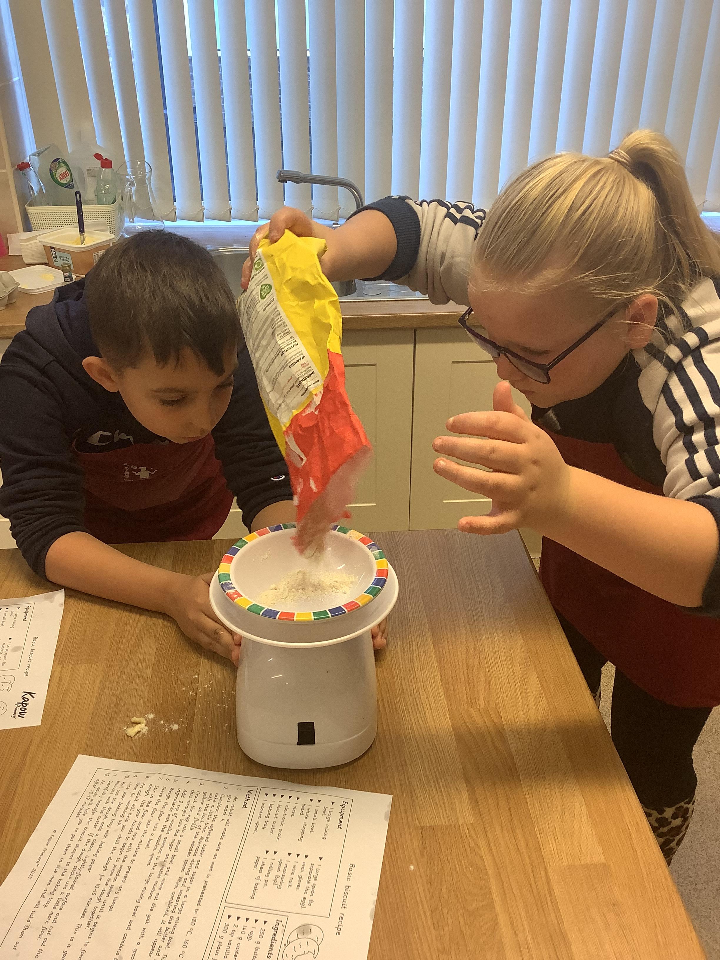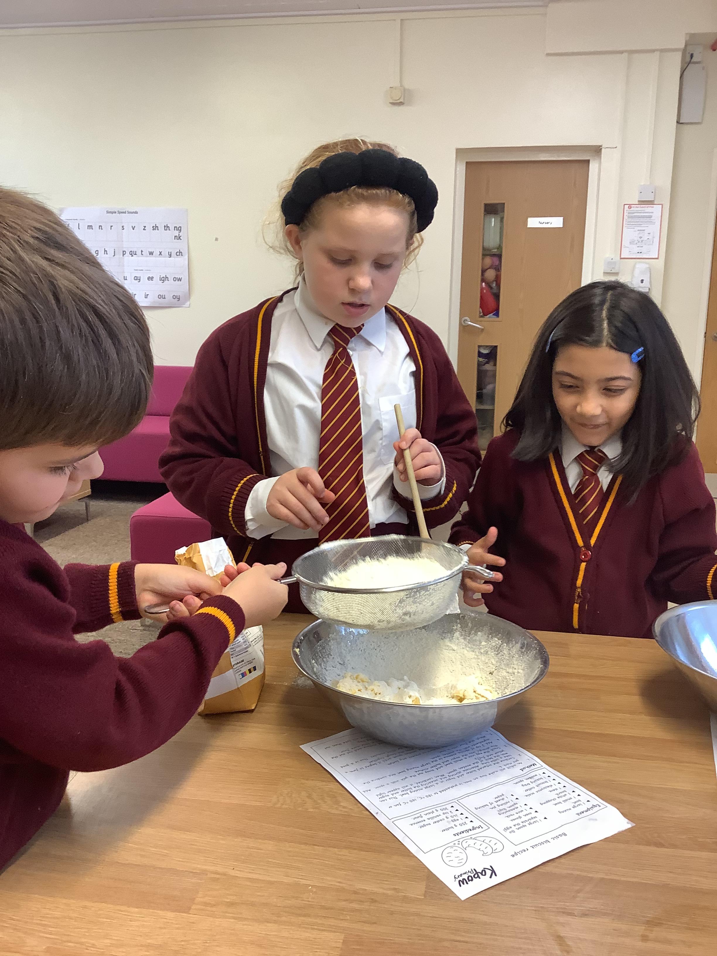 In DT, Year 4 have prepared and baked cookies. The children weighed out their ingredients and combined them to create cookies. Next, they will adapt this simple recipe to create their own cookie recipe.