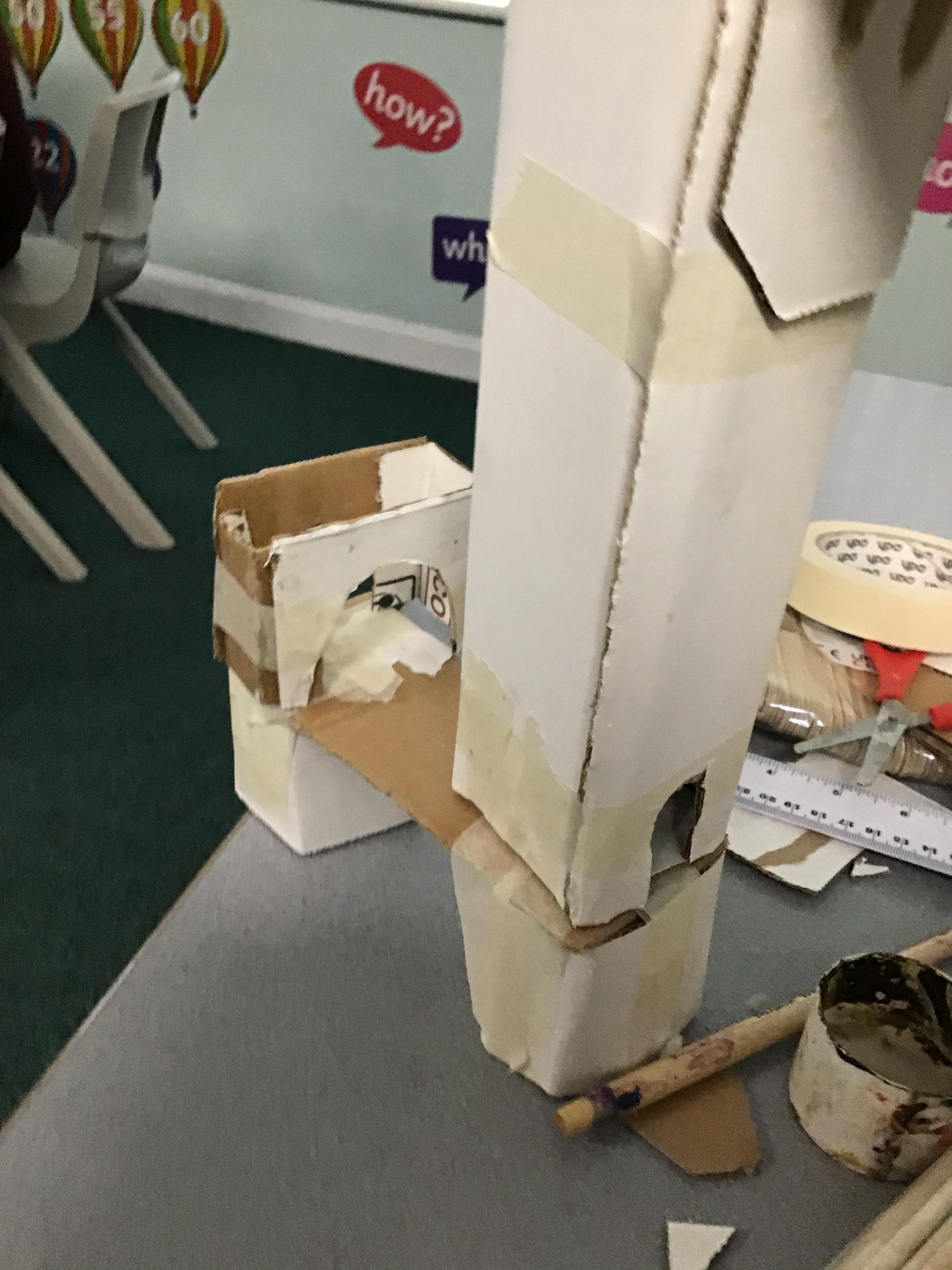 Children were provided with opportunities to work together t develop and create ideas. They discussed what they could make and in maths, they made a pictogram to decide on the colours to use. Children were given a range of materials for them to construct with. They also applied their joining techniques using different adhesive tape and sorts of glue.