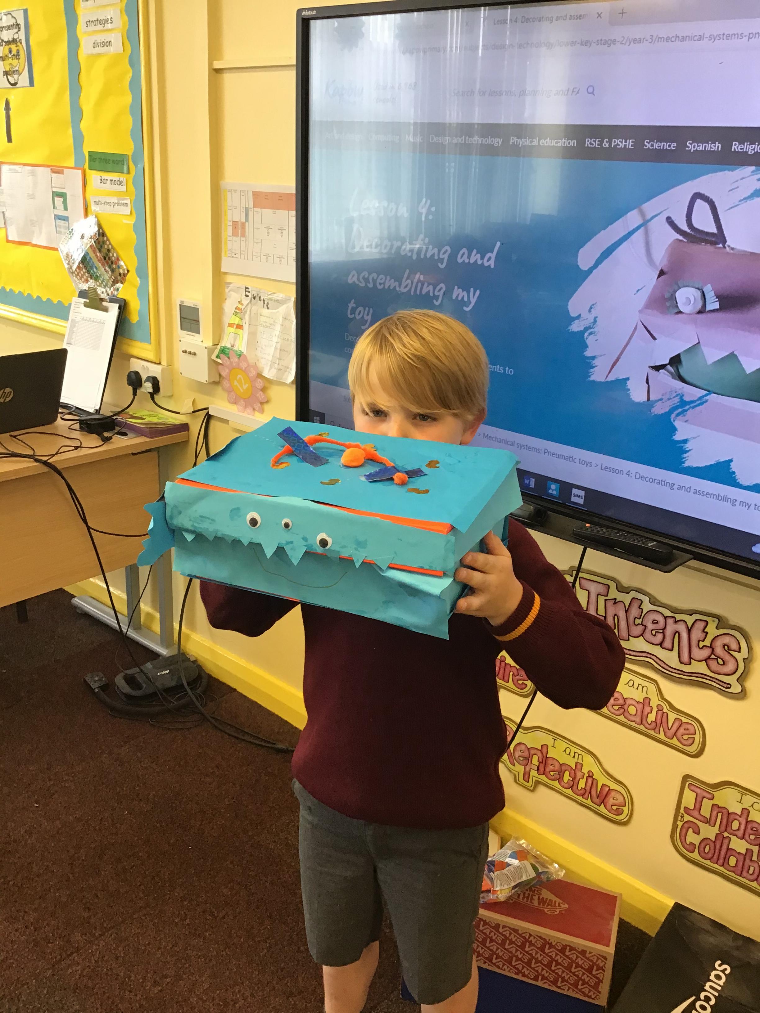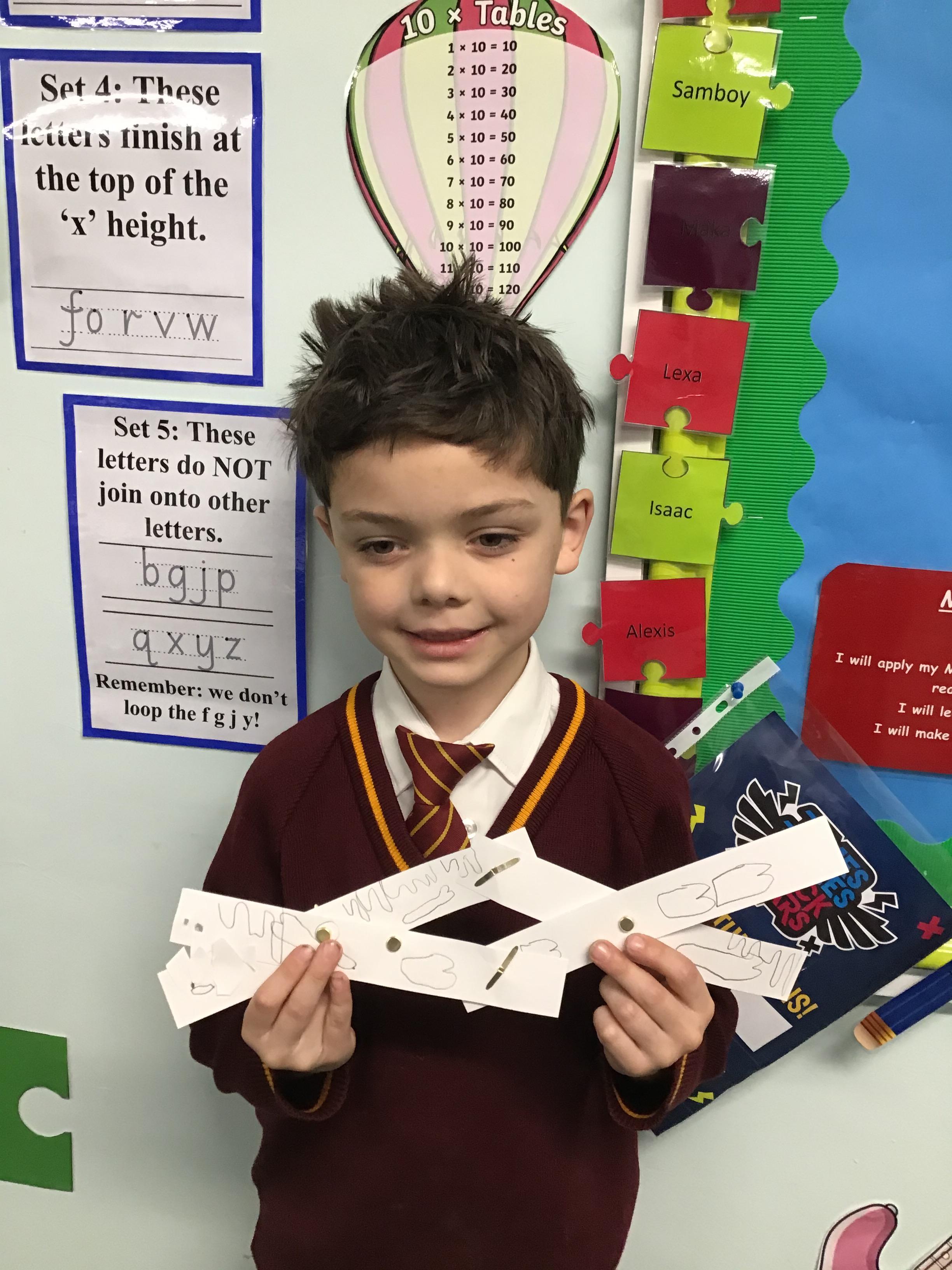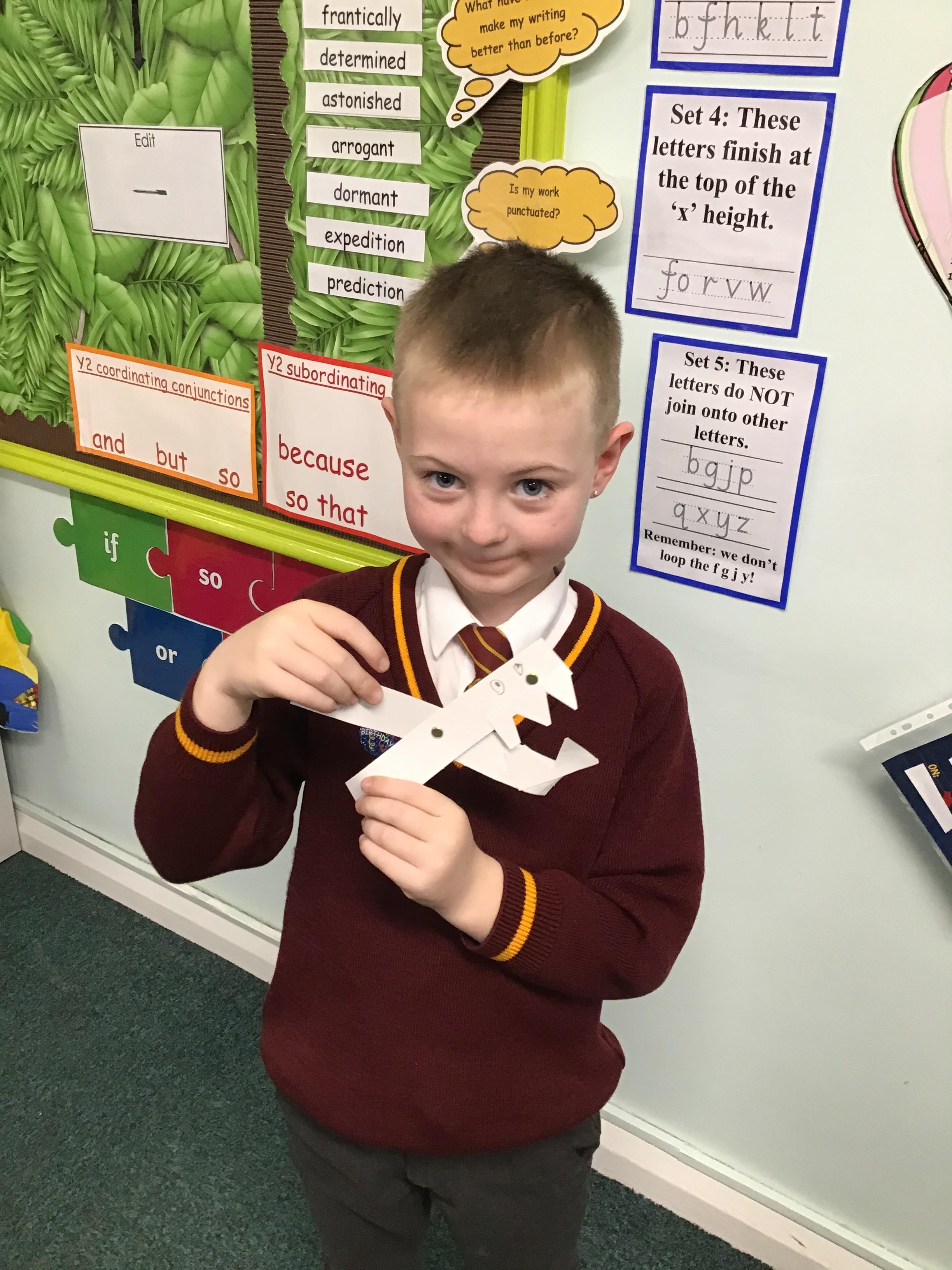 Y2 enjoyed learning about linkages and movement. They designed their own monsters and then adapted them to ensure they were fit for purpose and suited the design brief. Well done Year 2!