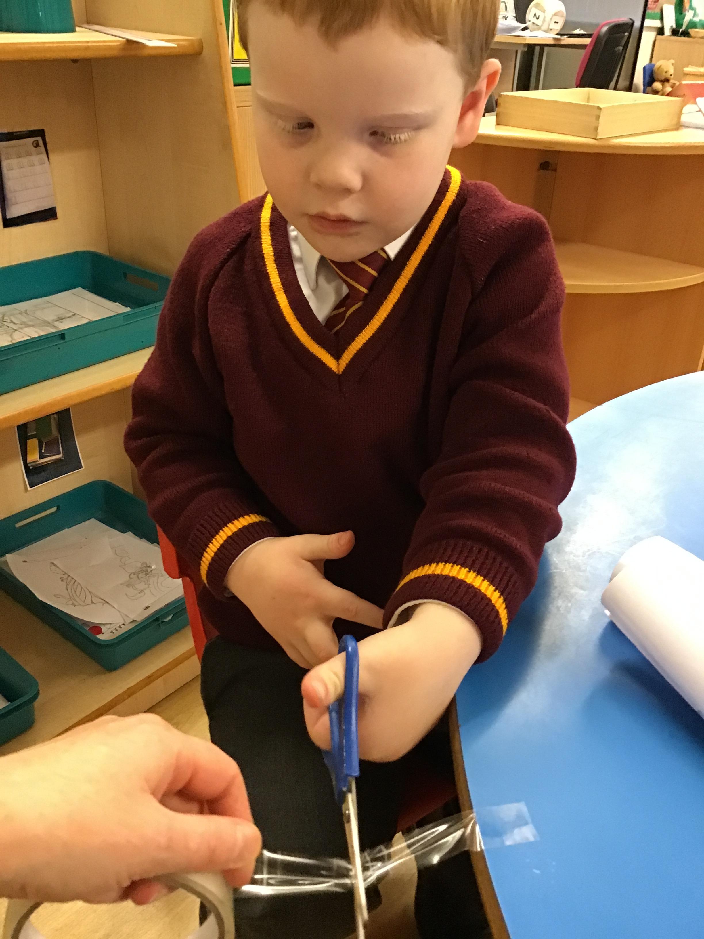 The nursery children have been busy exploring the junk modelling area, learning different ways to join materials together. They have also been practising cutting a variety of materials and particularly enjoyed cutting pasta. Through these activities, the children have been learning how to safely hold and use scissors, building their confidence and fine motor skills.