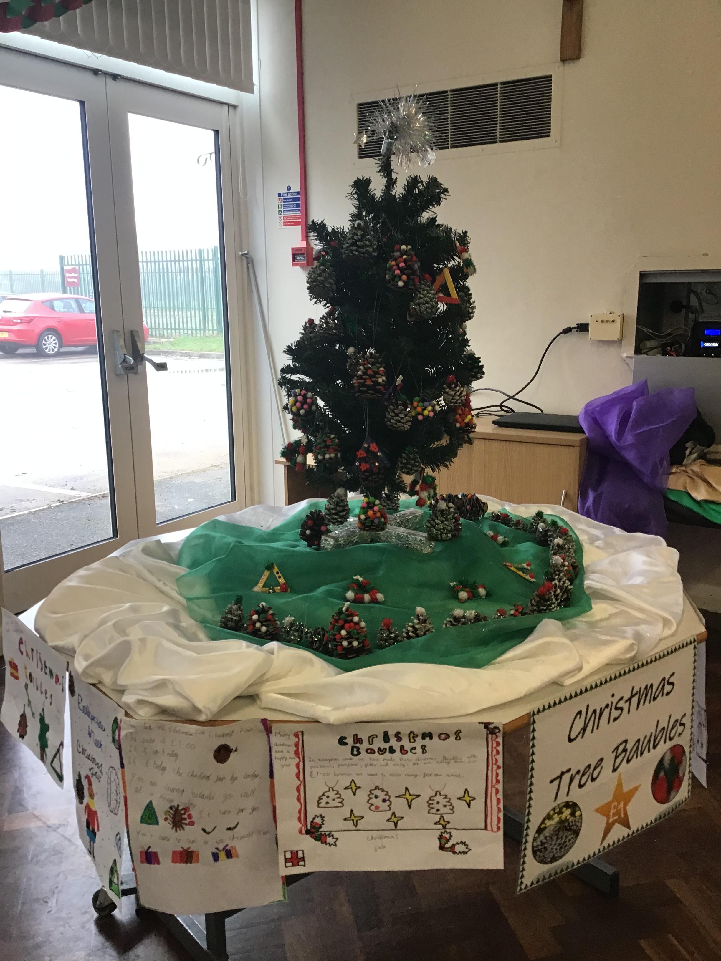 Following that we then had to decide how to present the baubles in an 'eye-catching' way, so we presented them on a Christmas tree! During the week we also created posters to advertise and adapted our designs based on the criteria for our potential buyers!