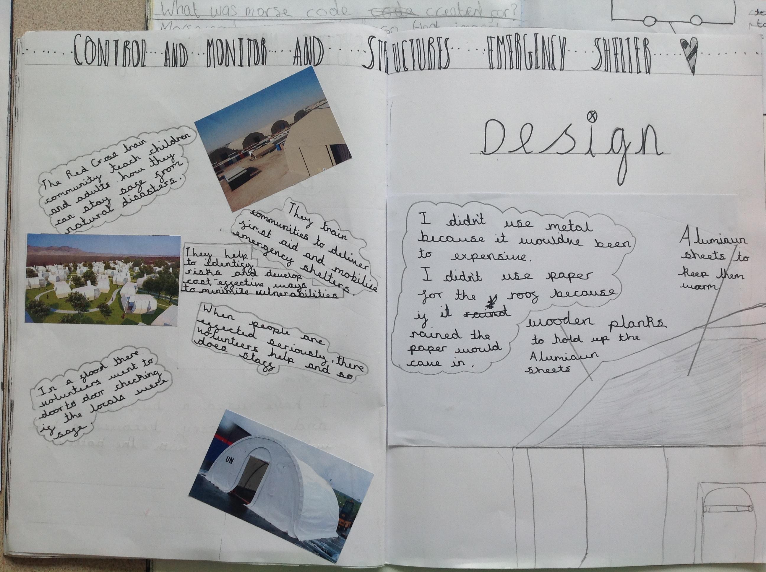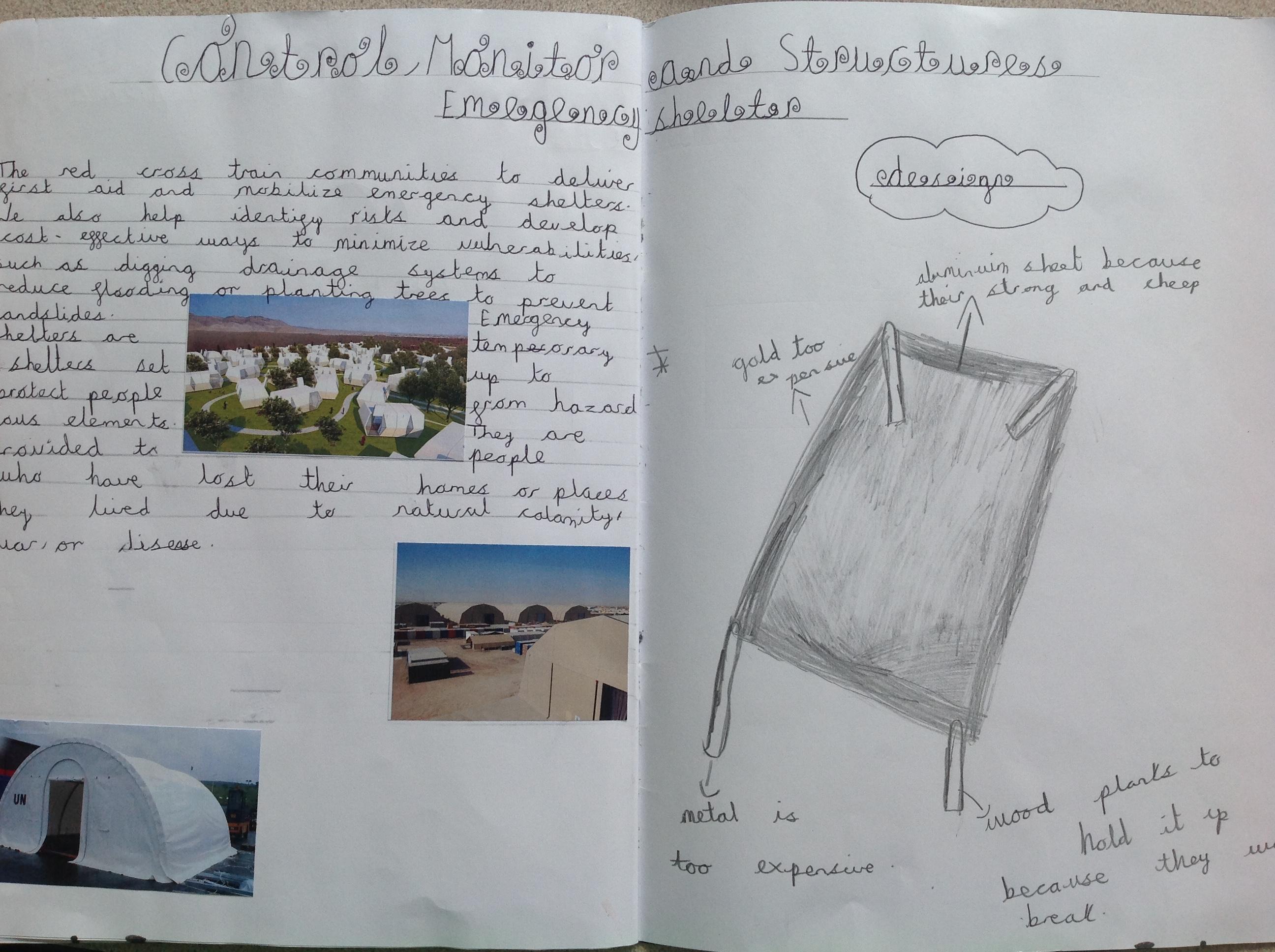 Year 6 researched different designs that emergency services use for emergency shelters. The children then designed their own and made them using wood, screws, nails, saws and wood glue...