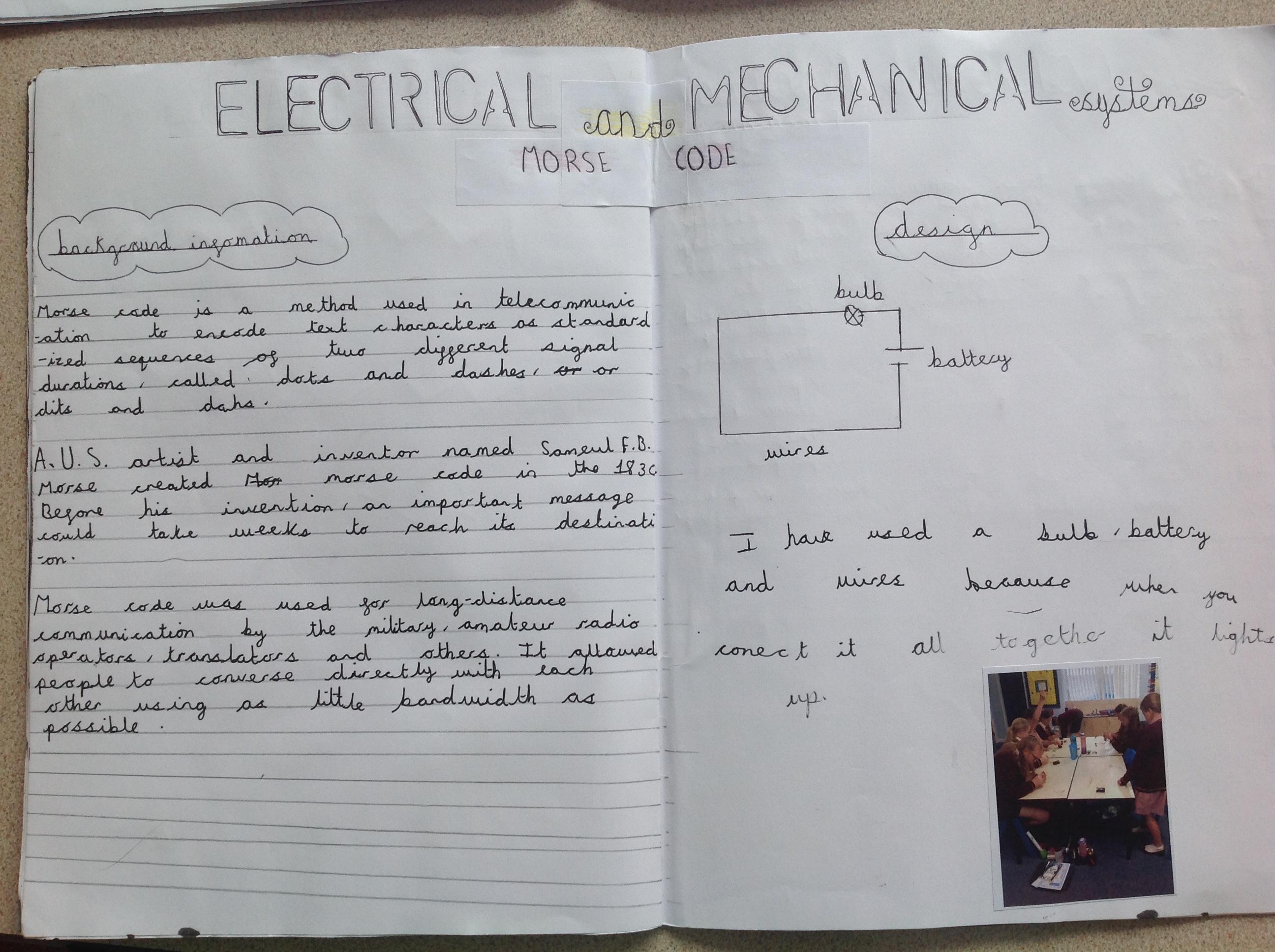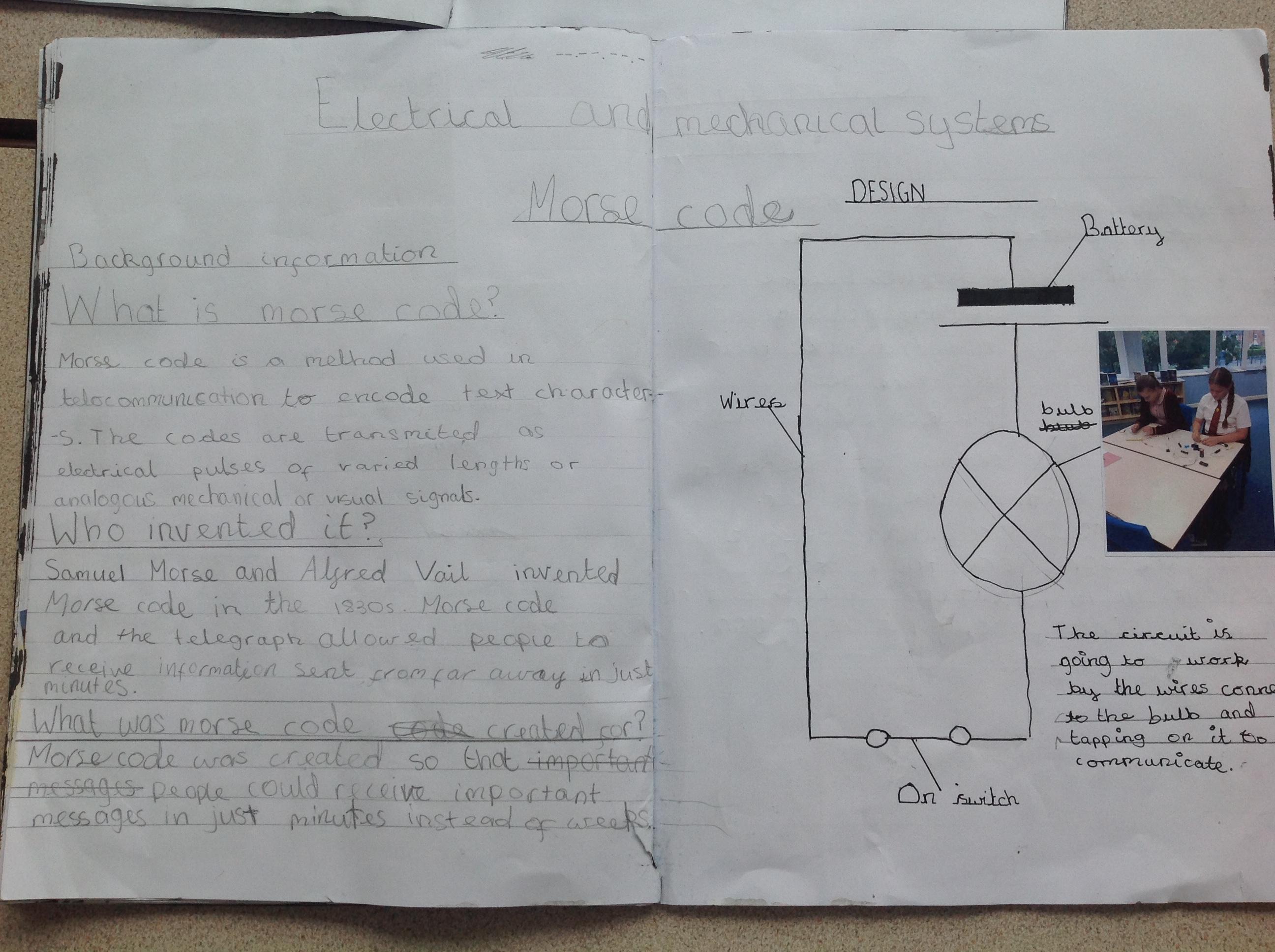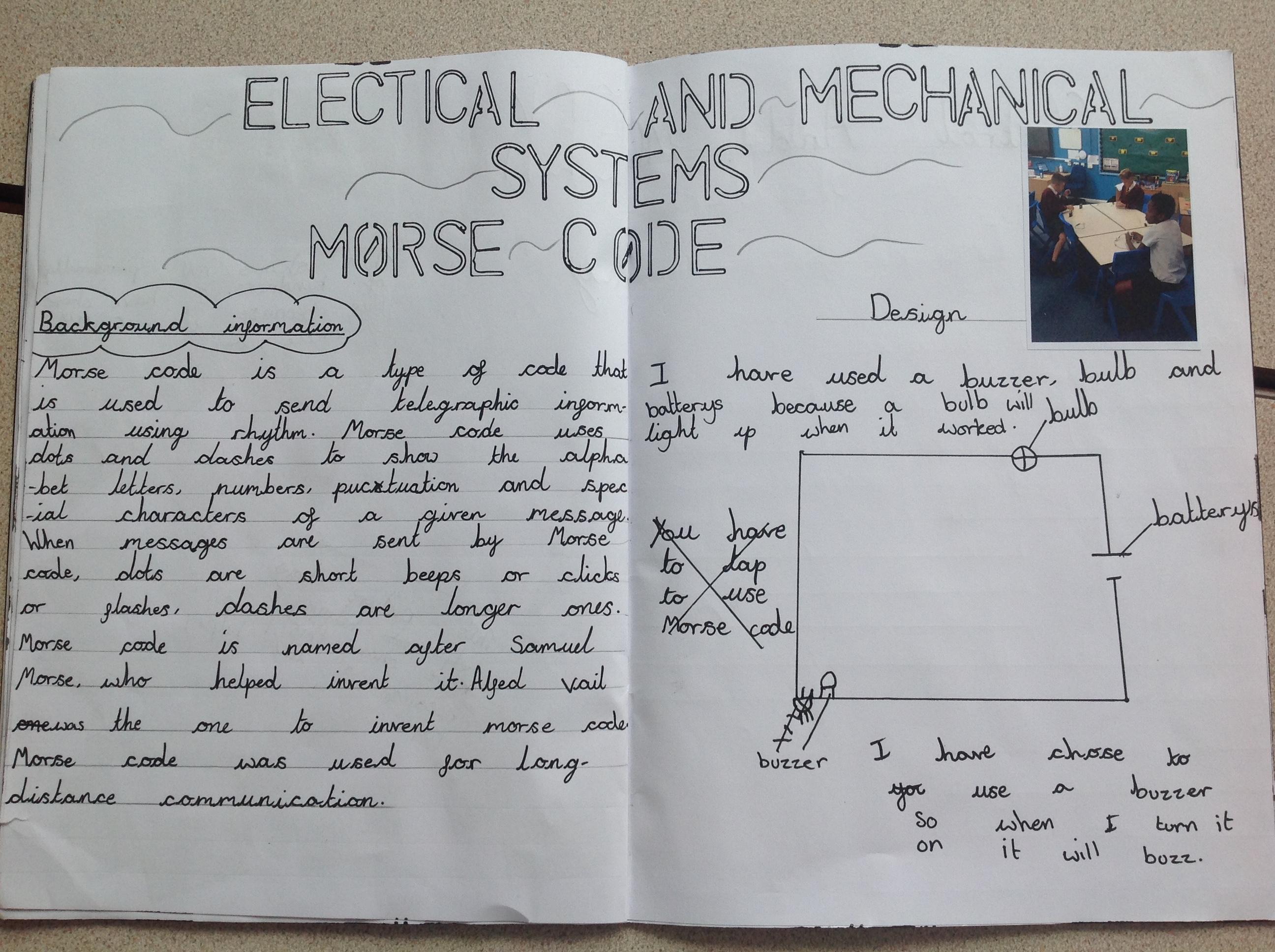 Year 6 researched what morse code is and what it was used for. They then designed their own morse code electrical system and made this using electrical equipment...