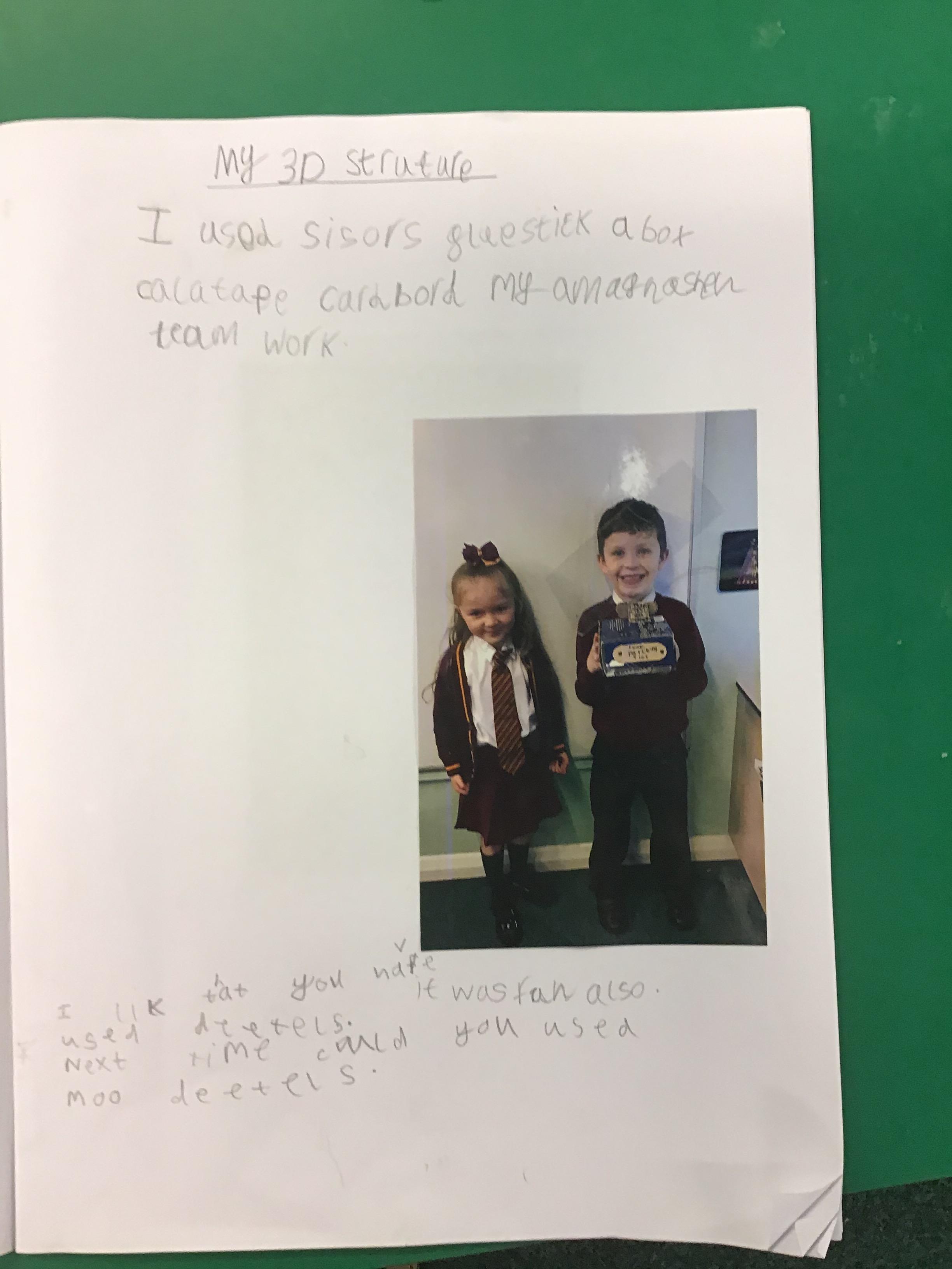 Children in Year 2, have designed and created a range of structures. They focused on the design brief and selected from a range of materials, working collaboratively. They then tested and critiqued their designs.
