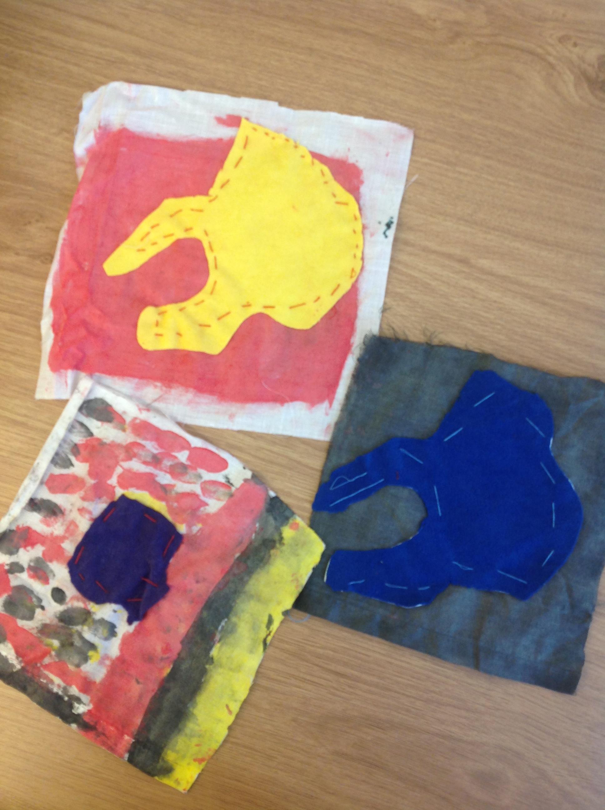 Year 4 created Roman banners by using cotton material, felt and paints. They sewed their design onto their painted material after researching all about Roman banners.