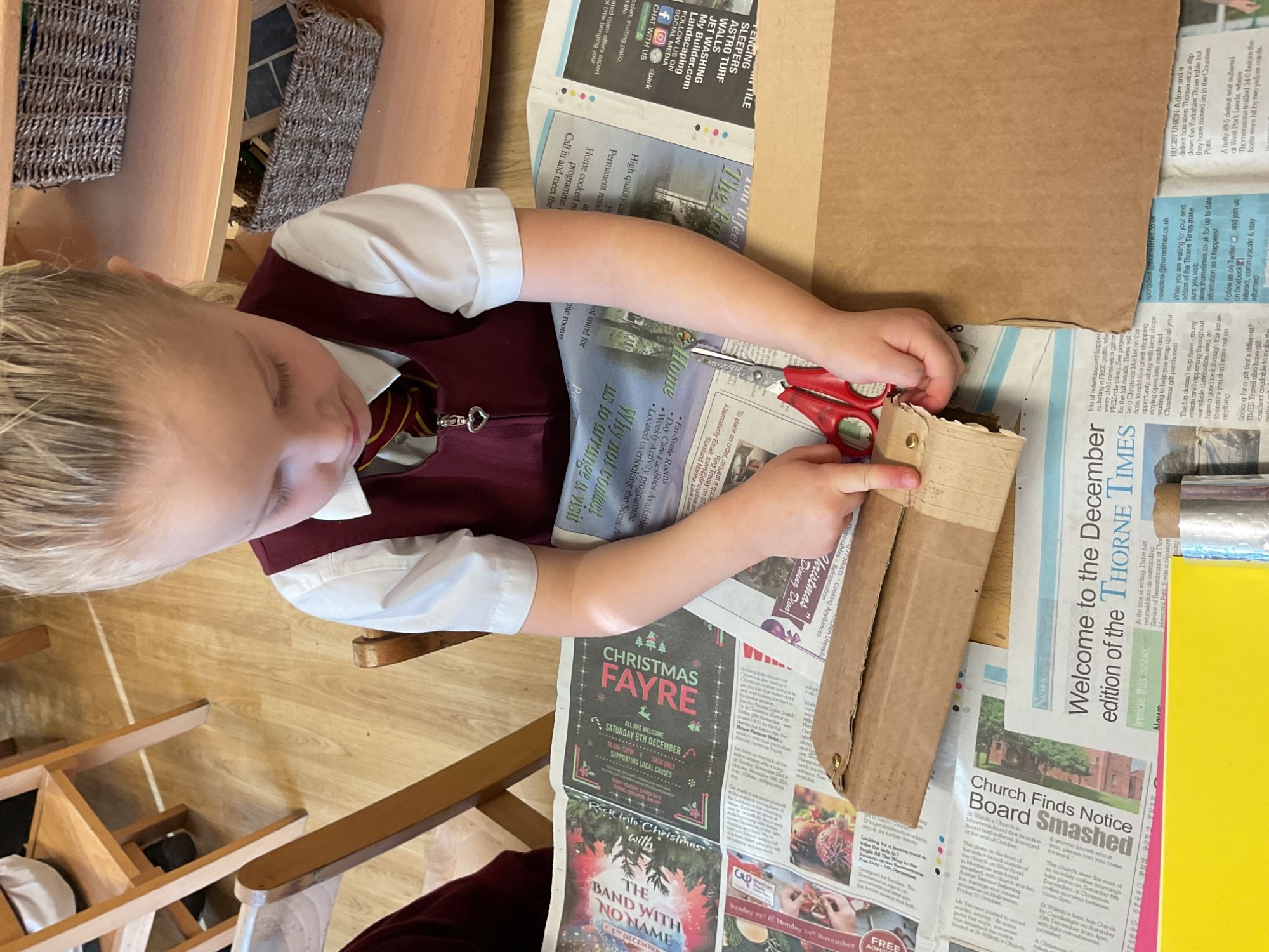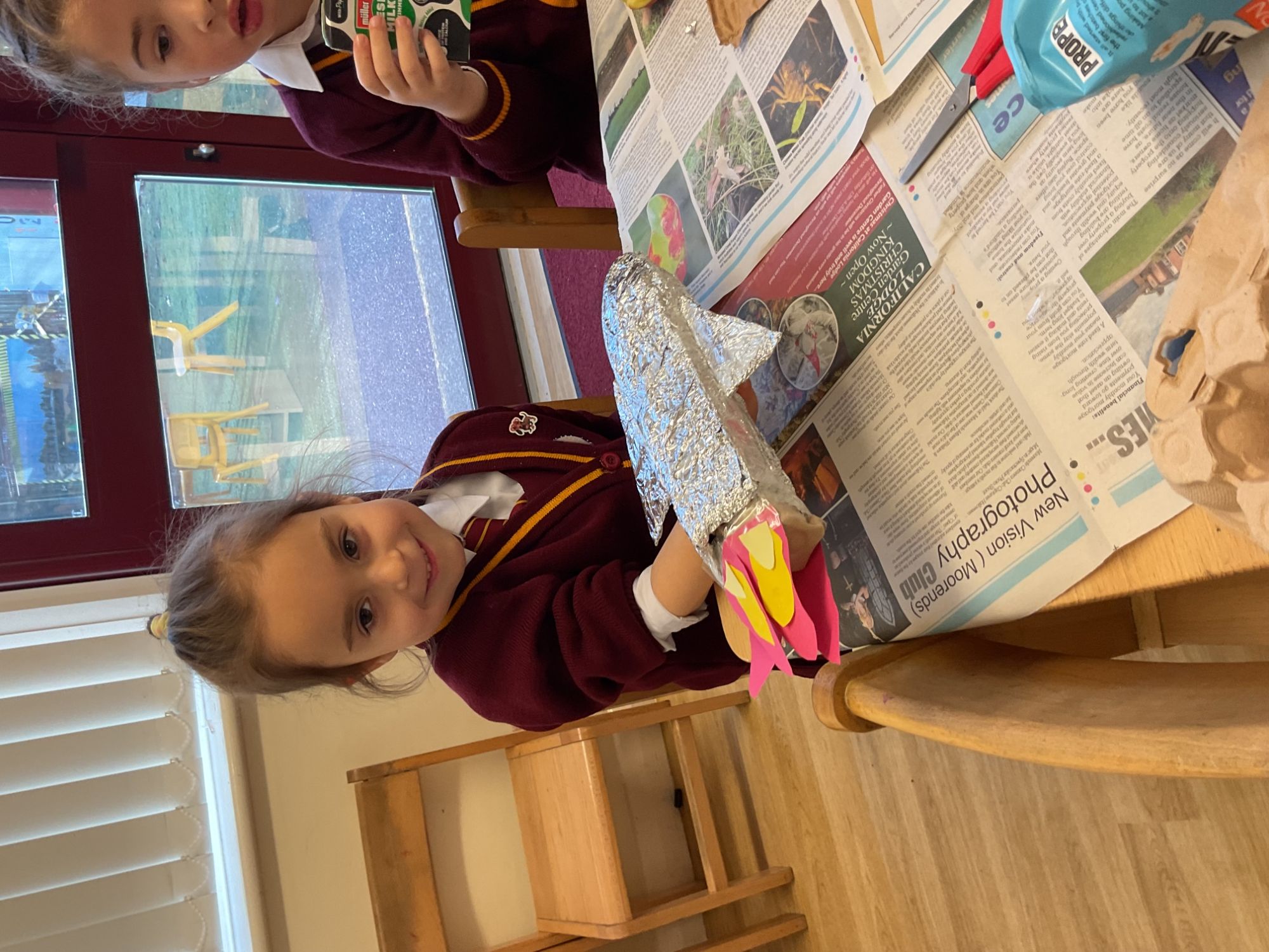 Children in Reception explored junk models practiced cutting and scissor skills, chose resources they wanted to use, paper clips, treasury tags, bulldog clips, split pins etc and then they had the opportunity to build their creation. What a fantastic creation it is!