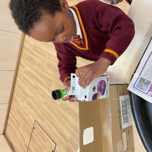Children in Reception explored and learnt about various types of permanent and temporary joins. They were encouraged to tinker using a combination of materials and joining techniques in the junk modelling area. Working collaboritvely, they used their joining skills to make a rocket!