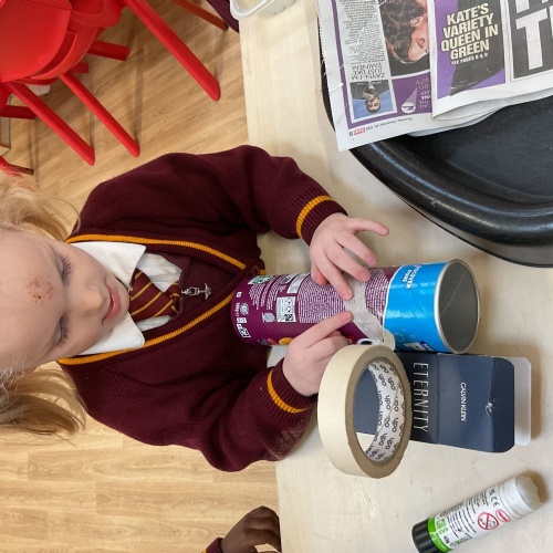In DT the nursery children have been exploring junk modelling. They enjoyed using the resources in our construction area to create their own models. The children created a car, a unicorn, a robot, a drinks machine and lots of other things too. The children showed great imagination and creativity.