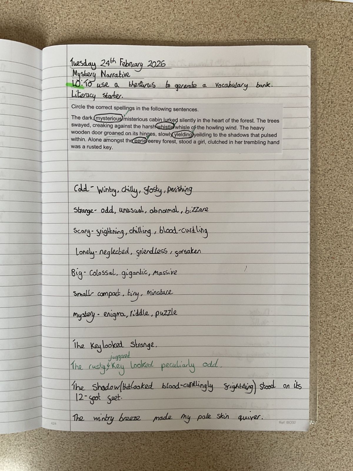 In our literacy lesson, the children immersed themselves in role play as Roman soldiers, asking and answering questions in character to explore what life in the army was like. Through marching, discussing daily routines, and imagining their duties, they gained a deeper understanding of a soldier’s experiences, which helped them to write authentic and engaging diary entries from a Roman perspective.