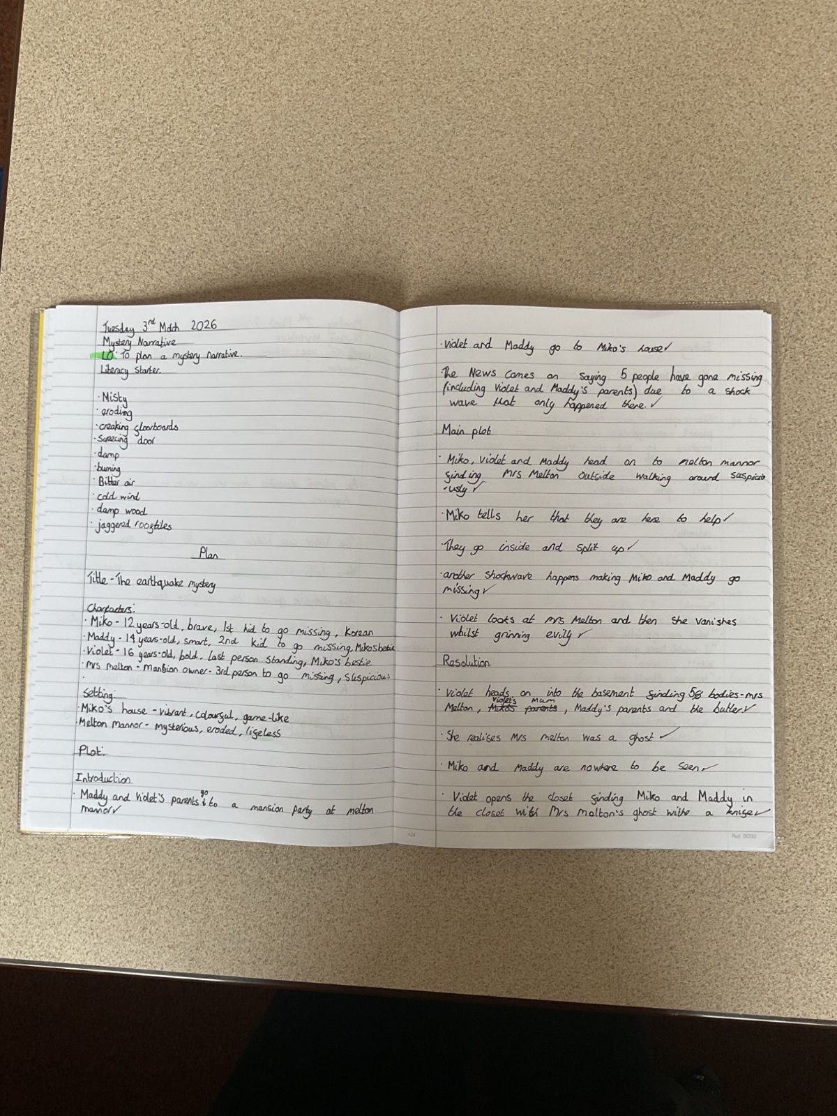 The children enjoyed creating a mystery narrative based on our class novel ‘The 1000 year old boy’. Here is our journey along with some of the children’s learning.