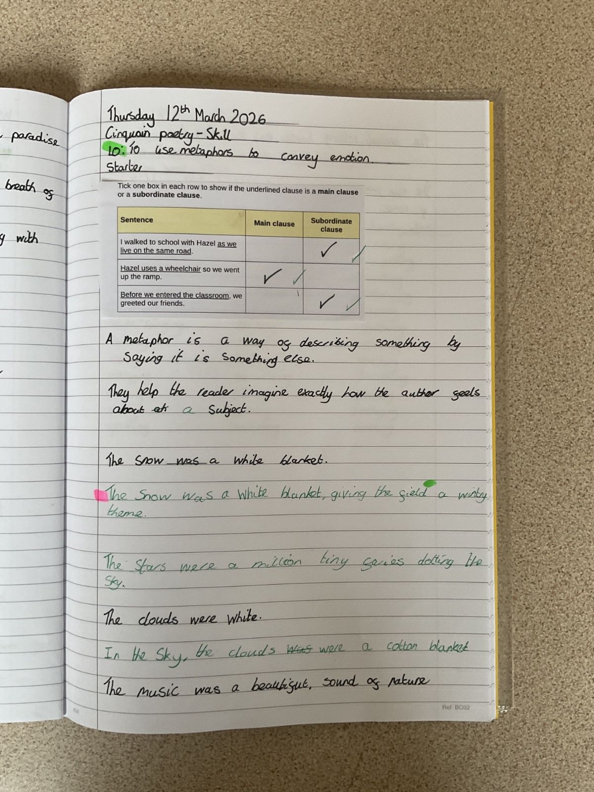 Children in Year 4 have been developing their editing skills, using peer editing. They shared their pieces with one another focusing on ensuring the piece was coherent and included key skills from the writing journey.