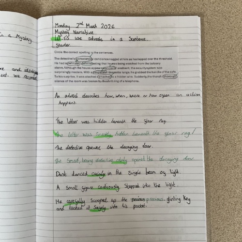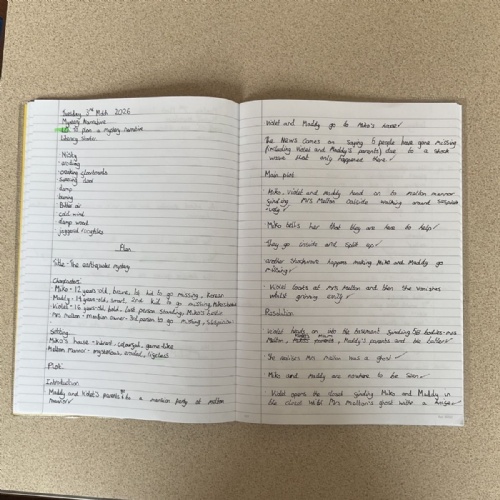 Year 6 immersed themselves into adventure narratives by watching clips from adventure films, analysed an adventure narrative for key features, practised the skills of organising paragraphs and a range of cohesive devices and then, planned and wrote their own adventure narrative