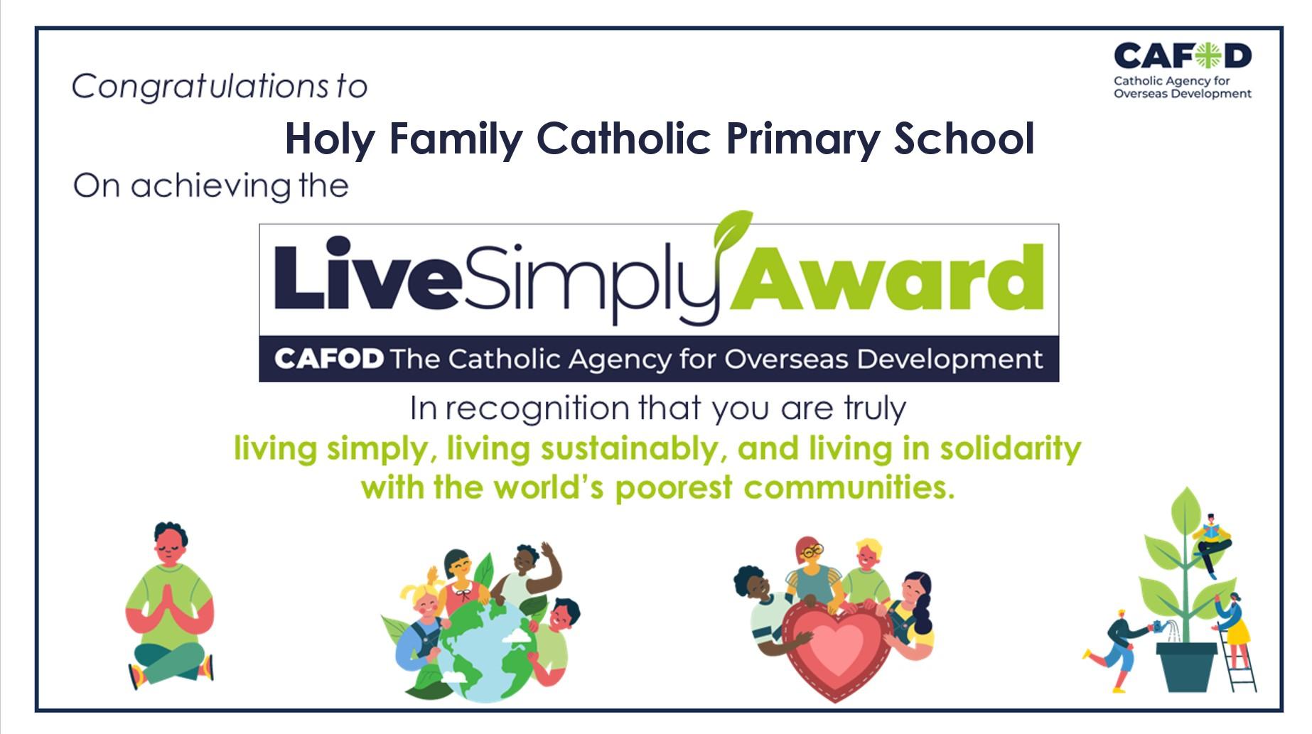 Holy Family are excited to announce that we are taking part in the LiveSimply award from CAFOD.