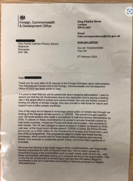 The children in Year 4 wrote persuasive letters to a member of parliament to petition for change and lobby for the end of deforestation in the Amazon Rainforest while learning about their geography topic- The Amazon.