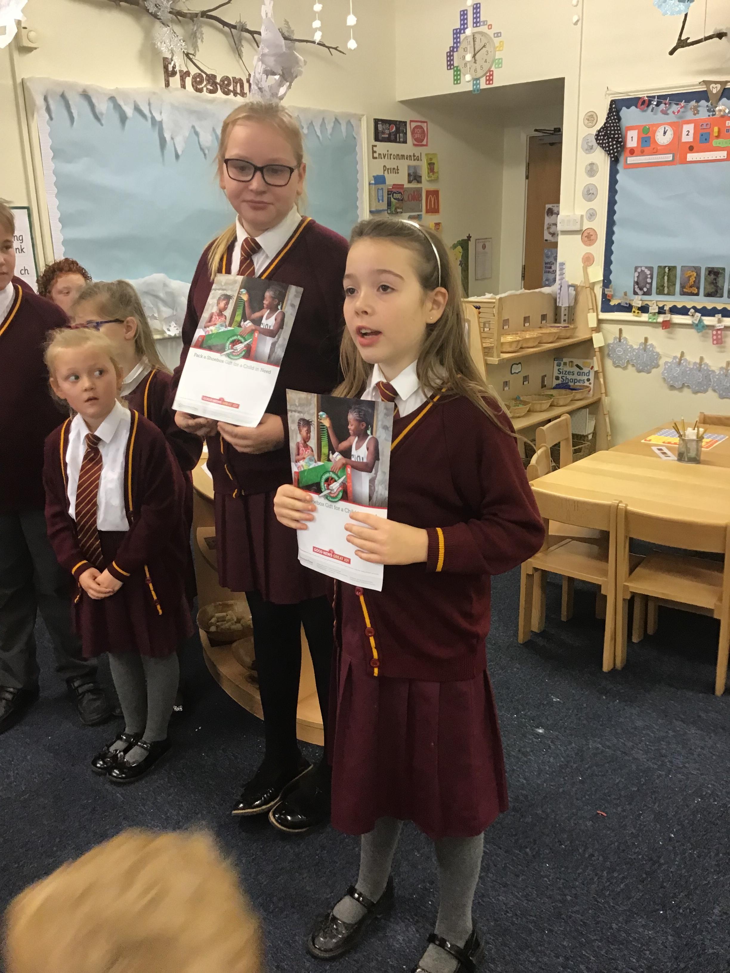Members of the School Council visited classes in school to tell others of their mission- to collect donations for Operation Christmas Child.