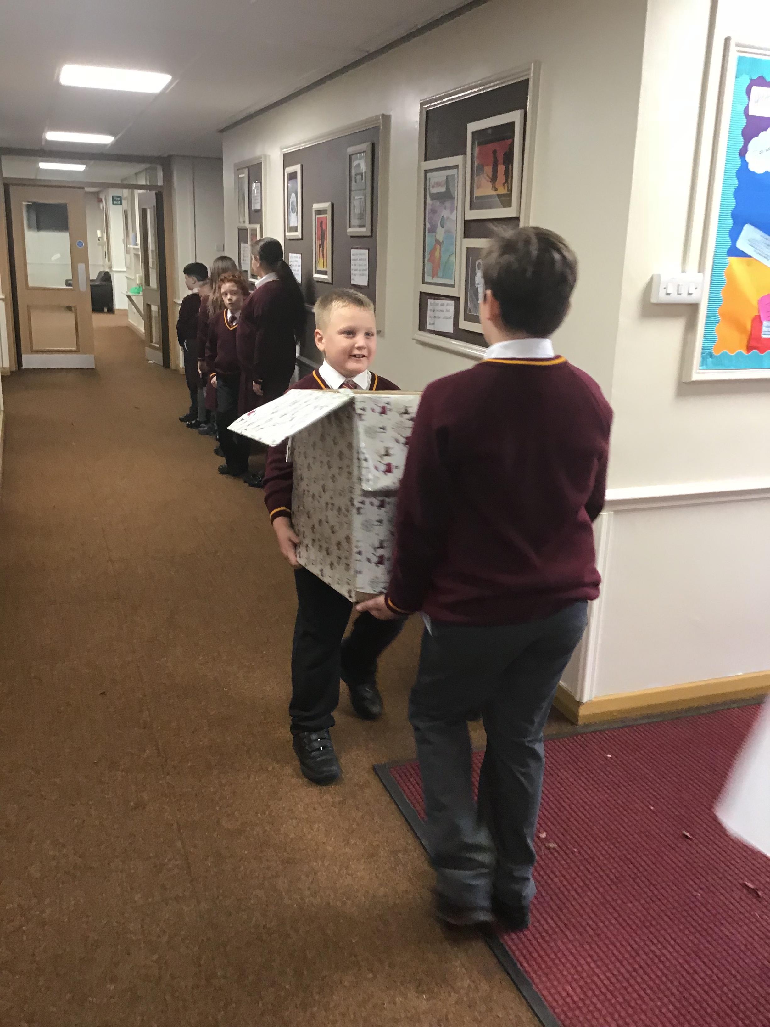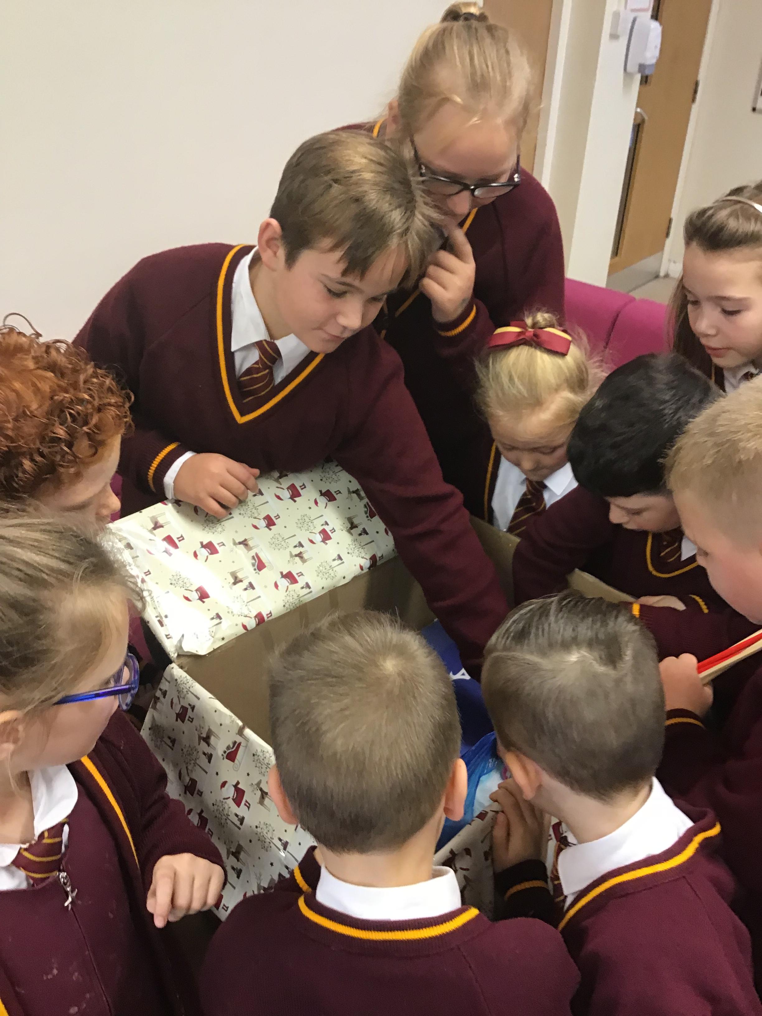 Members of the School Council wrapped a large box ready to receive donations and gave it pride of place at the front of school for all to see.