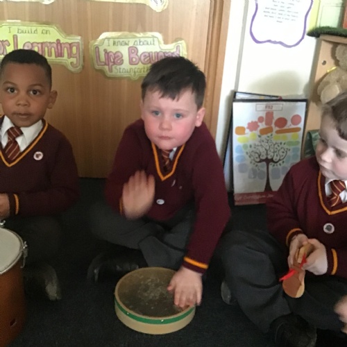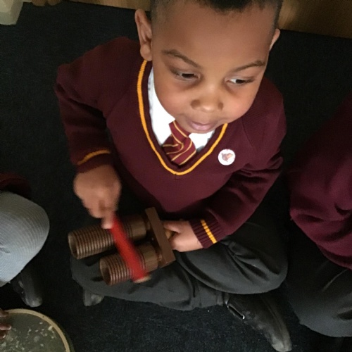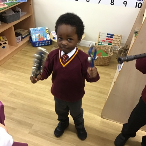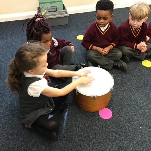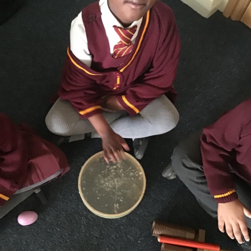 The children in Reception have really enjoyed exploring sound. They used their voice to make sounds in a rhythmic pattern, stamped out syllables and also worked together in teams using body parts to make a variety of sounds. They really enjoyed exploring a range of musical instruments too!