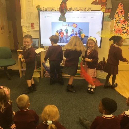Children in Reception enjoyed joining in with action songs and finding the beat and exploring tempo. They really enjoyed dancing and performing to others.