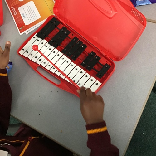 In this lesson, children used a tuned percussion instrument to play a song, they learnt 'ABC' following the music.