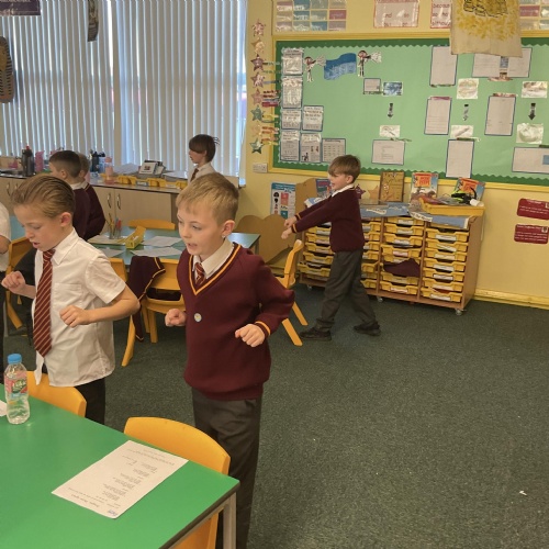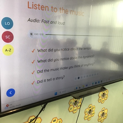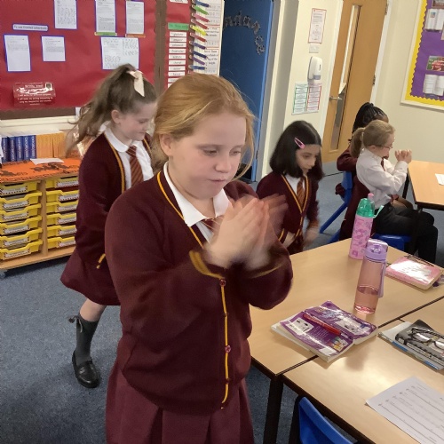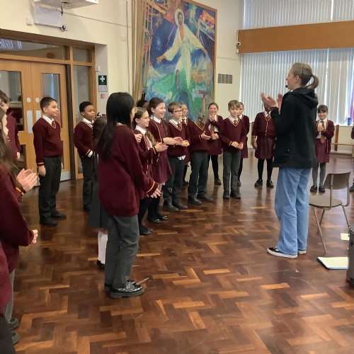 Year 4 followed musical instructions for creating body percussion.