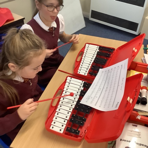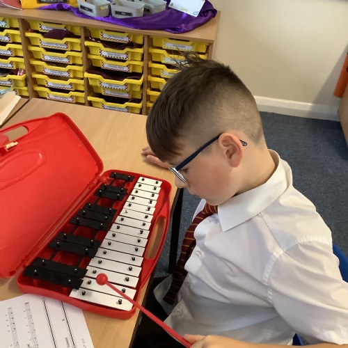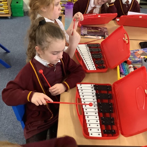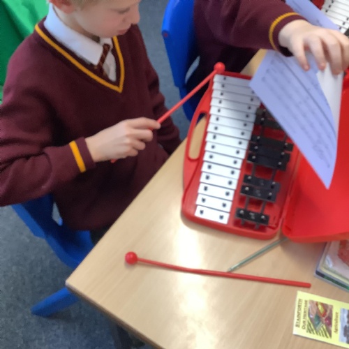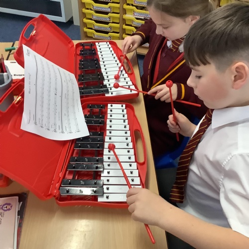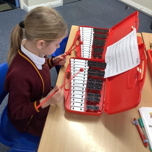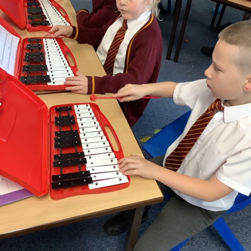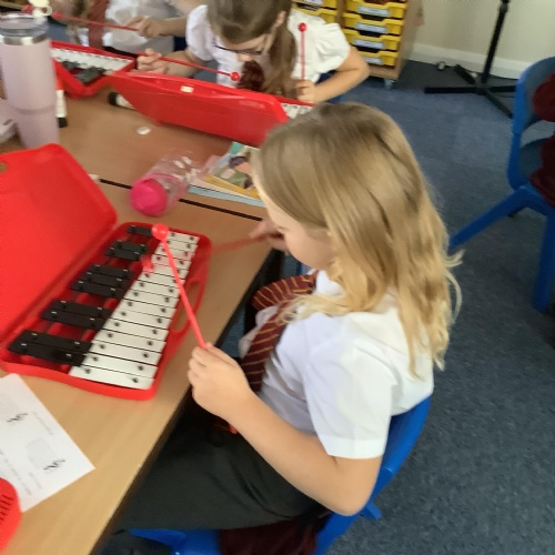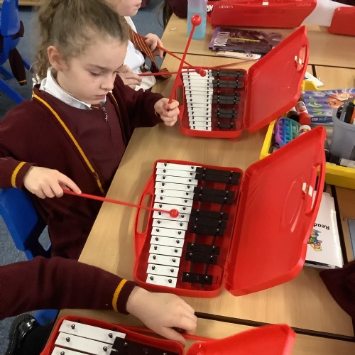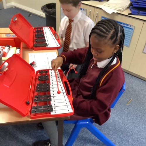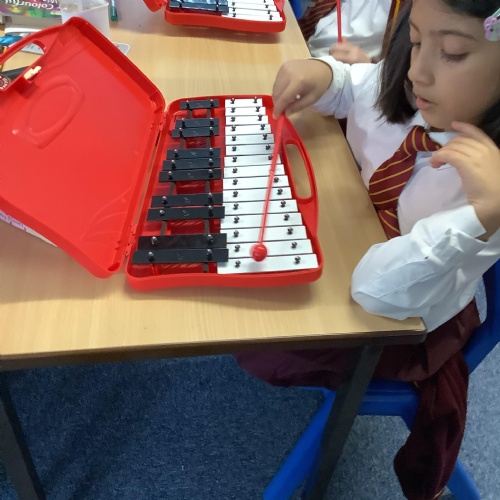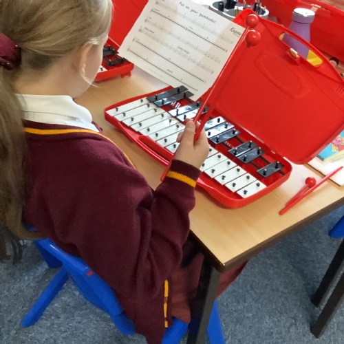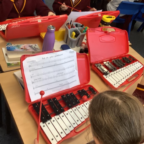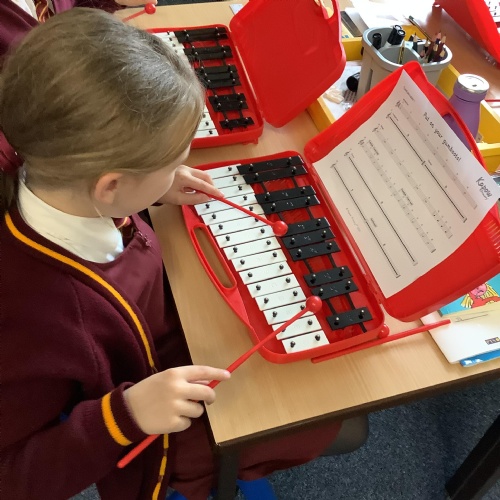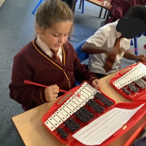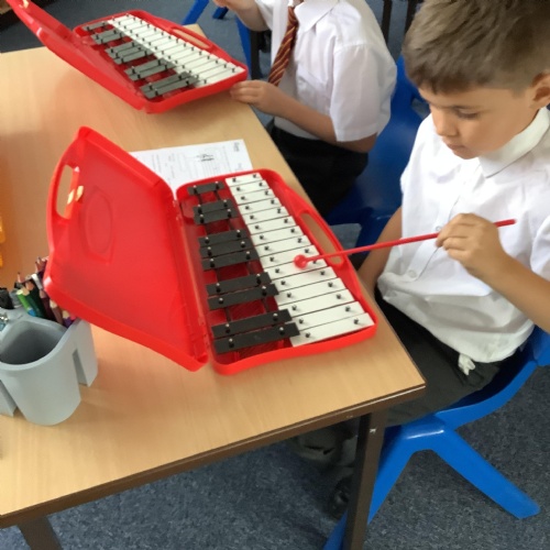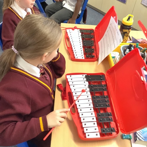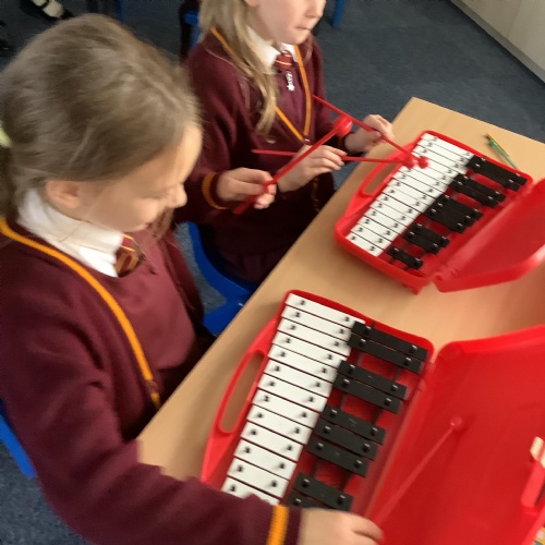 Year 4 have used glockenspiels to recognise and play minims, by ear and from staff notation, moving up and down by step.