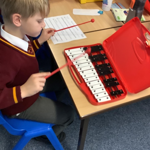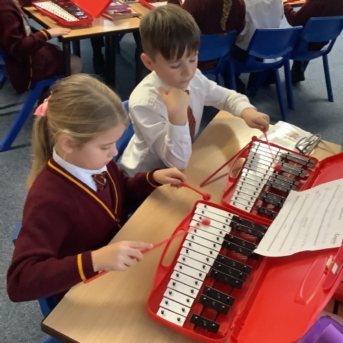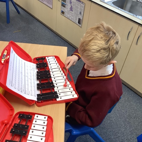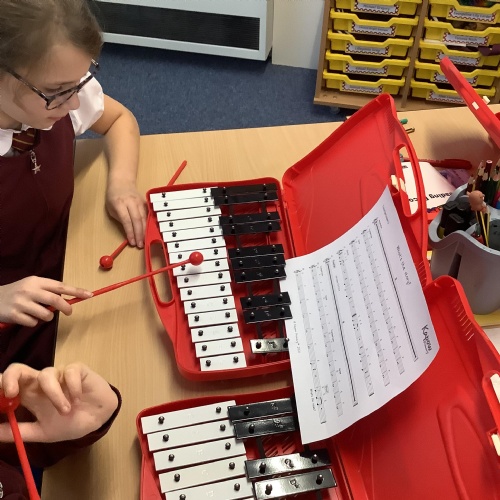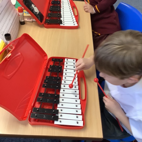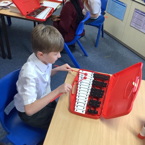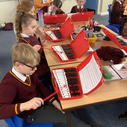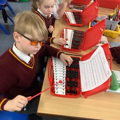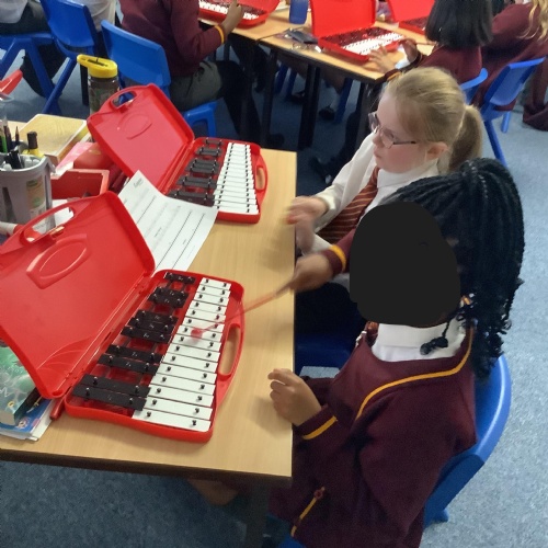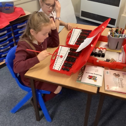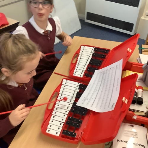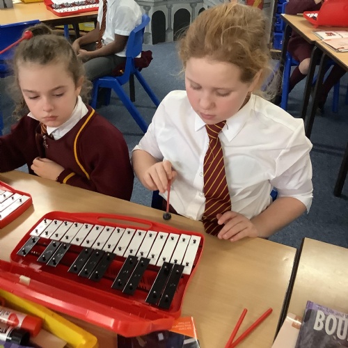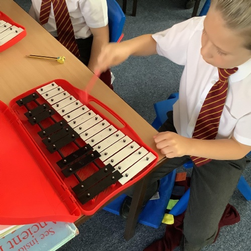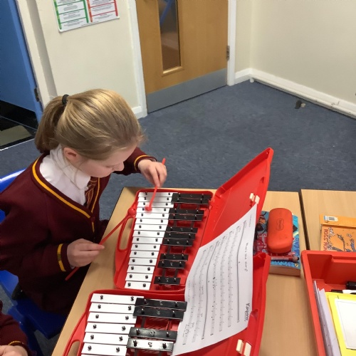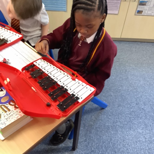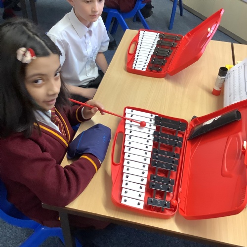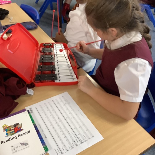 Year 4 have used glockenspiels to recognise and play minims, by ear and from staff notation, moving up and down by step.