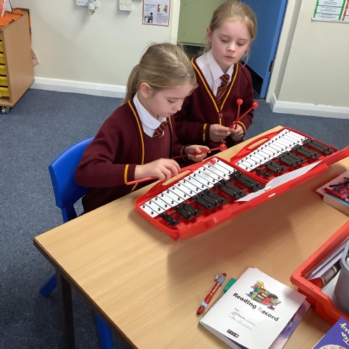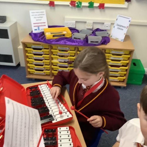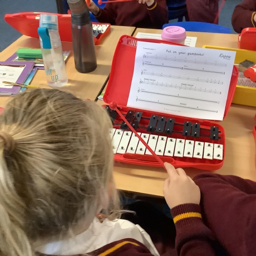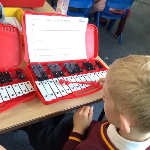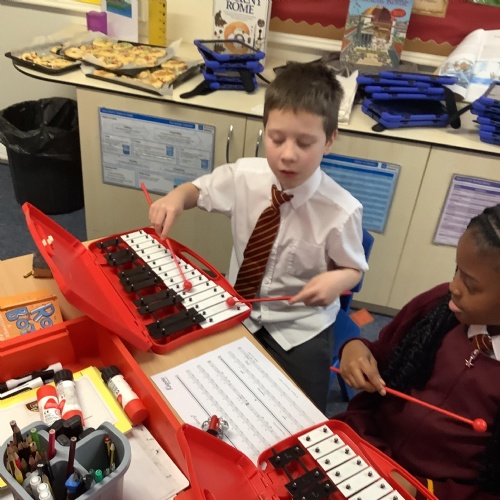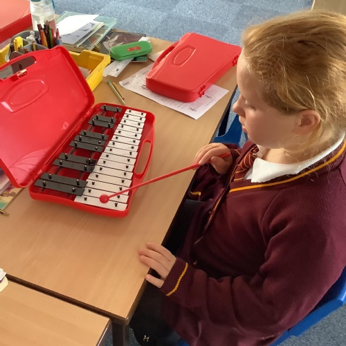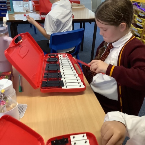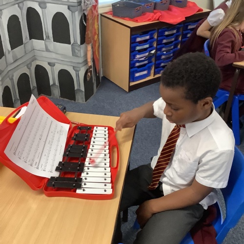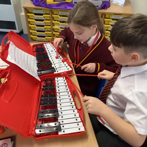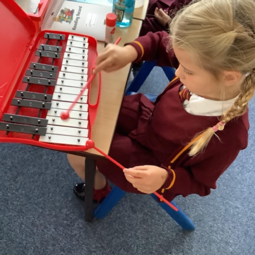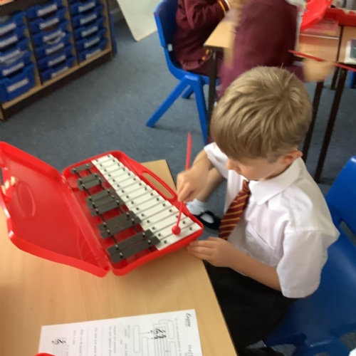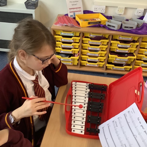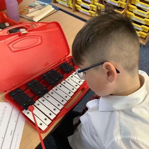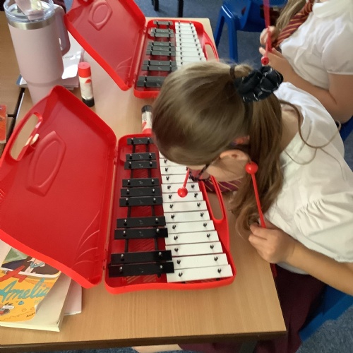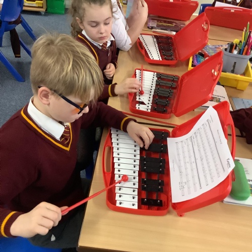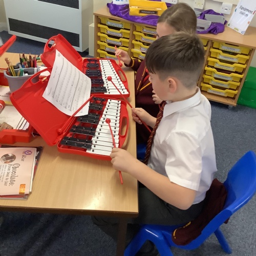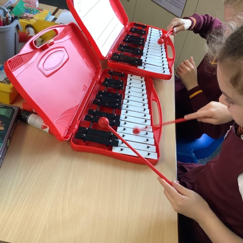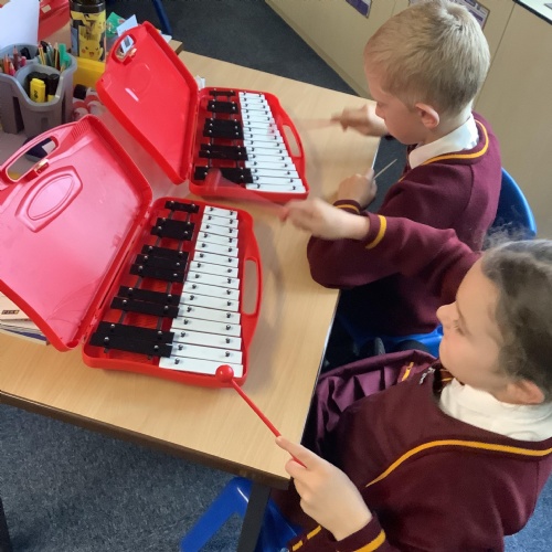 Year 4 have used glockenspiels to recognise and play minims, by ear and from staff notation, moving up and down by step.