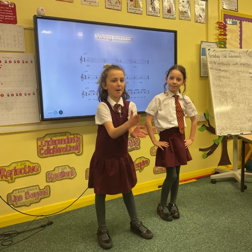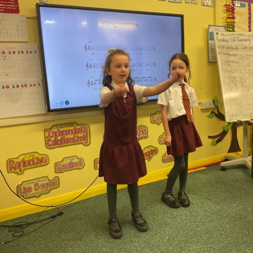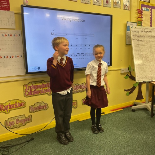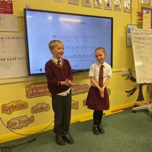 So far in our music unit, we have been looking at how to sing in time with others, and understanding simple rhythmic notation to compose a Viking battle song. The children enjoyed adding actions to our performance.