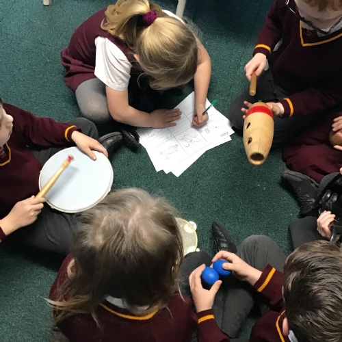 Children experimented with a range of instruments.