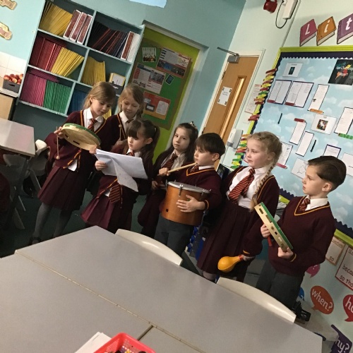 Year 2 enjoyed learning all about Orchestral instruments. They selected from a range of instruments to pair with a script they devised to retell the story of Jack and the Beanstalk, well done Year 2!