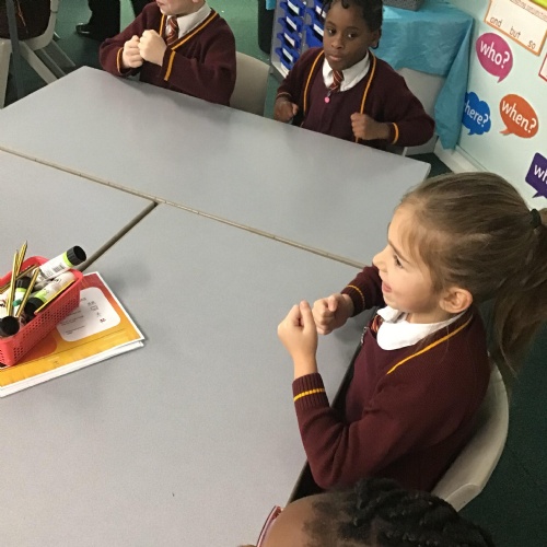 The year 1 children learnt how to keep a pulse and show a sound pattern using bodies and voices. Here is a video of them singing the end of the friend name game.