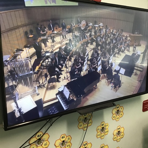 Children learnt about the four different groups of musical instruments, where they are positioned in the orchestra, their different sounds and the role of the conductor.