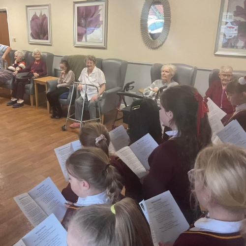 The School choir visited Dr Anderson Lodge, a local care home to sing carols, everyone enjoyed it and joined in. The children were extremely grateful for the juice and cake as a treat at the end, well done.